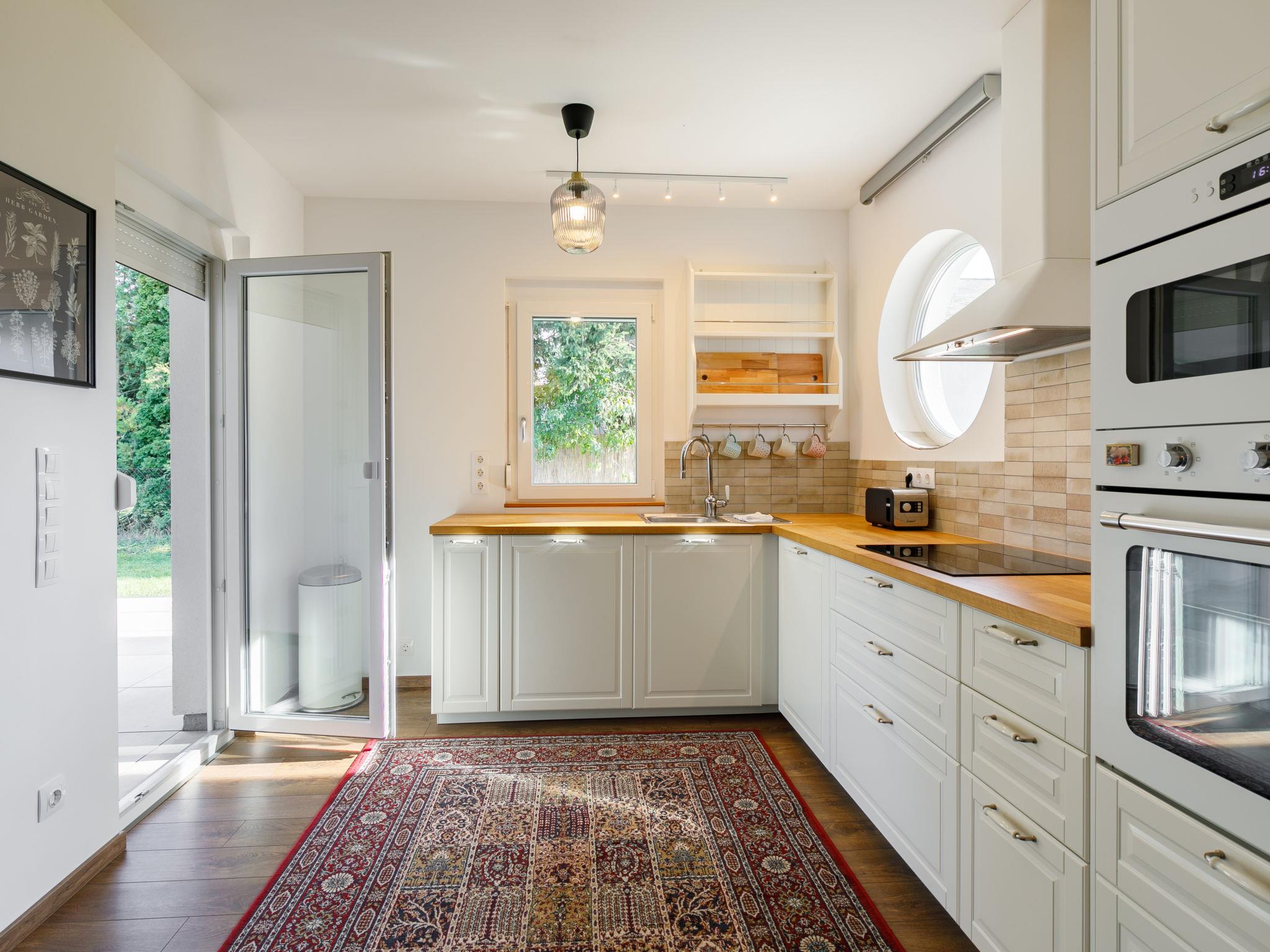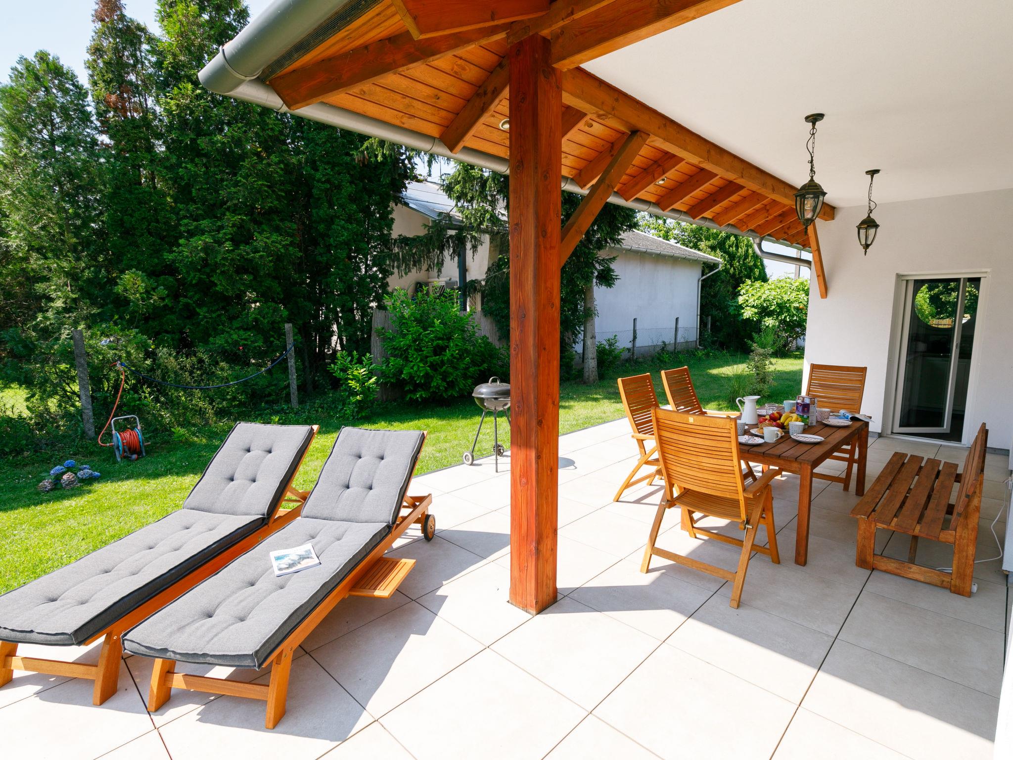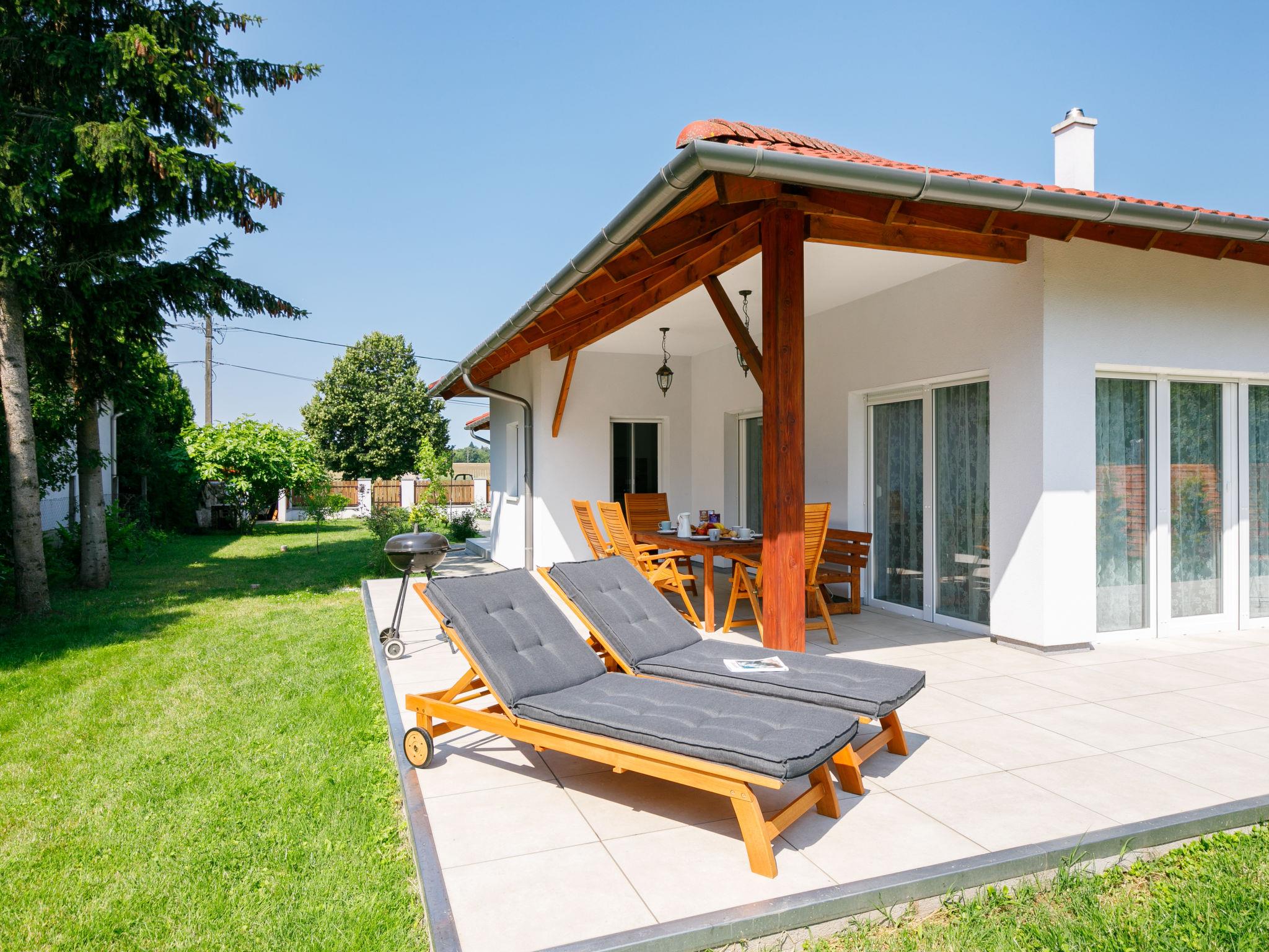 Balatonöszöd 28 km from Siófok: Beautiful house "Sunstreet", built in 2021. In the resort, in a quiet, sunny position, 800 m from the lake, 800 m from the beach. In the house: WiFi, washing machine. Grocery 800 m, supermarket 3 km, restaurant 800 m, bar, bakery 1.8 km, café, bicycle rental 1.5 km, bus stop 300 m, railway station 1.8 km, grass beach 800 m, thermal baths "Csiszta" 30 km. Surf school 1 km, sailing school 3 km, tennis 4 km, riding stable 12 km, cycle lane 600 m, children's playground 600 m, fishing possibilities 800 m. Nearby attractions: Hévíz 60 km, Siófok 28 km, Koröshegyi Lavender Visitor Center 10 km, Bella Theme Park 35 km, Kincsesréti Fishing Lake 6 km.
