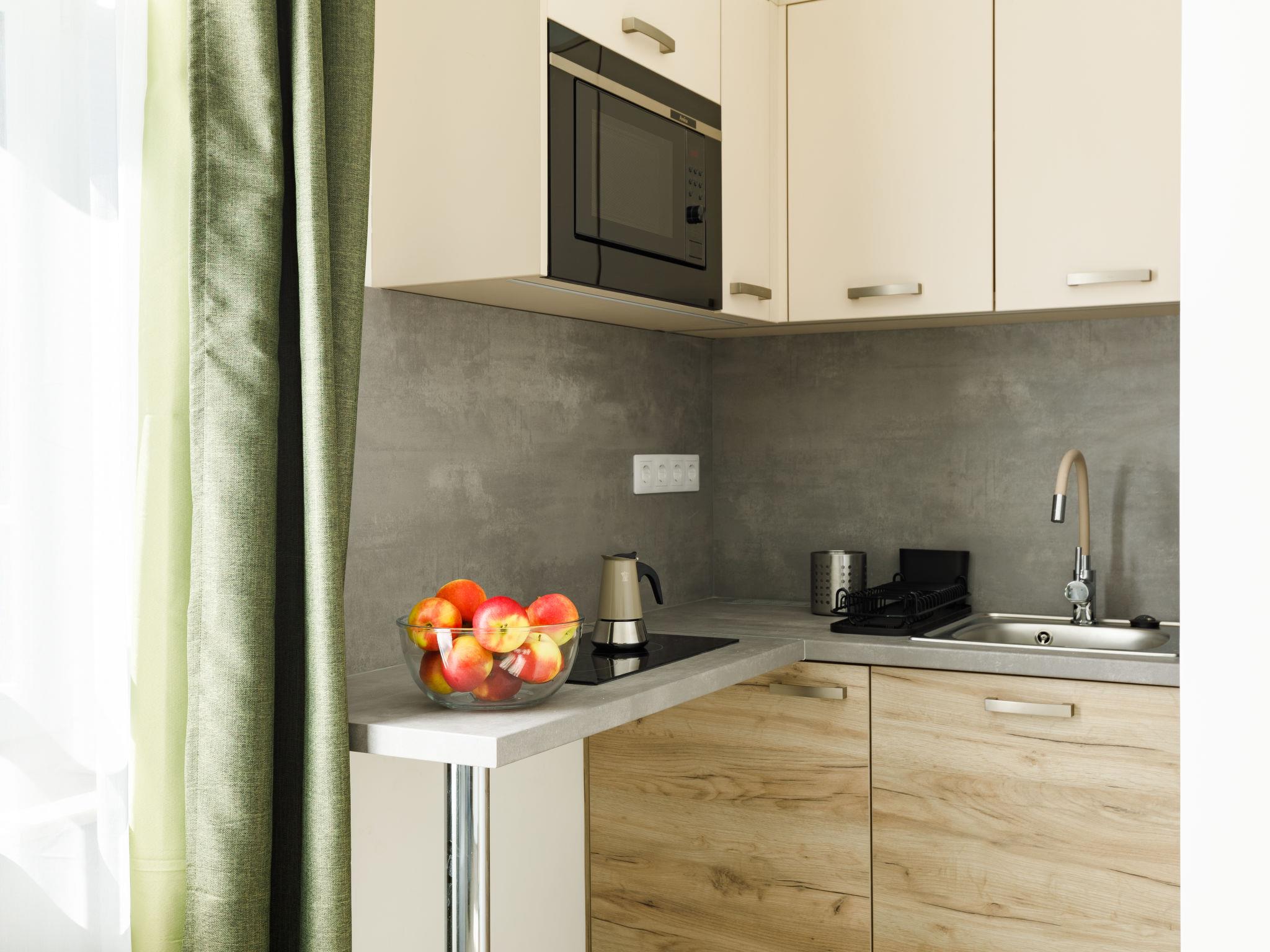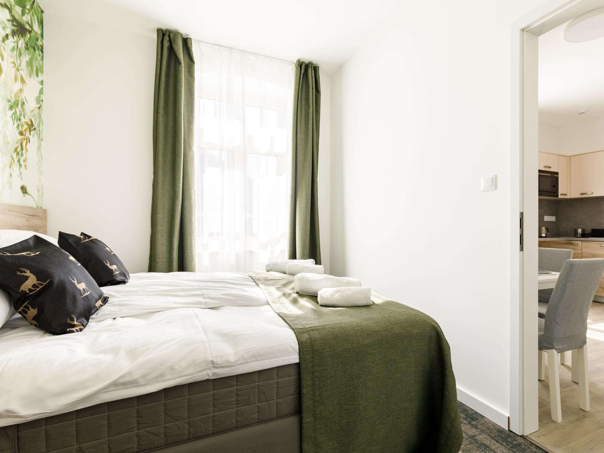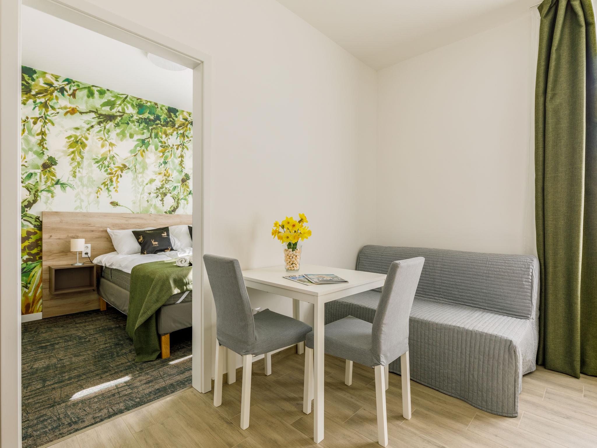 "Park 1", 2-room apartment on the ground floor. Beautiful and modern furnishings: open living/dining room with 1 pull-out bed and cable TV (flat screen). 1 double bedroom with 1 french bed (160 cm, length 200 cm). Small, open kitchen (2 ceramic glass hob hotplates, microwave, electric coffee machine). Shower/WC. Heating, floor heating. Solar power. Facilities: children's high chair, baby cot (extra), hair dryer. Internet (WiFi). Please note: apartment courtyard side. Type of coffee machine: Nespresso.
