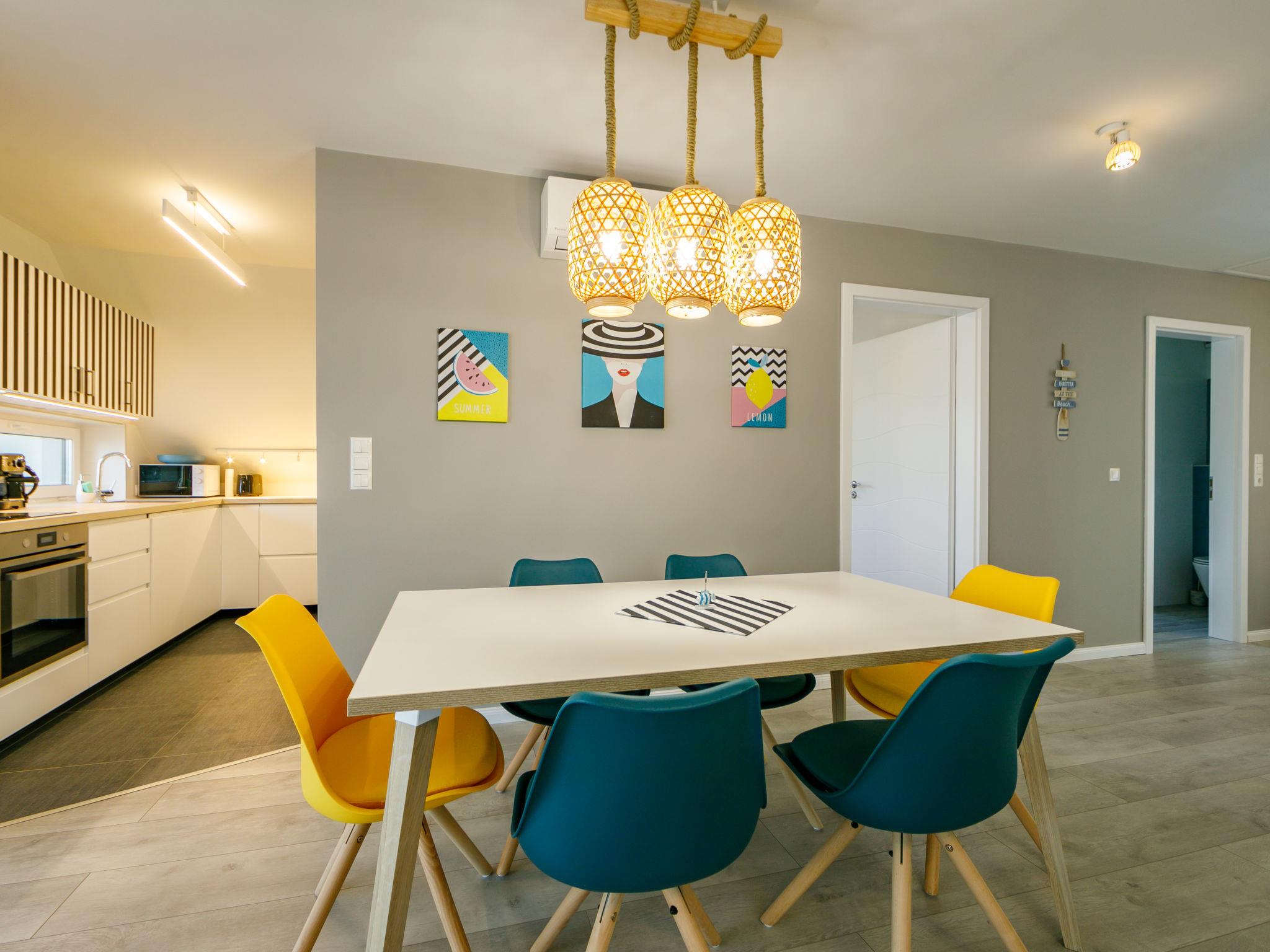 "Erika", 3-room apartment 75 m2, on the upper floor. Beautiful and tasteful furnishings: large living/sleeping room with 1 pull-out bed (2 pers.), satellite TV and air conditioning. Exit to the terrace. 1 room with 1 bed and 1 pull-out bed (2 pers.), air conditioning. 1 room with 1 french bed (160 cm, length 200 cm), air conditioning. Open kitchen (4 hot plates, oven, dishwasher, microwave). Shower/WC, sep. WC. Heating. Large terrace 25 m2. Terrace furniture, deck chairs. Beautiful view of the lake. Facilities: washing machine, children's high chair, baby cot (extra). Internet (WiFi). Parking (fenced 2 cars).