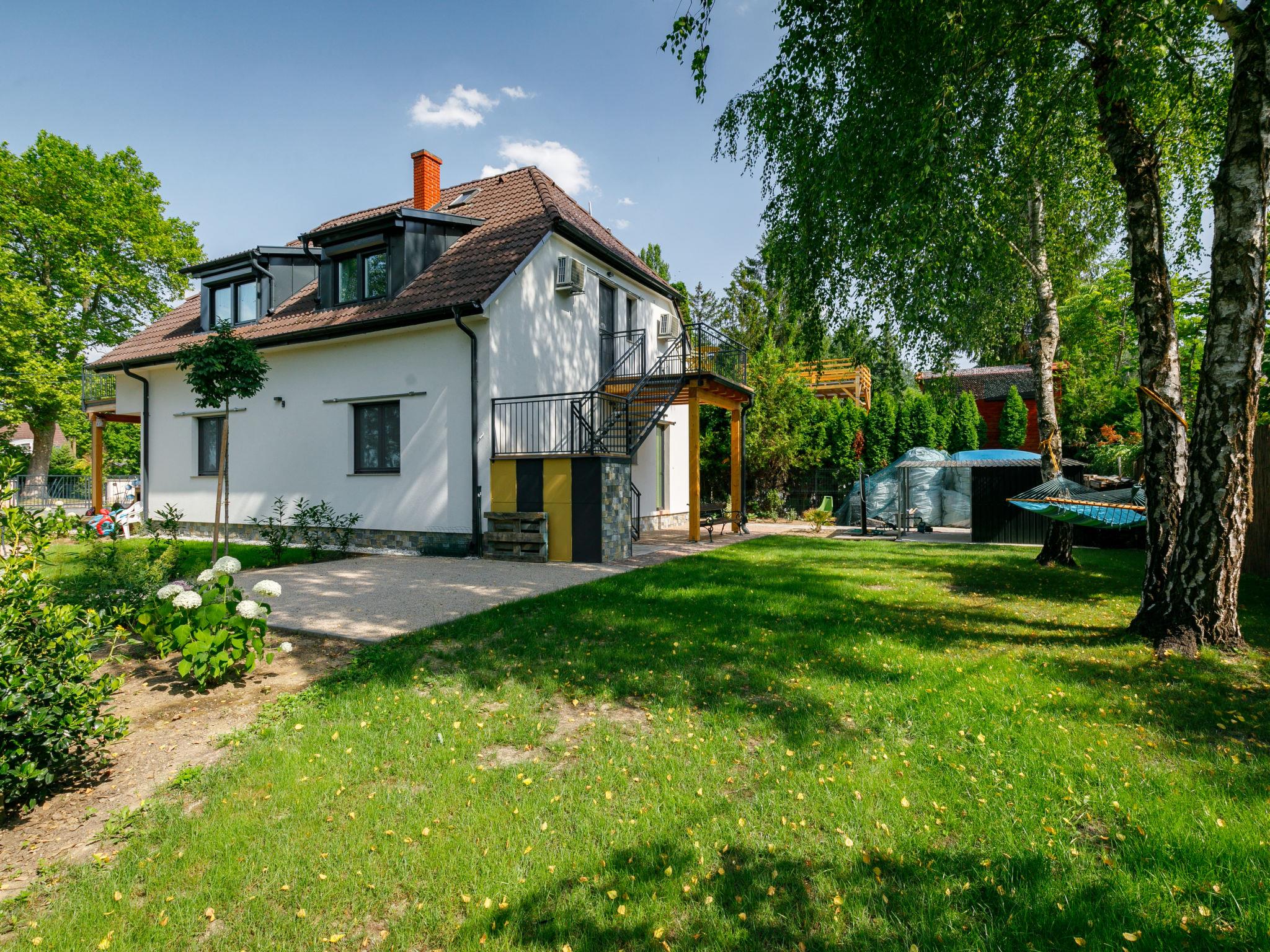Balatonszárszó 25 km from Siófok: Modern, beautiful 2-family house, built in 2020. In a sunny position, 20 m from the lake, 300 m from the beach, in a cul-de-sac. For shared use: garden 400 m2 (fenced). Private: garden 150 m2, lawn for sunbathing. Outdoor shower, barbecue, fireplace. In the house: WiFi, central heating system, air conditioning, burglar alarm system. Grocery 1 km, supermarket 13 km, restaurant 2 km, bakery 1.5 km, bicycle rental 1.5 km, grass beach 200 m, thermal baths "Igal" 50 km. Cycle lane 100 m, children's playground 300 m. Nearby attractions: Siófok Giant Wheels 19 km, Bella Zoo Siófok 26 km, Siófok Aquapark 22 km, Festetics Castle 65 km, Hévíz Thermal Bath 70 km. Please note: baby equipment on request (extra). Object suitable for 6 adults + 1 child. The owner lives in the same residence.