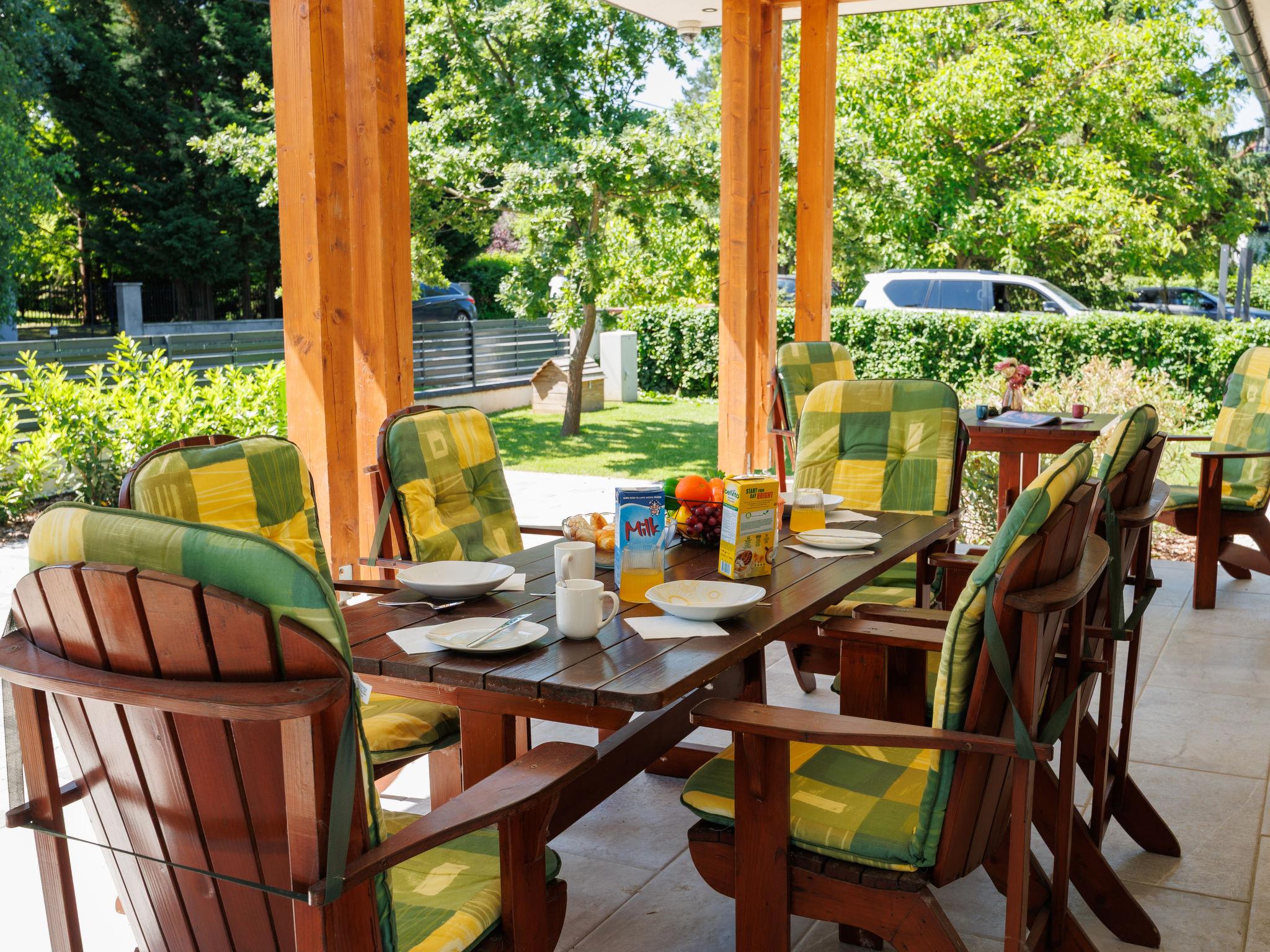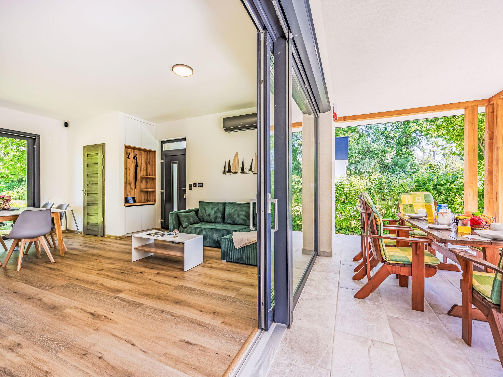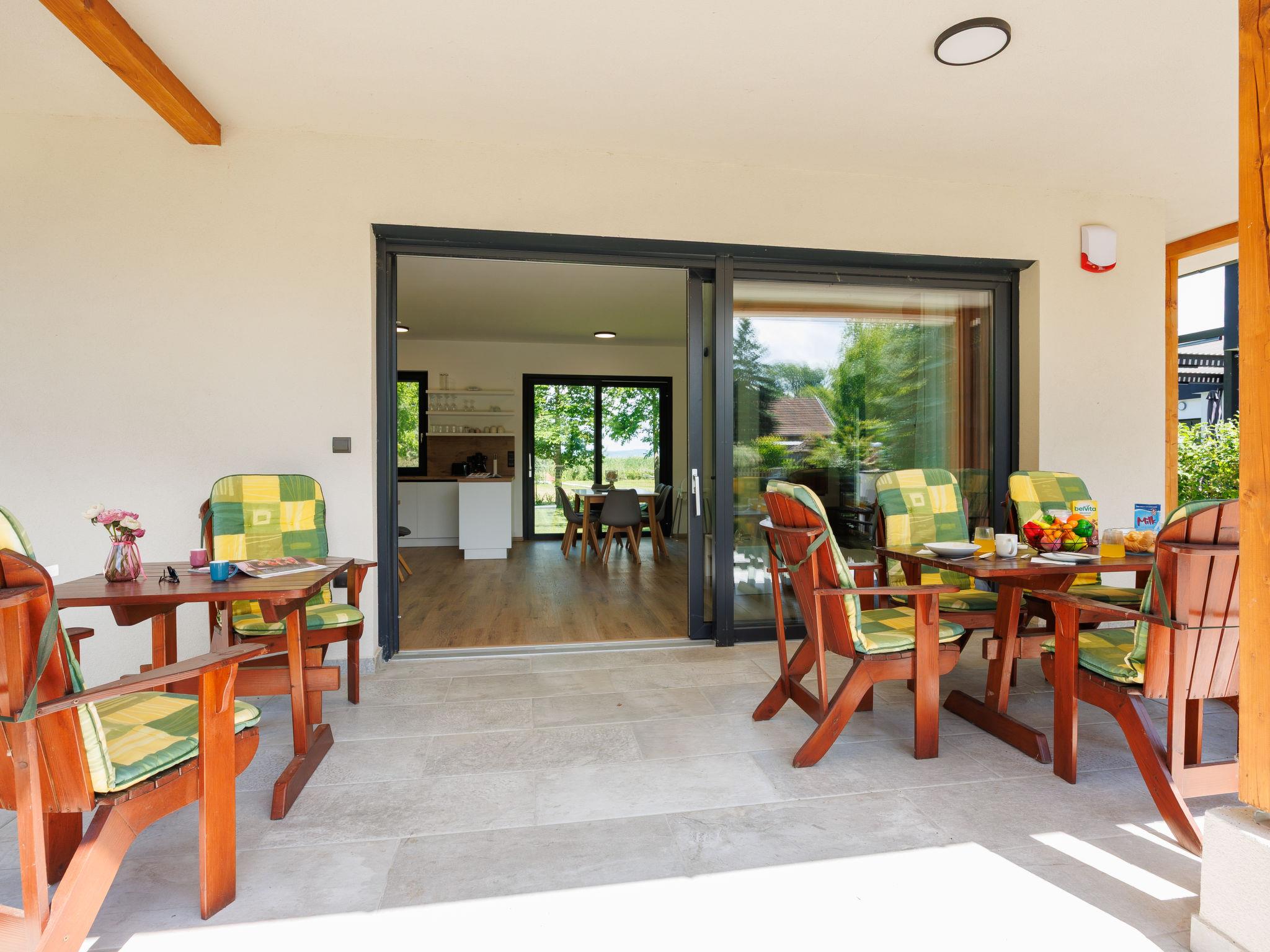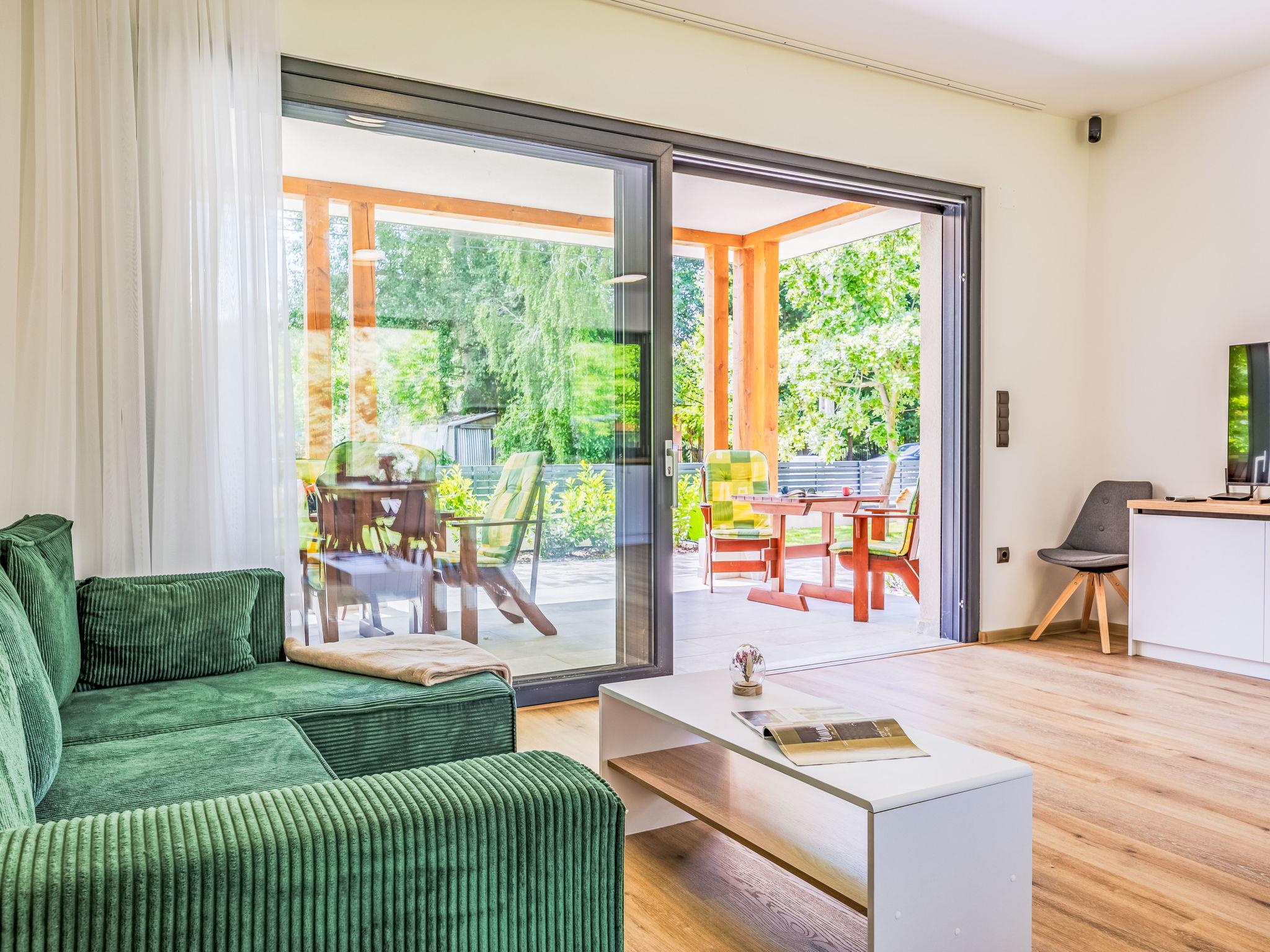 4-room house. Spacious and bright, modern and tasteful furnishings: open living/dining room with dining table, digital TV, flat screen and air conditioning. Exit to the garden, to the terrace. 3 double bedrooms, each room with 1 french bed (160 cm, length 200 cm), air conditioning. Open kitchen (dishwasher, 4 induction hot plates, toaster, kettle, freezer, electric coffee machine, combination microwave). Shower/WC, sep. WC. Air-conditioning, floor heating. Solar power. Terrace, south facing position. Terrace furniture, barbecue (portable), deck chairs (2). Facilities: Internet (WiFi). Smart TV.