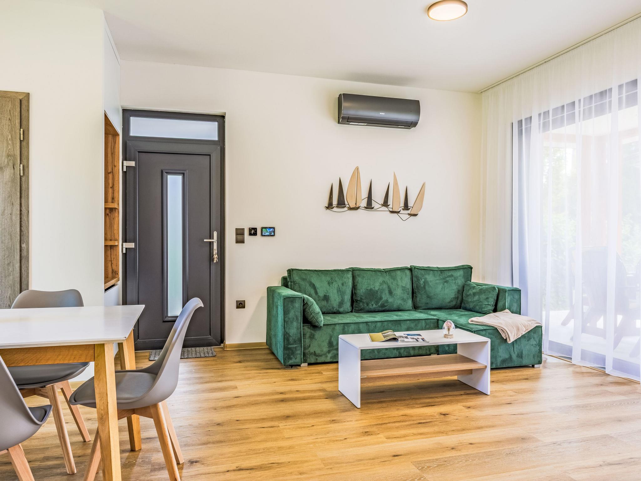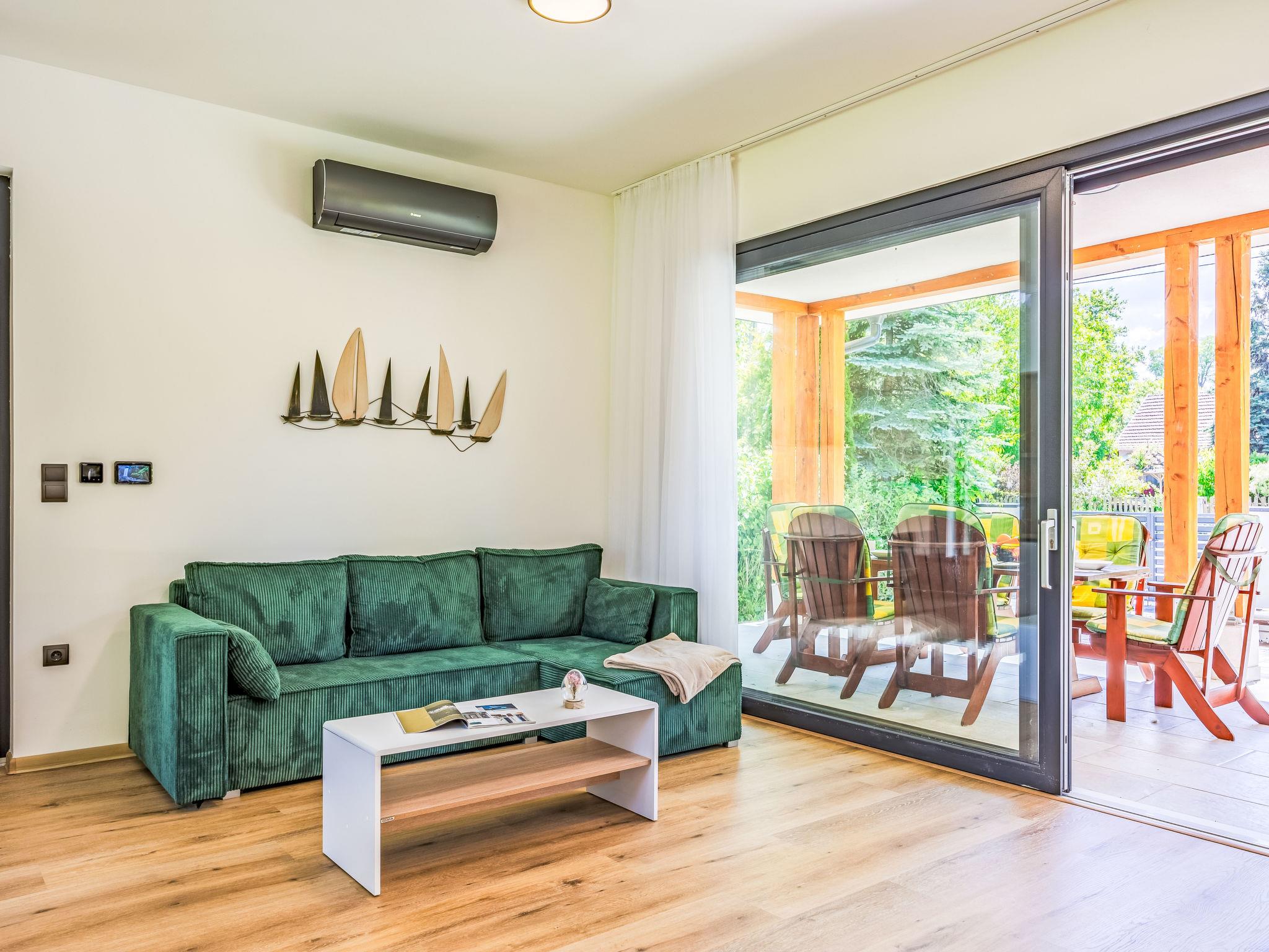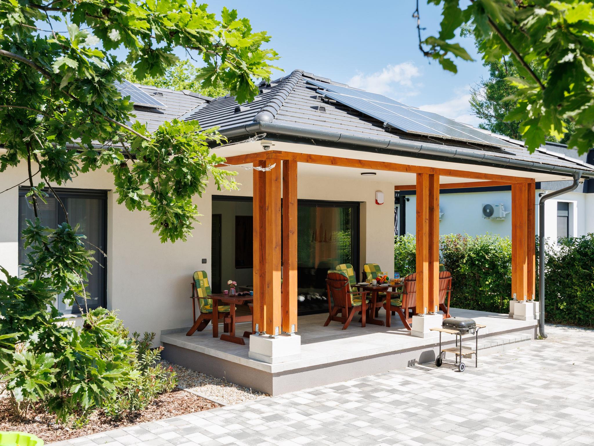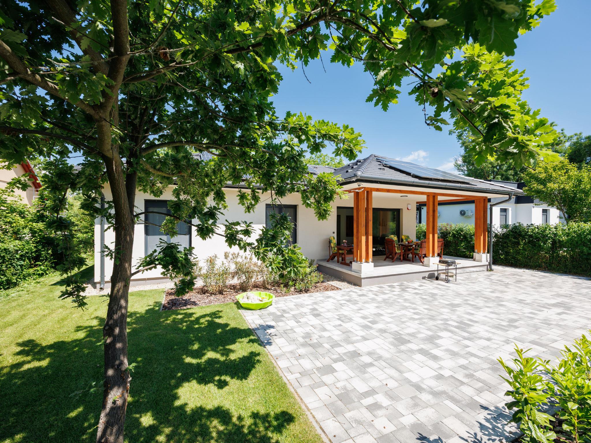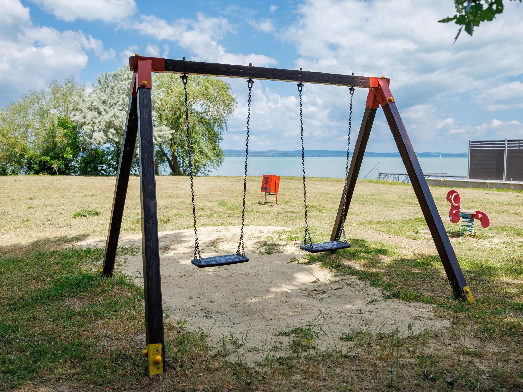 Balatonszárszó 5 km from Balatonföldvár: Modern, comfortable house "Daniel", built in 2024. In a sunny position residential area (villas), 80 m from the lake, 500 m from the beach. For shared use: (sandbox). Private: property (fenced), large, well-kept garden with lawn and trees. Badminton, barbecue (sandbox). In the house: WiFi, central heating system, air conditioning, burglar alarm system. Parking (for 2 cars) on the premises. Grocery 1 km, restaurant, café 750 m, bicycle rental 1 km, railway station 950 m, grass beach 400 m, thermal baths "Igal" 47 km. Tennis 650 m, riding stable 14 km, cycle lane 10 m, children's playground 1 km. Nearby attractions: Kis-Balaton Visitor Center 60 km, Turtle Park 7 km, Balatonlelle Giant Wheel 12 km, Zamárdi Adventure Park 26 km, Hévíz Thermal Bath 68 km, Bella Zoo Siófok 39 km.
