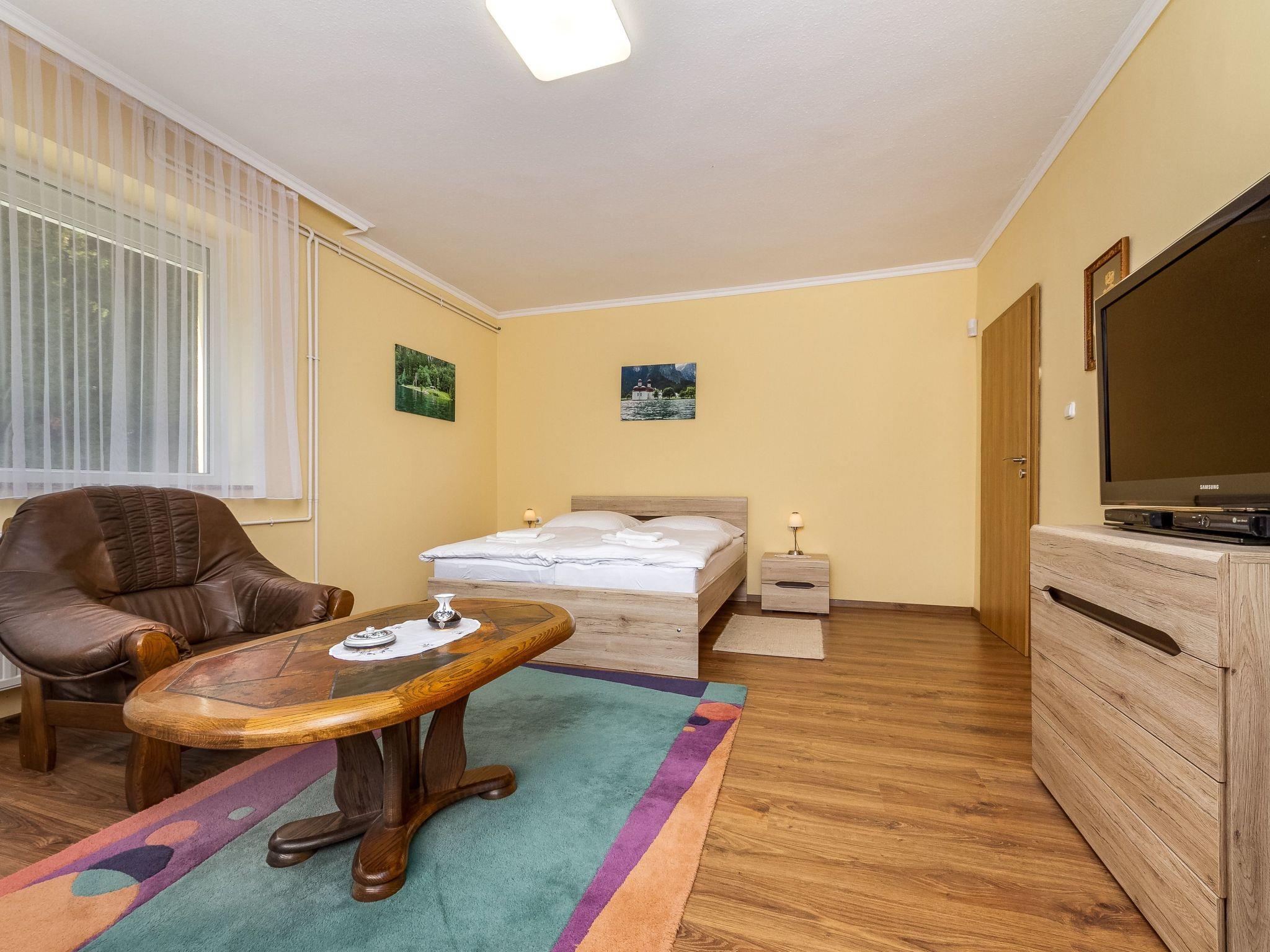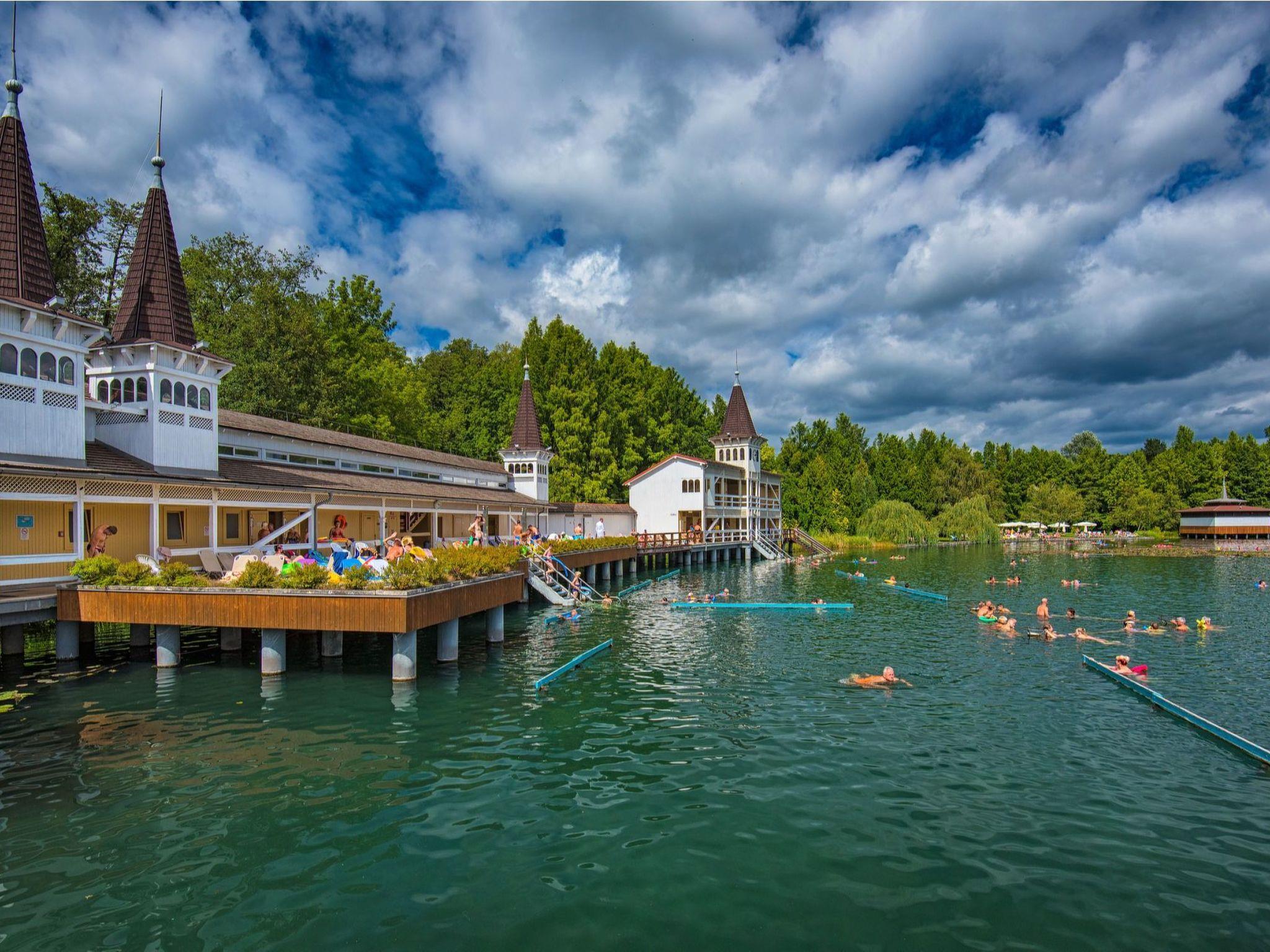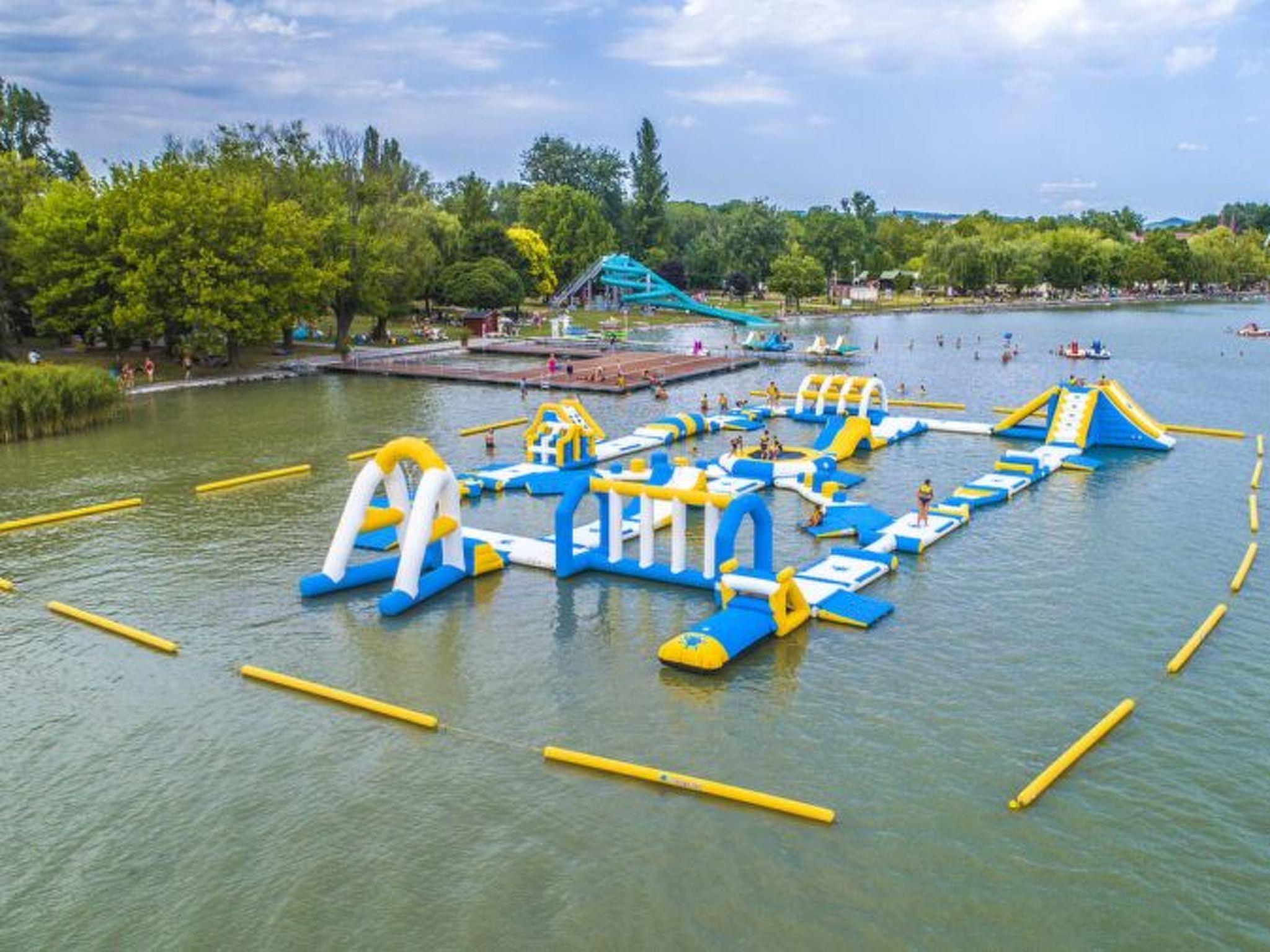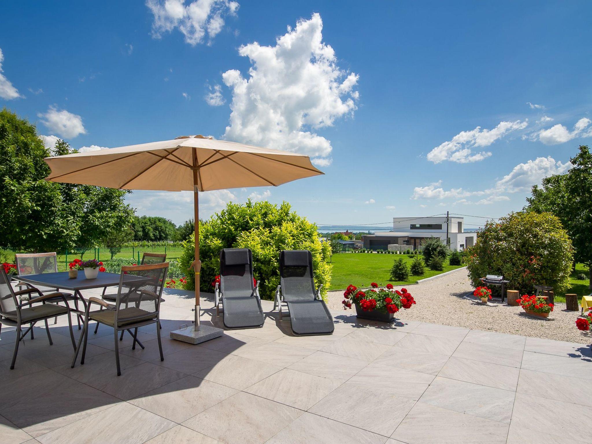 The holiday flat is located on a 1200 square metre enclosed garden plot with meadow, flowers, shrubs and trees, bordered by a fence. The landlord lives permanently in the house, but uses a separate entrance and access is via a side road (tarmac). Parking (for 2 cars) on the property.DistancesShopping 800 m, restaurant 800 m, centre 800 m. Thermal bath, cinema each 5 km in Hévíz. Railway station, indoor swimming pool, sauna, discotheque, doctor, pharmacy, bank each 5 km in Keszthely. Airport in Sármellék 15 km. Railway line 5 km. Main road 450 m. Children's playground 800 m. Lake Balaton 5 km in Keszthely (beach 5 km in Keszthely with meadow and sand). Keszthely: tennis, horse riding, fishing, water sports facilities, boat mooring 5 km each. Dog beach 7 km.
