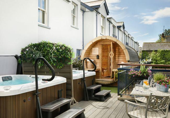 The hot tub and sauna are located at The Victoria Treatment Rooms, located at the Lodge.