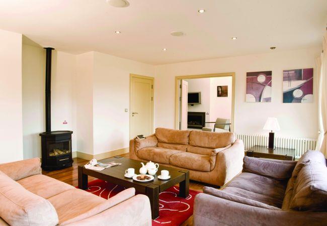 - Large sitting room with comfortable sofas, gas-fired stoved and patio doors