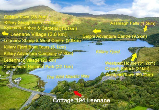 Local area & Tourist Attractions Local activities include boat tours, fishing, hill walking, pony trekking, kayaking, coasteering and much more. There are many places of interest in the immediate area including Aasleagh Falls, and the Village itself featured in the movie “The Field”. The village provides ample places to eat and drink and the local shop will supply you with everything you need for your self-catering holiday.