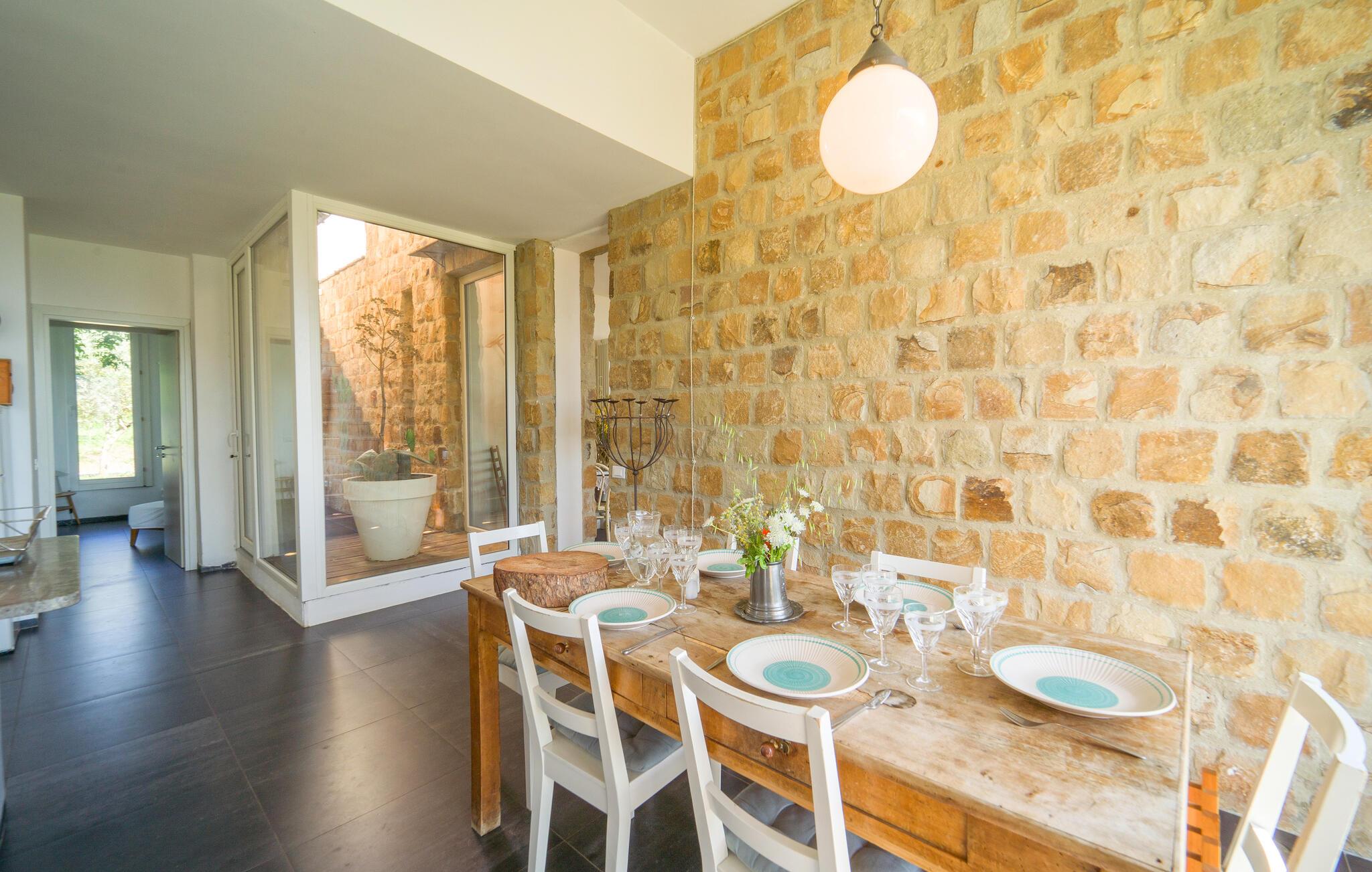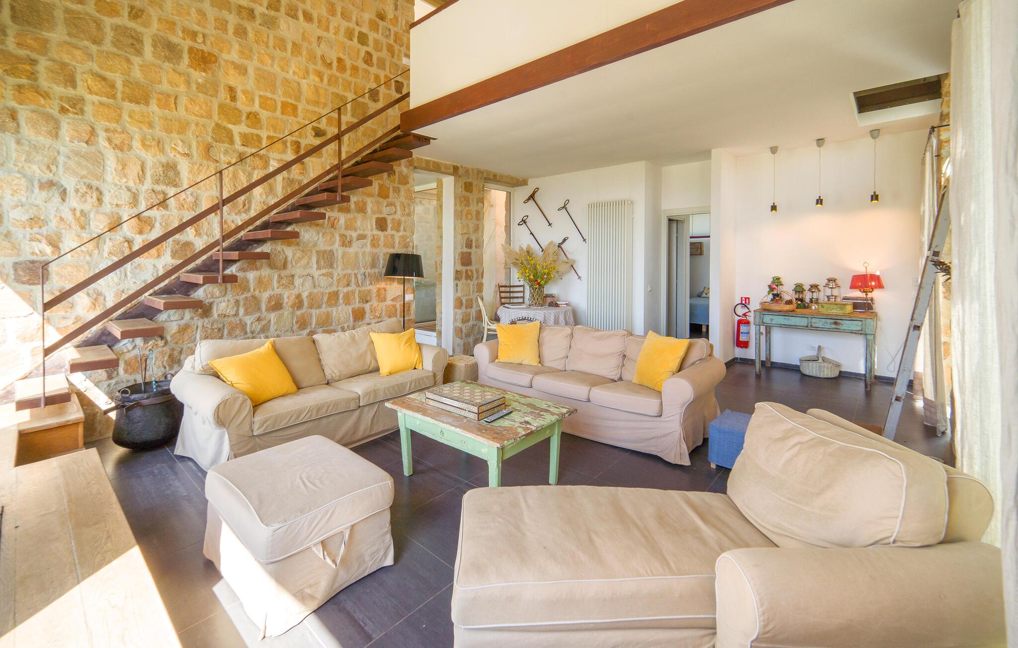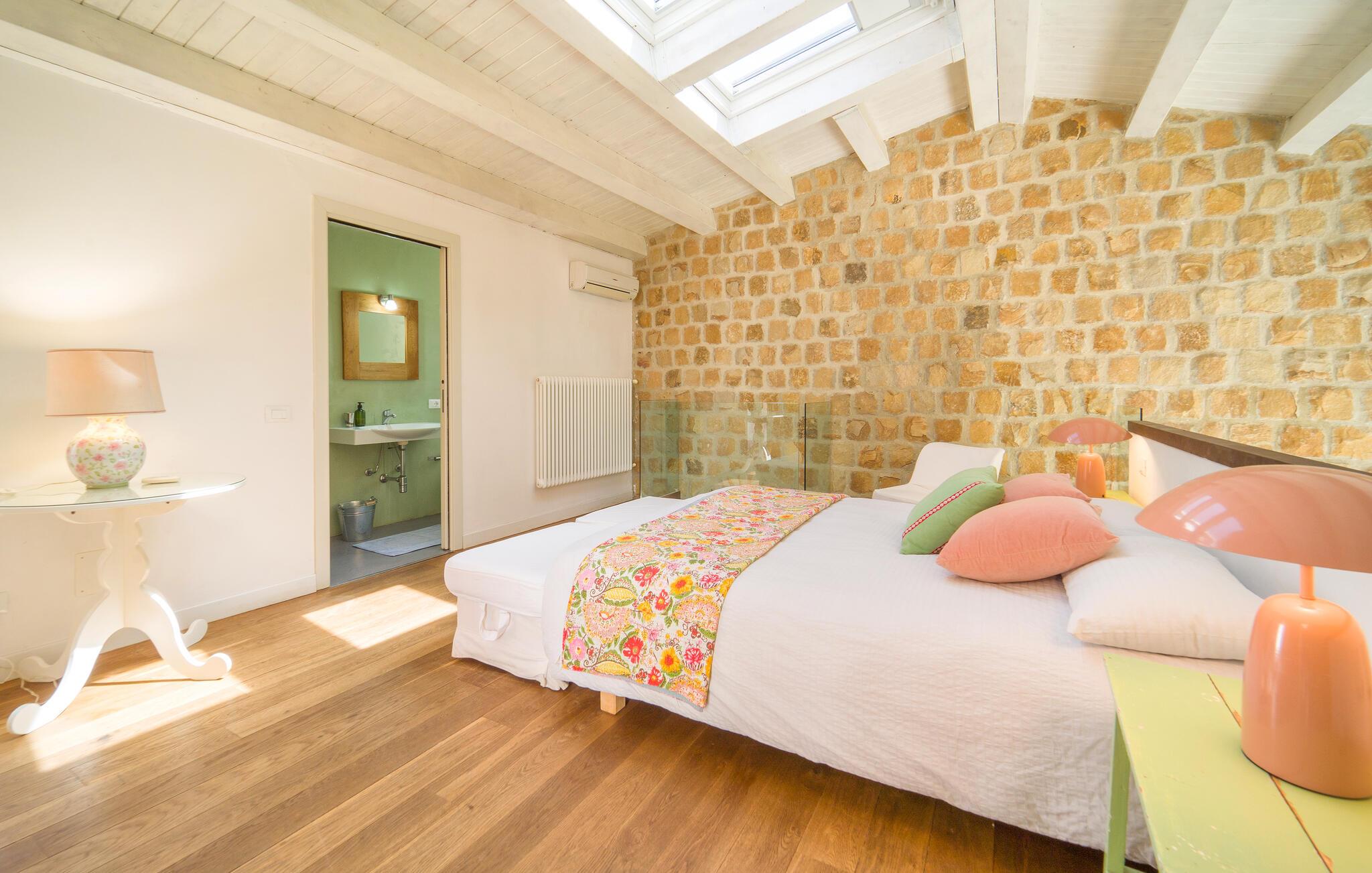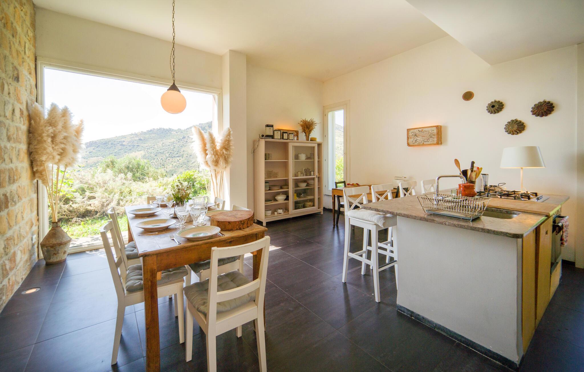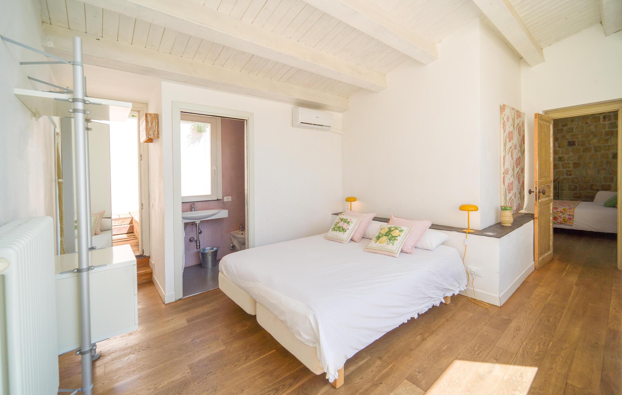 Schönes unabhängiges und fein eingerichtetes Ferienhaus inmitten eines Landgutes, das kaltgepresstes Bio-Olivenöl und uralte Weizenmehle produziert. Es ist das ideale Reiseziel, um einen erholsamen und aktiven Urlaub zu verbringen. Sie können schöne Tage am Gemeinschaftspool oder in der Sauna genießen. In der Nähe gibt es einige interessante naturalistische Routen. Das Naturschutzgebiet Bosco di Favara und Bosco Granza ist nur 8km entfernt. Sie können auch die historischen Dörfer wie Alia und Roccapalumba besuchen oder an einigen Veranstaltungen teilnehmen, die sich auf die Natur beziehen, die die freundlichen Besitzer für Erwachsene und Kinder organisieren. Das Haus erstreckt sich auf 2 Ebenen. Es hat 4 Schlafzimmer, 4 Badezimmer und eine Küche/Wohnzimmer mit einem Schlafsofa für insgesamt 11 Gäste. In der Anlage befinden sich auch ISS326 und ISS327, um alle zusammen einen Urlaub zu verbringen.WLAN-Internetzugang im Gemeinschaftsbereich 150 m vom Haus entfernt.
