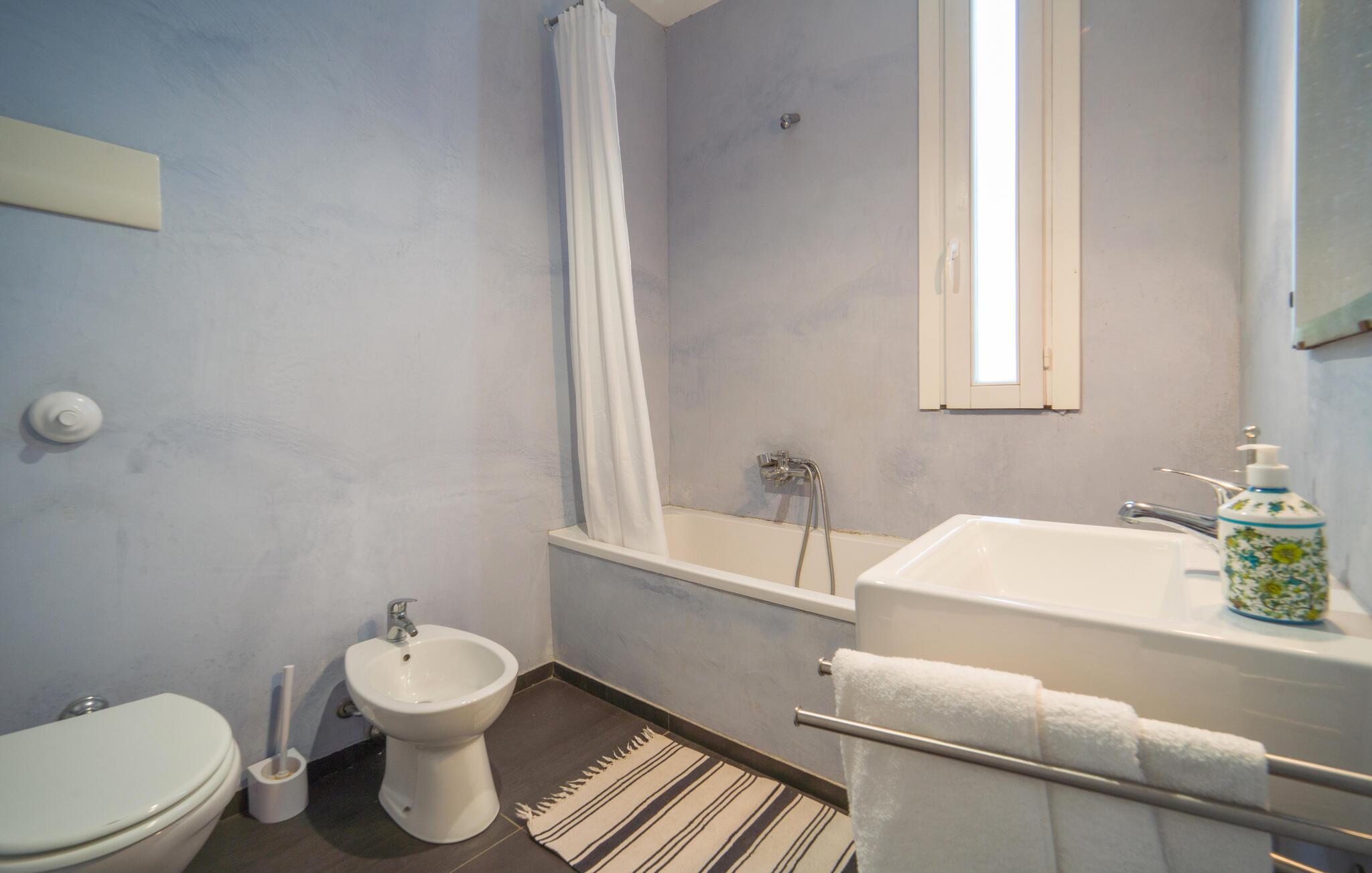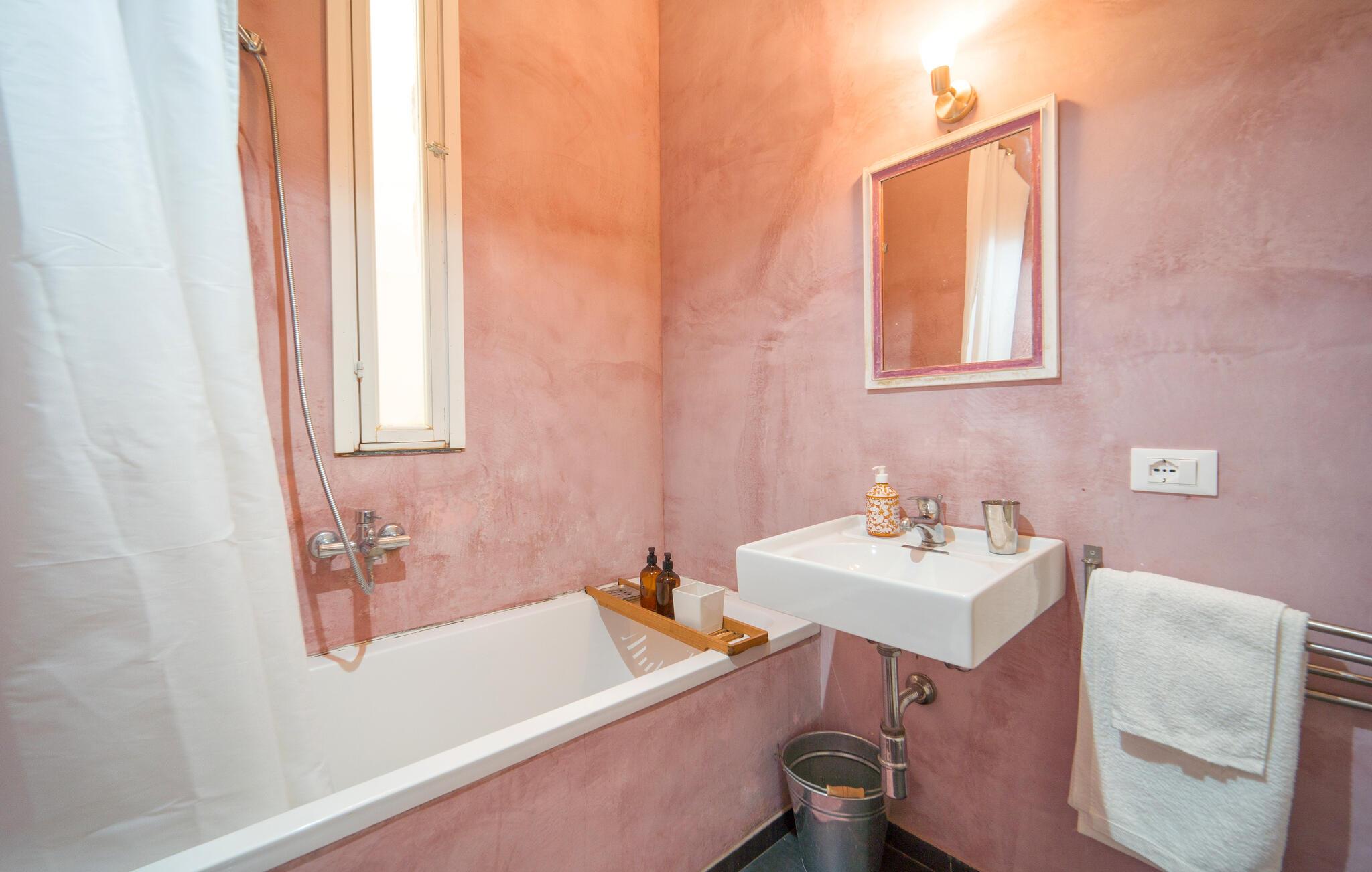 - WC mit warmem und kaltem Wasser, Badewanne