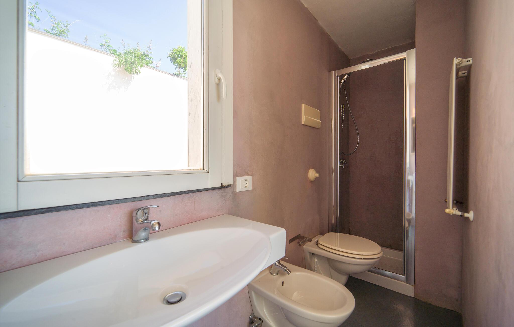 - WC mit warmem und kaltem Wasser, Dusche