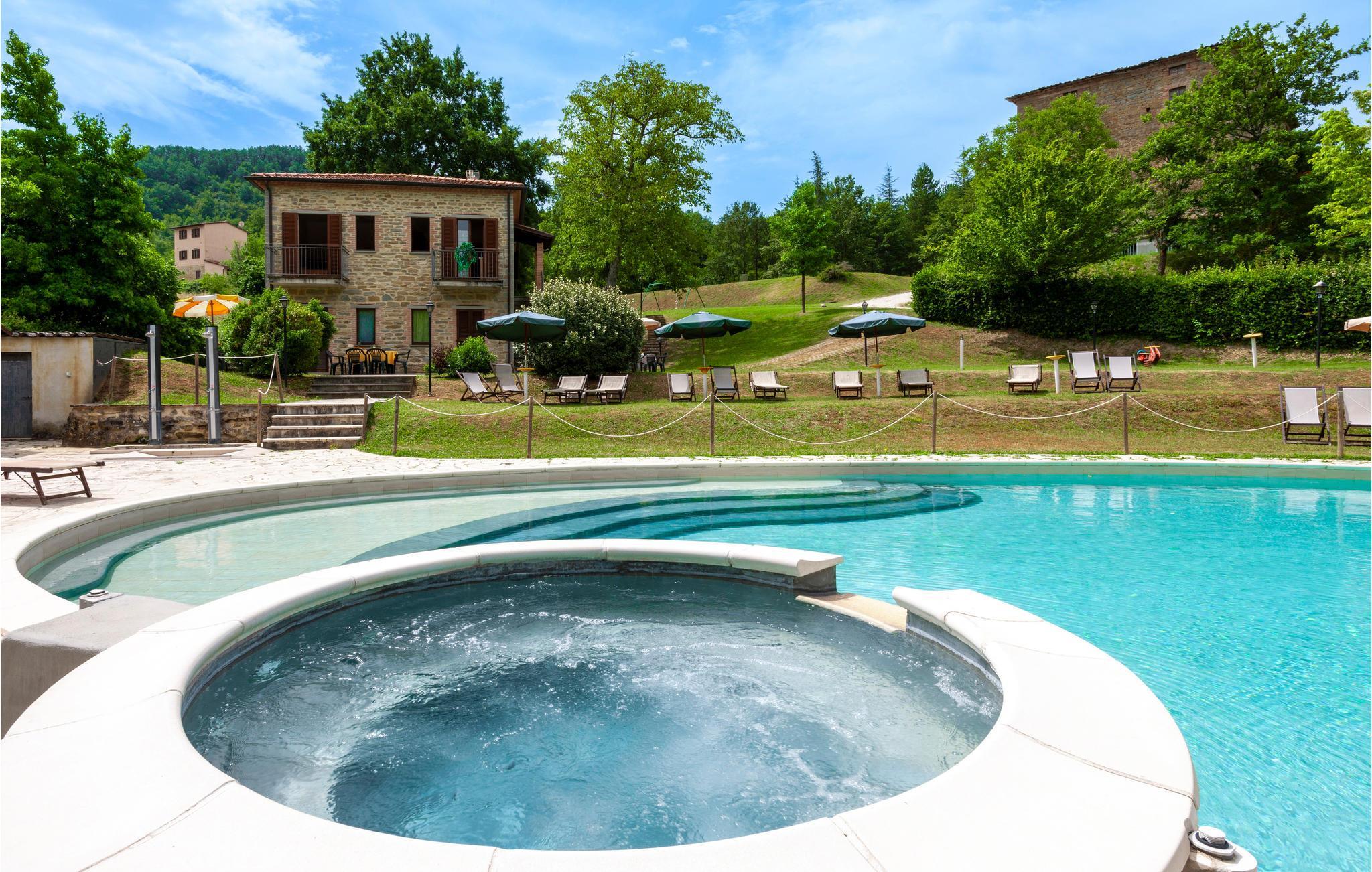 Diese Ferienwohnung befindet sich auf dem Anwesen namens Valguerriera ca. 4 km von Piobbico entfernt in einem Tal im Apennin, ein ideales Reiseziel für all diejenigen, die einen erholsamen Urlaub in unberührter Natur verbringen möchten. Das Anwesen besteht aus dem Herrenhaus und drei Landhäusern, den großzügigen, gemeinschaftlichen Außenbereichen und dem schönen, gemeinschaftlichen Schwimmbad (17x10m) mit Unterwassermassage. In den Landhäusern entstanden insgesamt 11 ansprechend eingerichtete Ferienwohnungen. Die Wohnung verfügt über einen eigenen, kleinen Außenbereich im Erdgeschoss mit Tisch, Stühlen und Sonnenschirm, wo Sie sich entspannen und Ihre Mahlzeiten im Freien einnehmen können. Grill und Waschmaschine zur gemeinschaftlichen Benutzung. Parkplatz auf dem Grundstück. 1 Babybett verfügbar. Das Anwesen befindet sich in den Marken an der Grenze zu den Regionen Toskana und Umbrien in der Nähe von Piobbico (Provinz Pesaro und Urbino), in einem ruhigen Tal namens Candigliano, eins der schönsten und ursprünglichsten Täler im Hinterland von Pesaro, das über ein mildes Klima verfügt und von wo aus Sie einen wundervollen Blick auf den Apennin genießen. In der Umgebung finden Sie Kunst- und Renaissancestädte wie beispielsweise Urbino, UNESCO-Welterbe, bezaubernde, mittelalterliche Dörfer wie Piobbico, Apecchio, Sant’Angelo in Vado und Acqualagna, bekannt für ihre Trüffel, oder Urbania, Cagli, San Marino, Gradara und San Leo. Die Lage des Anwesens ist günstig auch für etwas weitere Tagesausflüge nach Gubbio, Assisi, Perugia, Città di Castello, Arezzo, San Sepolcro, Loreto, Florenz und Siena, alles Orte von großem, kunsthistorischem Interesse, oder nach San Marino, zur Burg von Gradara, den Grotten von Frasassi bzw. zum Furlopass. ENTFERNUNGEN: 4 km Piobbico (Lebensmittelgeschäft und andere Einkaufsmöglichkeiten, Bank, Apotheke, Arzt), 30 km Urbino, 55 km Fano und die Strände der Adriaküste, die man in etwa einer Autostunde erreicht. 6 km ein Wellnesscenter und 10 km entfernt eine Reitbahn. Möglichkeit zu geführten Ausflügen. Die 11 Ferienwohnungen und das unabhängige Ferienhaus, das sich aus 3 der insgesamt 11 Ferienwohnungen zusammensetzt, haben die folgenden Referenznummern: IMM127/422/423/424; IMM128/129/130/131; IMM421/412/419/420. Als Willkommensgeschenk erhalten die Gäste eine Flasche Wein und eine Weinprobe (einmal pro Woche) in einem Weinkeller mit Weinen und typischen Produkten. Für Gäste gibt es auch Sonderpreise bei einem 10 km entfernten Ausritt und bei einem 6 km entfernten Wellnesscenter. WLAN in den Außengemeinschaftsbereichen.