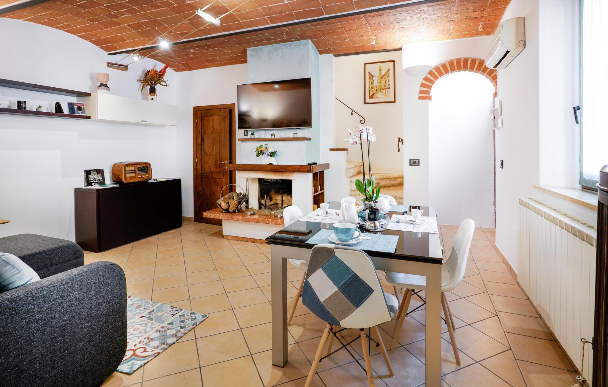 Der rustikale, typisch toskanische Stil Ihrer Ferienwohnung in Bettolle mit den warmen Farbtönen strahlt eine behagliche Atmosphäre aus. Der offene Wohn- und Essbereich lädt zu entspannten Abenden ein. Setzen Sie sich auf das gemütliche Sofa und genießen Sie nach einem erlebnisreichen Tag ein Glas lokalen Wein. Bereiten Sie in der Küche Ihre eigenen Mahlzeiten mit frischen Zutaten vom lokalen Markt zu. Auf dem Markt in Bettolle finden Sie nicht nur frische Produkte, sondern auch typisch toskanische Spezialitäten.