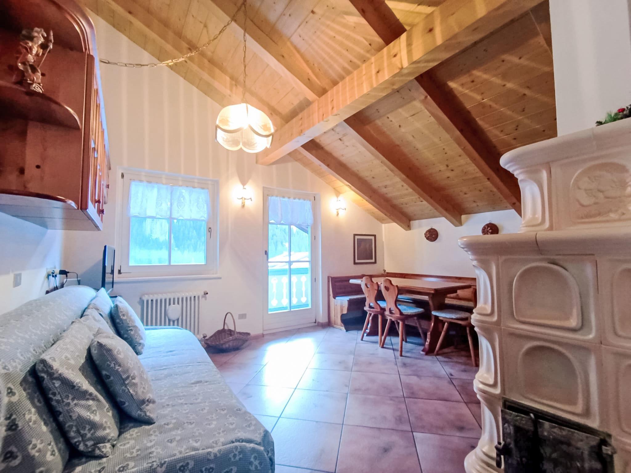 "Cesa sot Larsec", 4-room apartment on 2nd floor. Very comfortable and cosy furnishings: entrance hall. Living/dining room with open-hearth fireplace (only for decoration). Exit to the balcony. 1 double bedroom. 1 room with 1 x 2 bunk beds. 1 room with 2 beds (80 cm, length 190 cm). Open kitchen (oven, dishwasher, 4 induction hot plates). Shower/bidet/WC, bath/shower/WC. Heating available only from 01.12. to 31.05. Facilities: washing machine, hair dryer. Garage on the property. Please note: non-smokers only. Fire extinguisher, no lift. IT022113C276WOGOQP