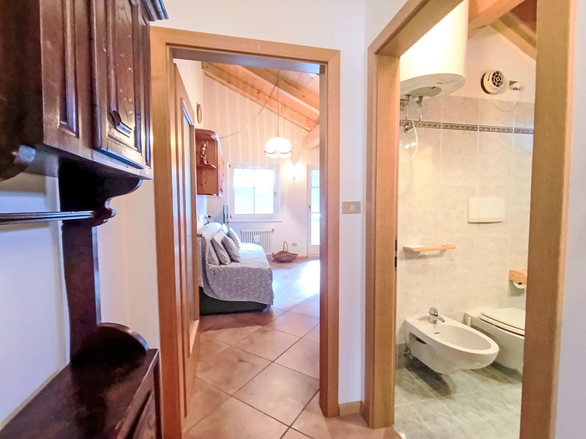 Campestrin 5 km from Canazei: Apartment block "Cesa sor Larsec". In the resort 3 km from the centre of Campitello, in a quiet, sunny position, 3 km from the skiing area. In Winter: please take snow chains. Parking on the premises. Grocery 1 km, bus stop 300 m. Mountain railway 3 km. Nearby attractions: Sella Ronda 3 km, Bolzano 46 km. Well-known ski regions can easily be reached: Cabinovia Belvedere 6 km, Funivia Col Rodella 3 km. Well-known lakes can easily be reached: Lago di Carezza 20 km.