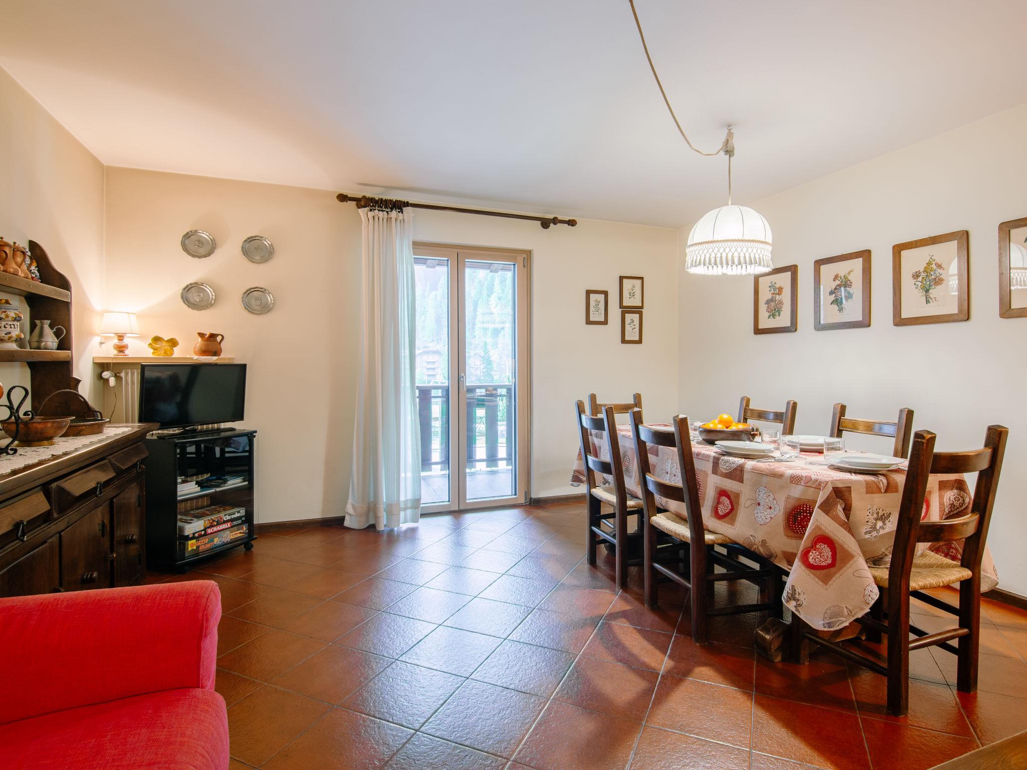 3-room apartment 70 m2 on 2nd floor. Practical and comfortable furnishings: entrance hall. Large living room with dining table and TV (flat screen). Exit to the balcony. 1 double bedroom. 1 room with 1 x 2 bunk beds. Exit to the balcony. Kitchen (oven, dishwasher, 4 induction hot plates, microwave) with dining table. Exit to the balcony. Bath/shower/bidet/WC. Very beautiful panoramic view of the mountains and the valley. Facilities: washing machine, iron, baby cot for up to 2 year olds (extra), hair dryer. Internet (WiFi, free). Please note: suitable for families. Non-smokers only. Fire extinguisher. IT022039C22KCSR32B
