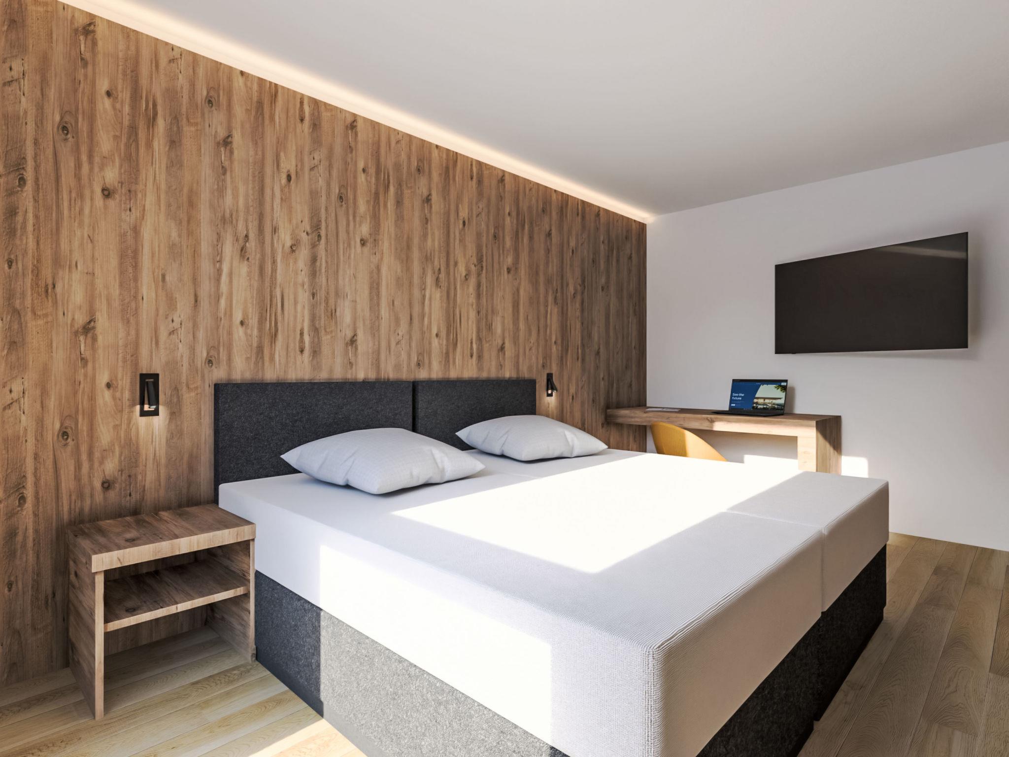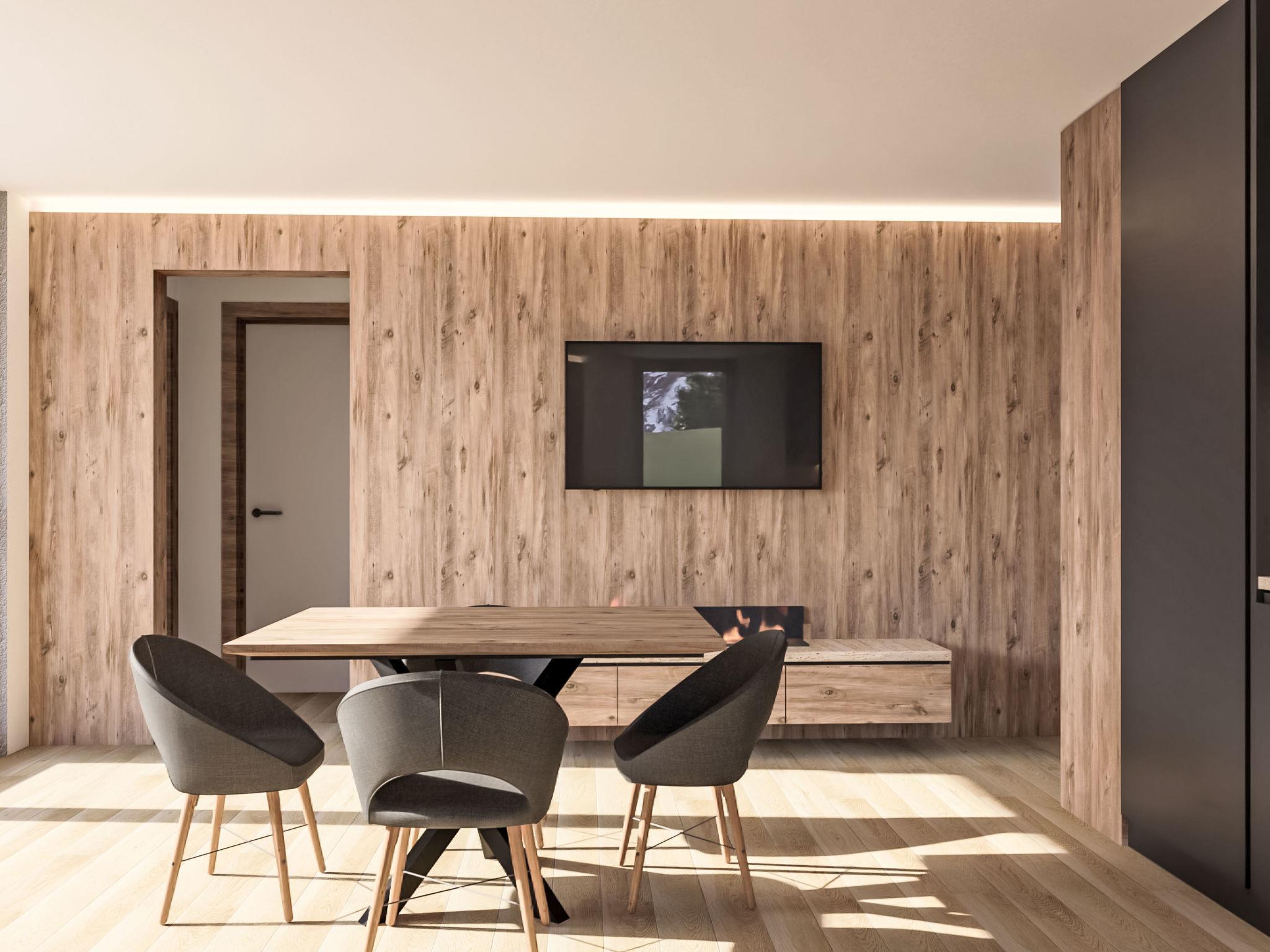 "Domus Canazei", 3-room apartment on the ground floor. Stylish and cosy furnishings: entrance hall. Living/dining room with panoramic window with dining table and TV (flat screen). Exit to the terrace. 1 room with panoramic window with 1 double bed (160 cm, length 190 cm). 1 room with 1 double bed (180 cm, length 200 cm), TV. Open kitchen (oven, dishwasher, 4 induction hot plates, freezer). Shower/bidet/WC. Heating. Heating available only from 01.12. to 01.05. Terrace. Terrace furniture. Panoramic view of the mountains. Facilities: washing machine, dryer, hair dryer. Internet (WiFi). Garage on the property (1 car). E-charging station. Please note: non-smokers only. Smoke alarm, fire extinguisher. IT022039B4ZR84J4ZV