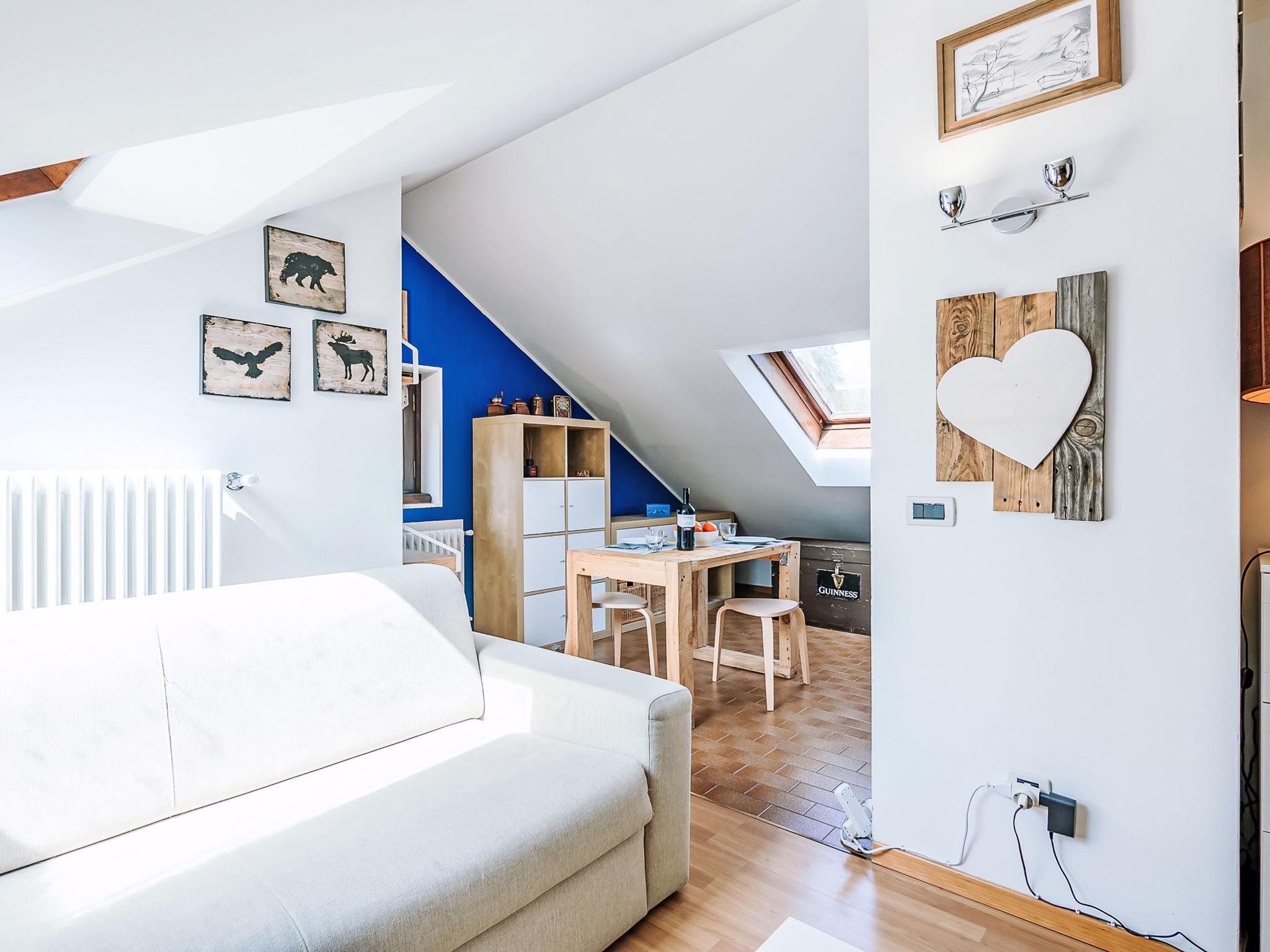 "Mansarda Golfieri", 1-room apartment 40 m2, on the upper floor. Bright, with sloping ceilings, very comfortable and cosy furnishings: living/dining room with 1 double sofabed and TV. Open kitchen (4 hot plates, dishwasher, toaster, kettle, microwave, electric coffee machine). Bath/bidet/WC. Heating. Beautiful panoramic view of the mountains and the countryside. Facilities: iron, hair dryer. Internet (WiFi, free). Parking. Please note: fire extinguisher. IT022039C2TZXXMXZX