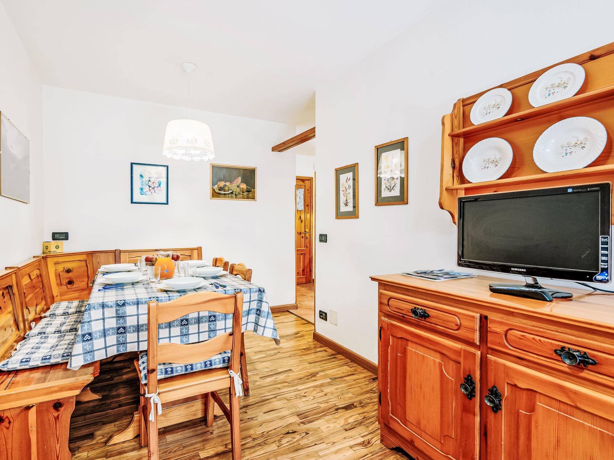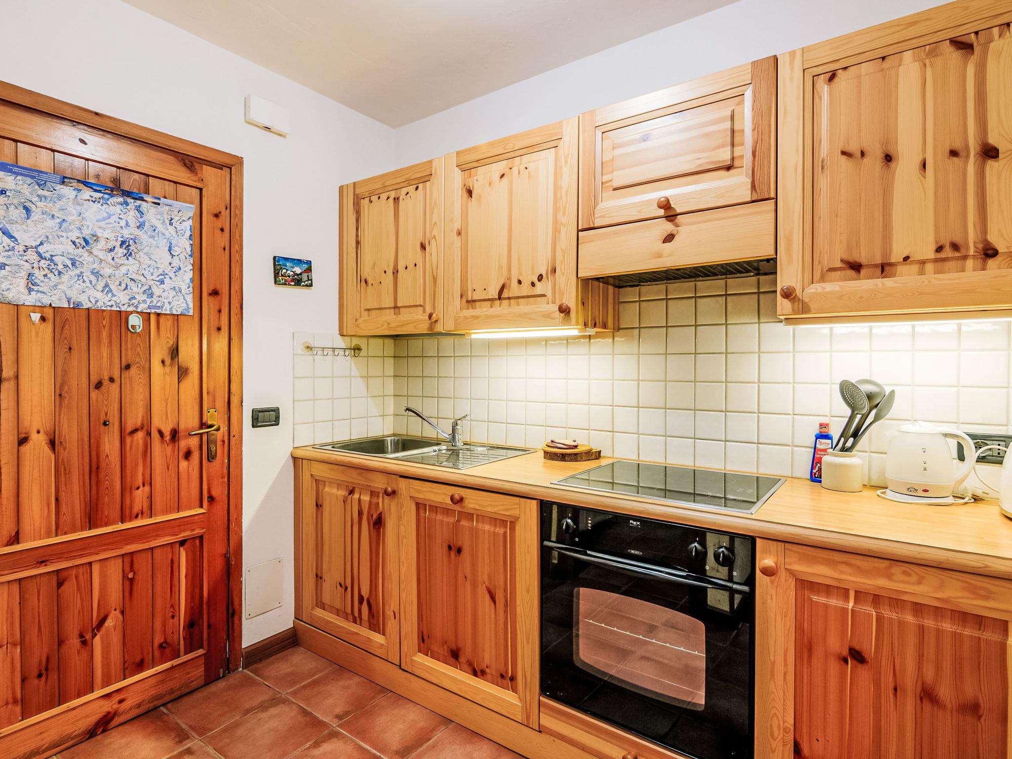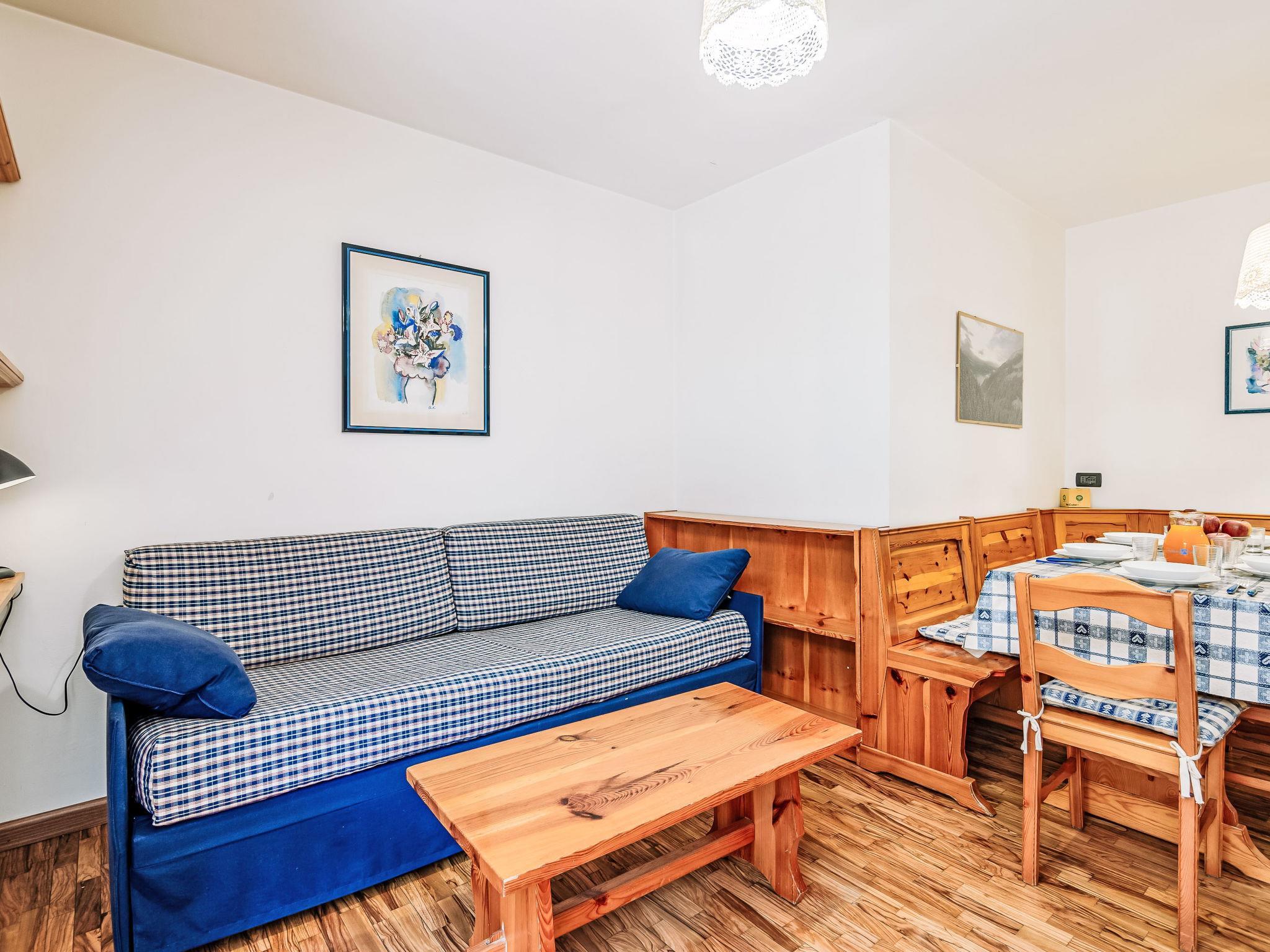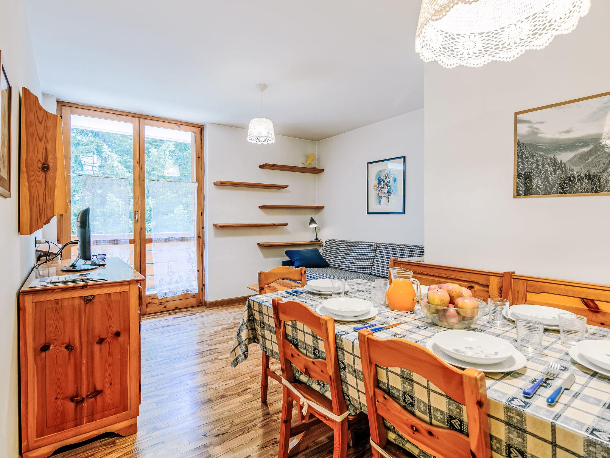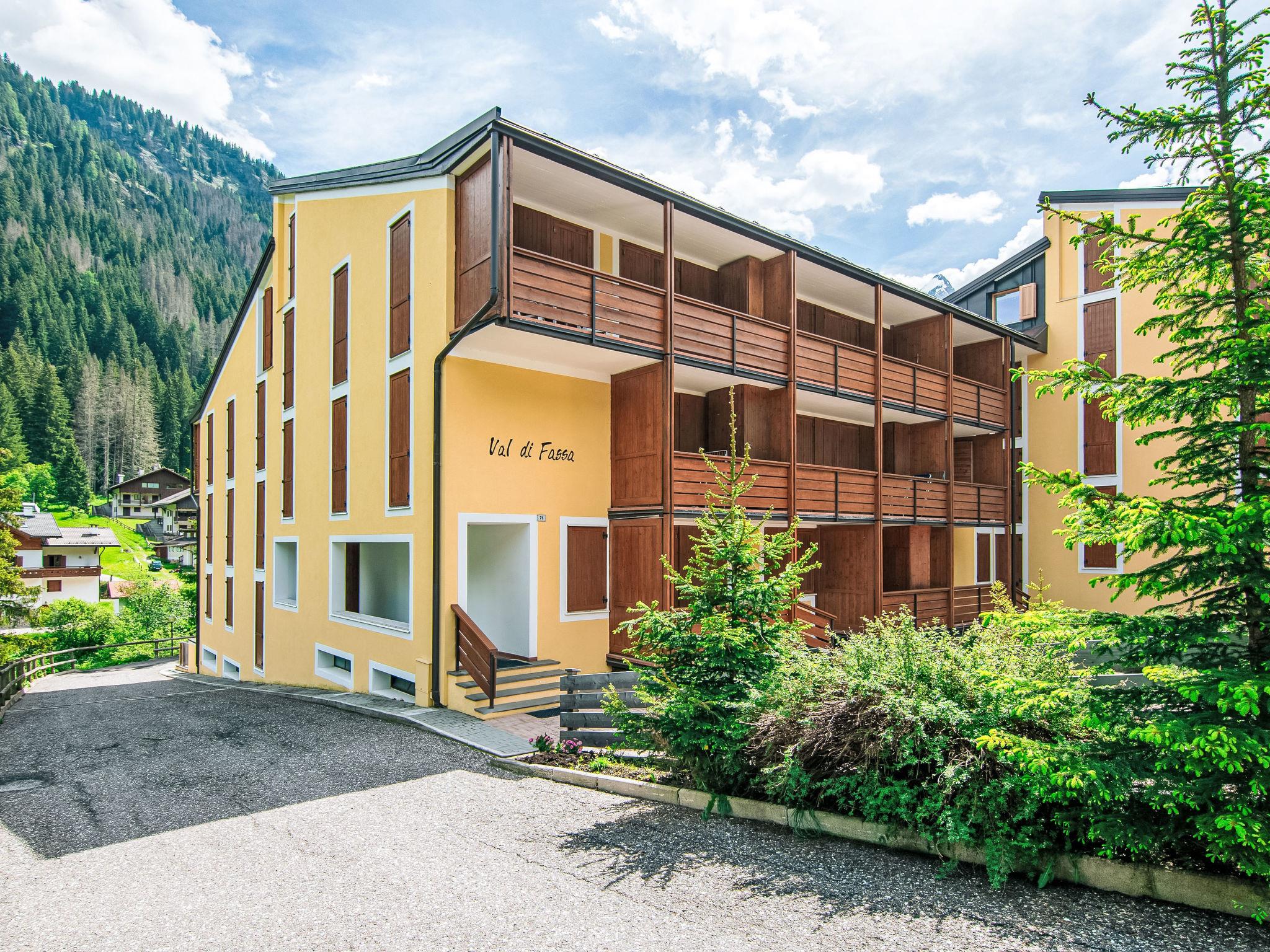 "Condominio Val di Fassa", 2-room apartment 45 m2 on 1st floor. Simple and comfortable furnishings: living/dining room with 1 double sofabed and TV. Exit to the balcony. 1 double bedroom. Kitchenette in the entrance (oven, dishwasher, 4 ceramic glass hob hotplates, toaster, kettle). Shower/bidet/WC. Gas heating. Parquet floors. Beautiful view of the mountains. Facilities: washing machine, baby cot for up to 2 year olds, hair dryer. Internet (WiFi, free). Parking (roofed, 1 car). Please note: non-smokers only. No lift. IT022039C2FQVMCS6N