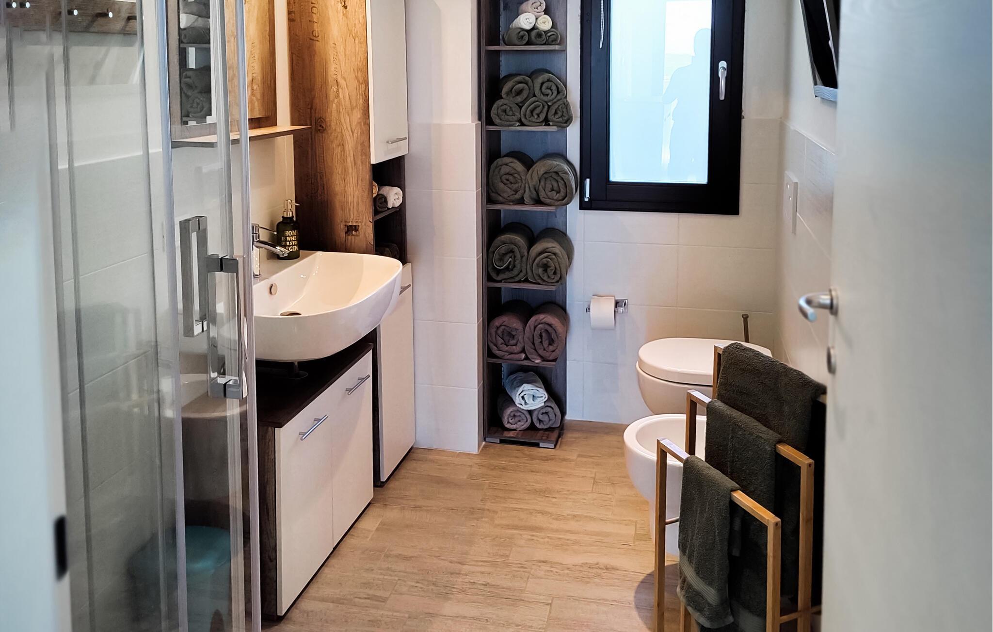 - WC mit warmem und kaltem Wasser, Dusche