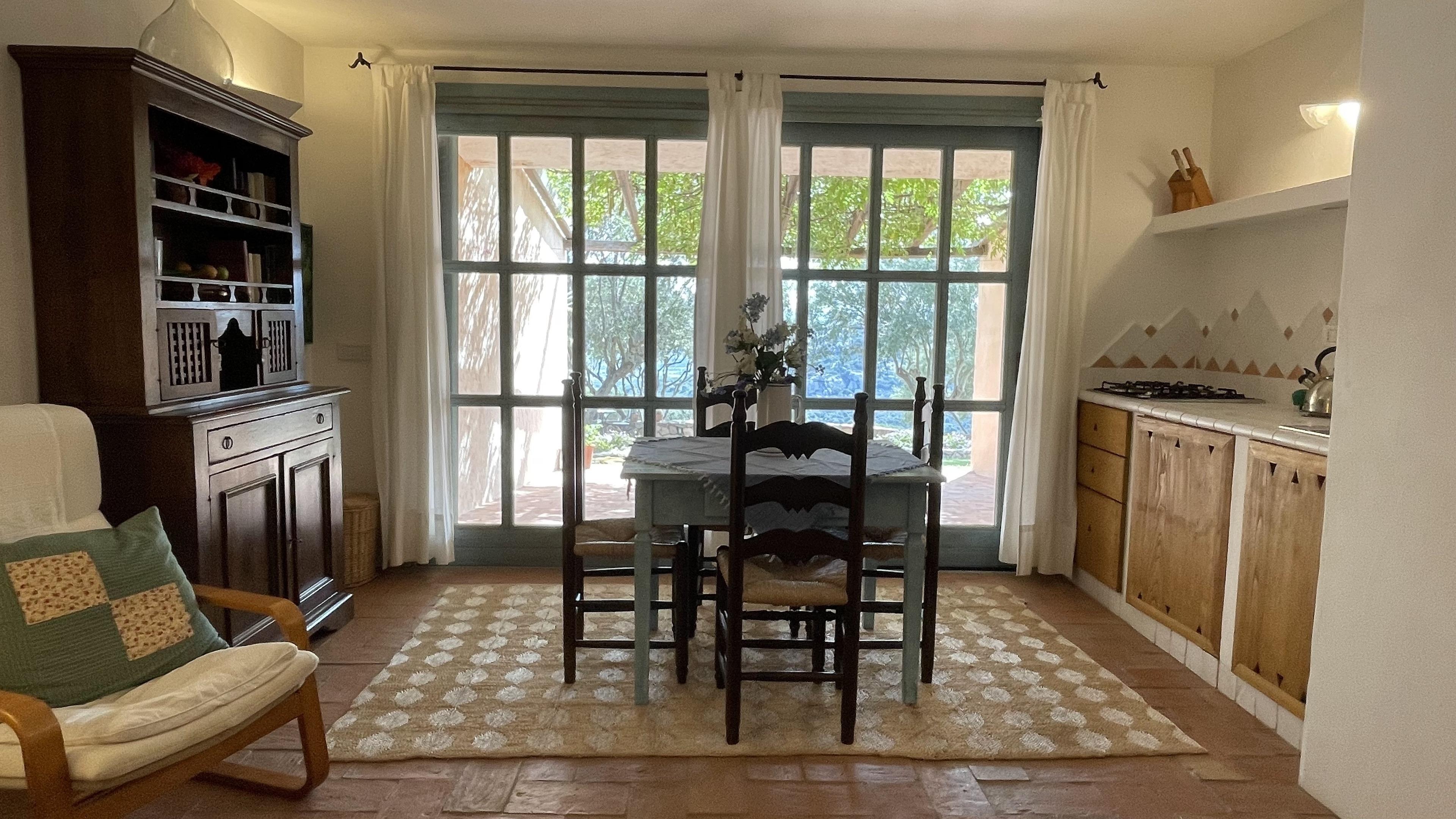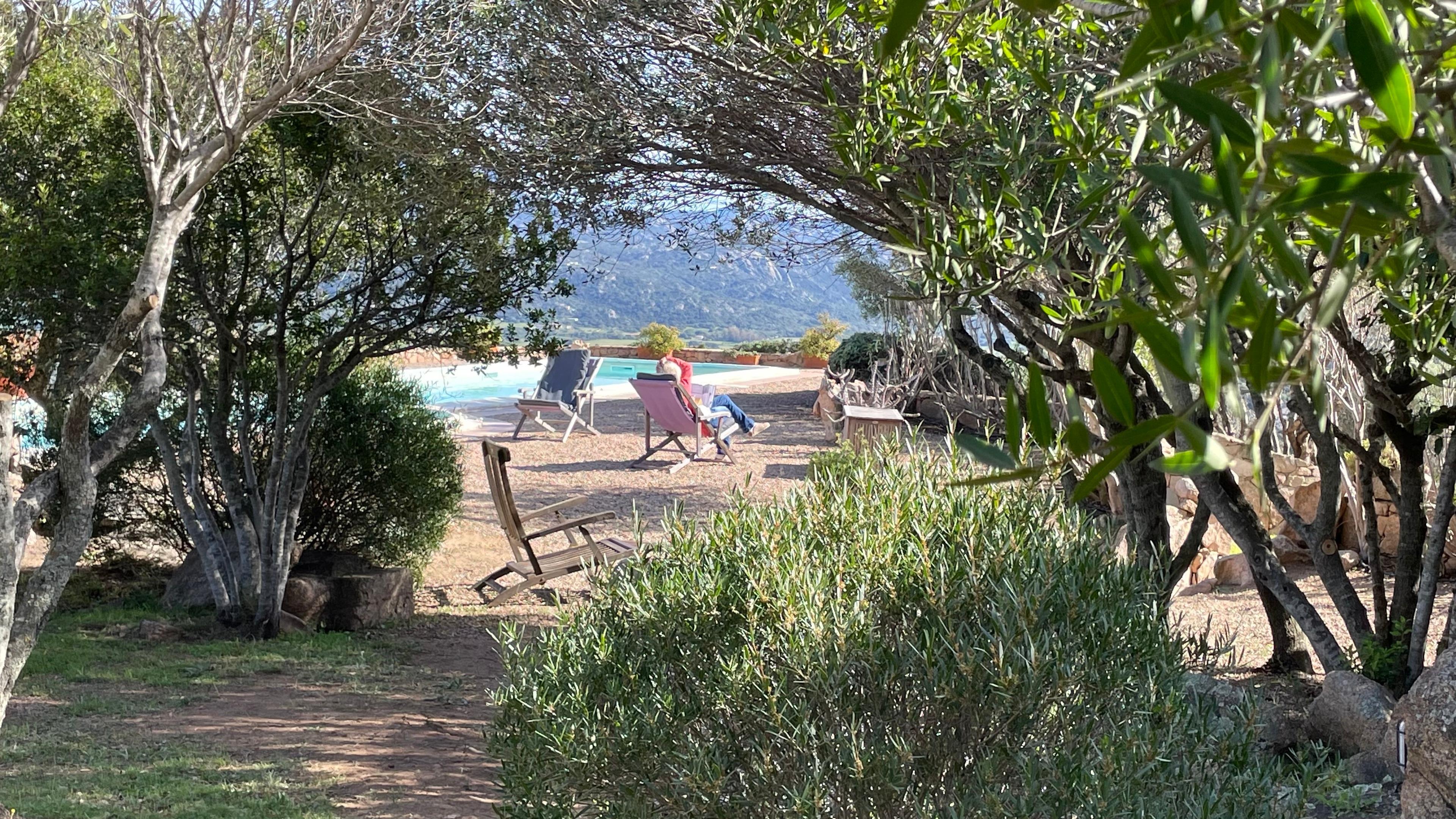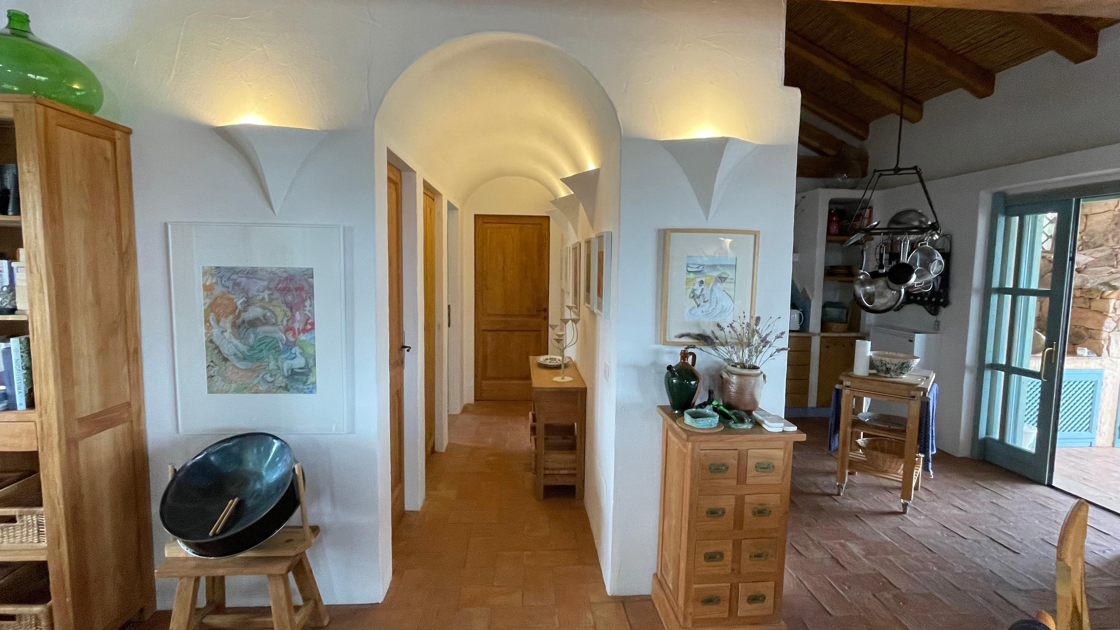 Von der Landstraße zwischen Cannigione und Arzachena zweigt ein etwa 2 km langer Privatweg, gesäumt von alten Korkeichen, Wacholder- und Macchia-Gewächsen ab, der zu unserem Haus führt. Das Haus ist nach ökologischen Gesichtspunkten erbaut und liegt auf einem Hügel in einer weitläufigen, teilweise felsigen Landschaft mit der typisch sardischen Vegetation.