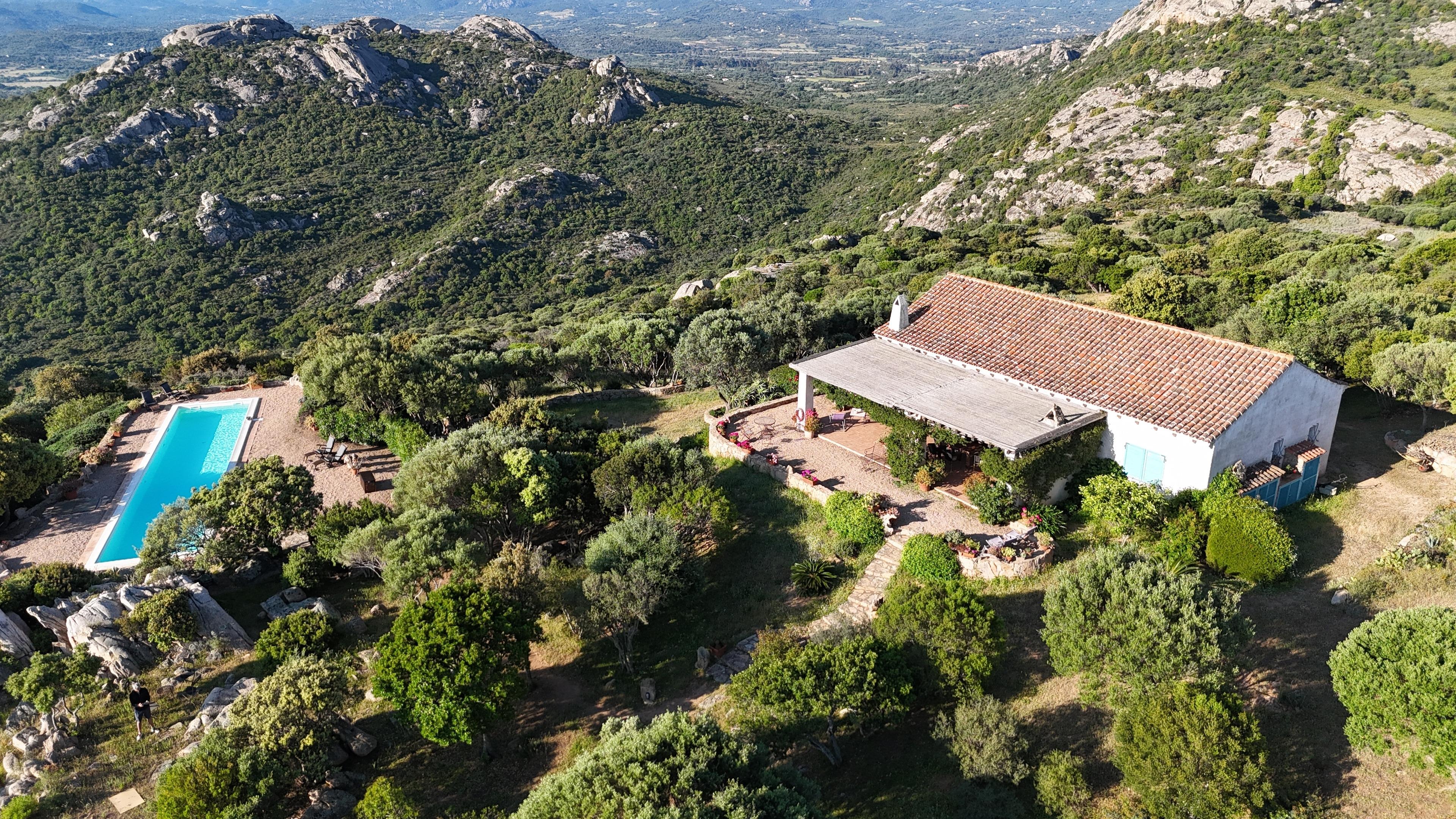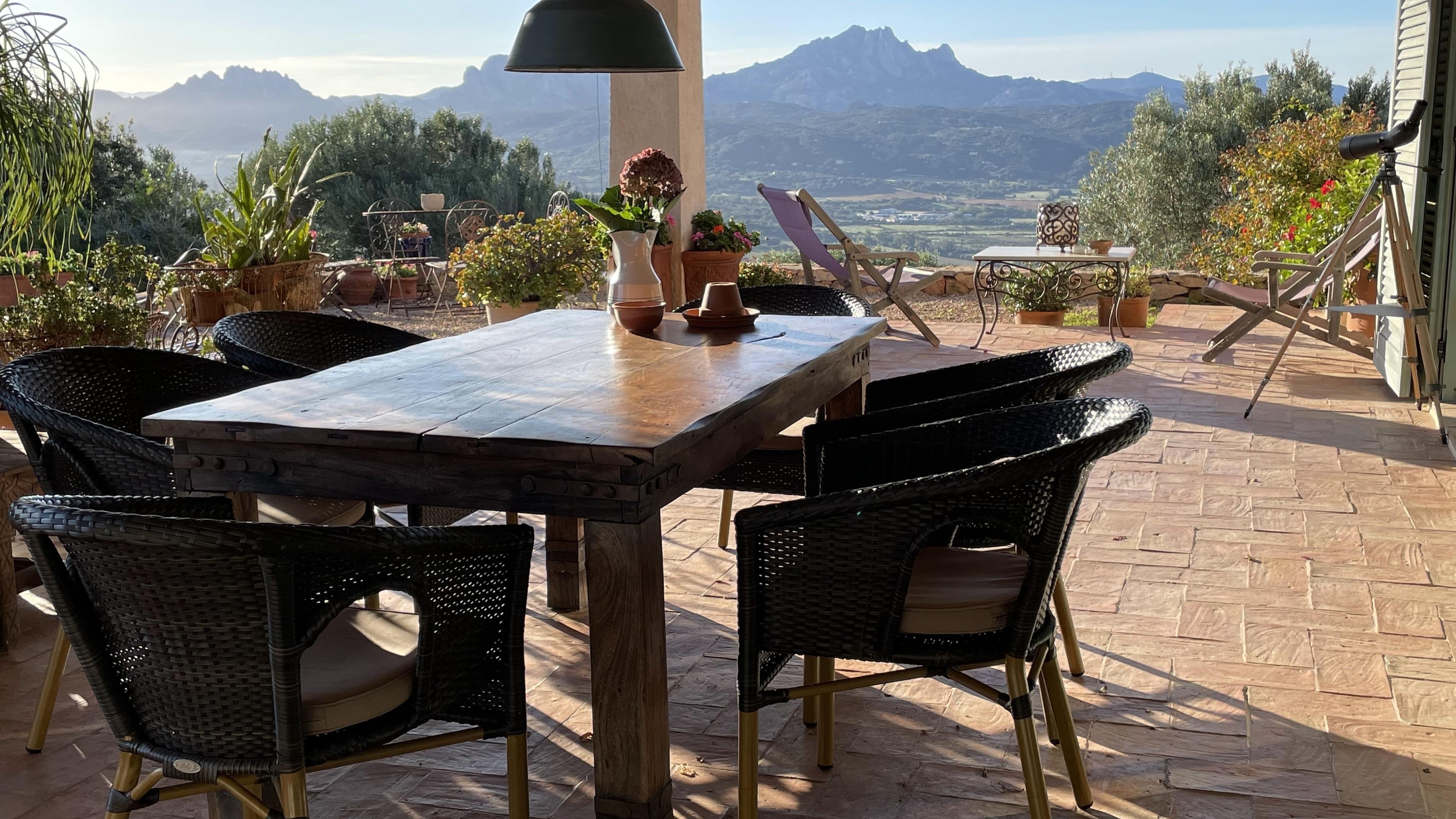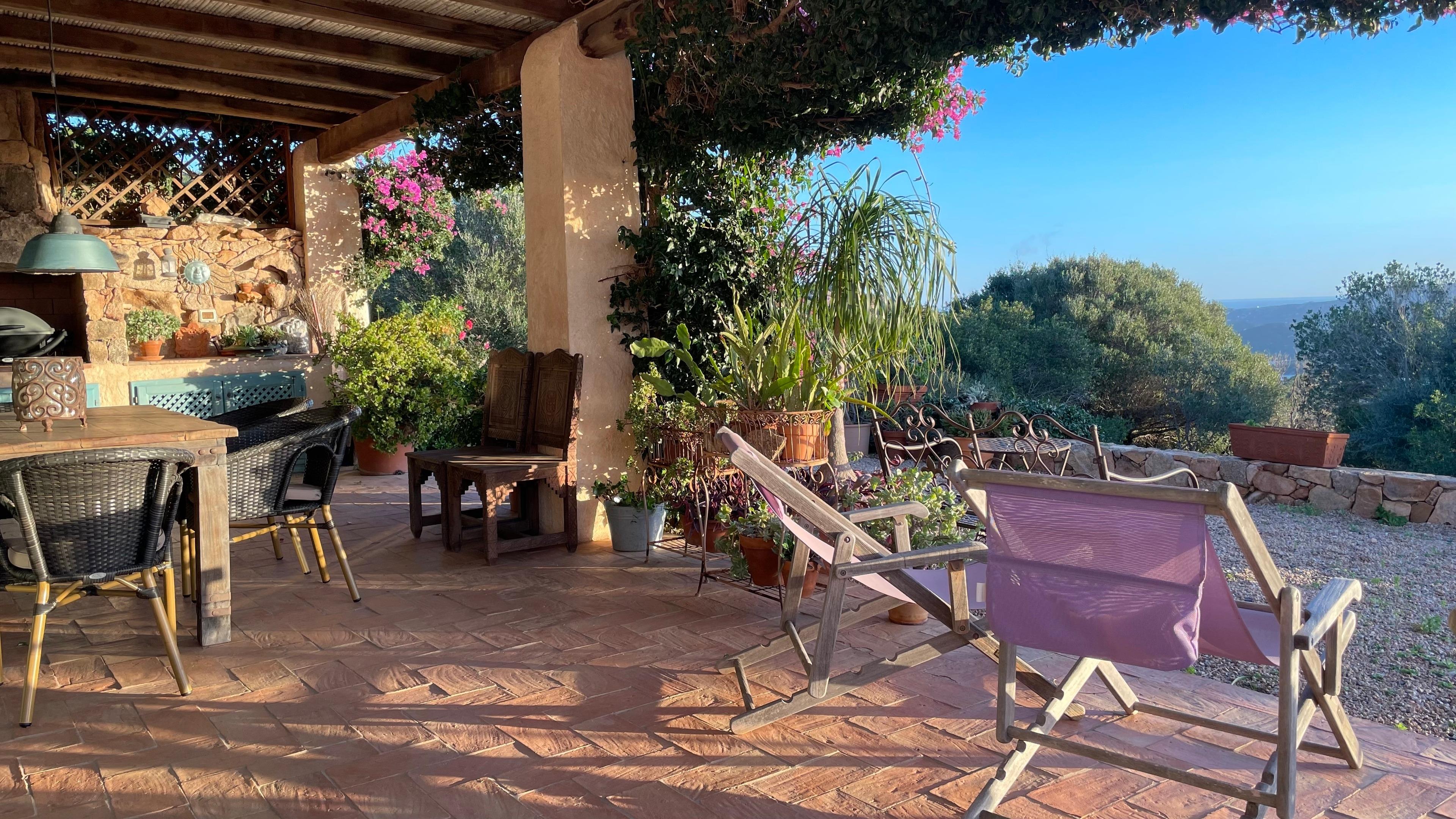 Nur eine halbe Stunde vom Flughafen und Fährhafen Olbia entfernt, liegt unsere Ferien Villa (Stazzu = Sardisches Landhaus) hoch über dem Golf von Arzachena - am nordöstlichen Rand der Costa Smeralda. Eingebettet in einer monumentalen Felsenlandschaft mit mediterraner Macchia, wilden Oliven, wilden Birnbäumen, wildem Fenchel, Lavendel-, Mirto, Ginsterbüschen und Zistrosen. Der 360 Grad-Ausblick von hier oben ist atemberaubend. Es geht immer ein leichter Wind, das ist besonders in den Sommermonaten sehr angenehm.