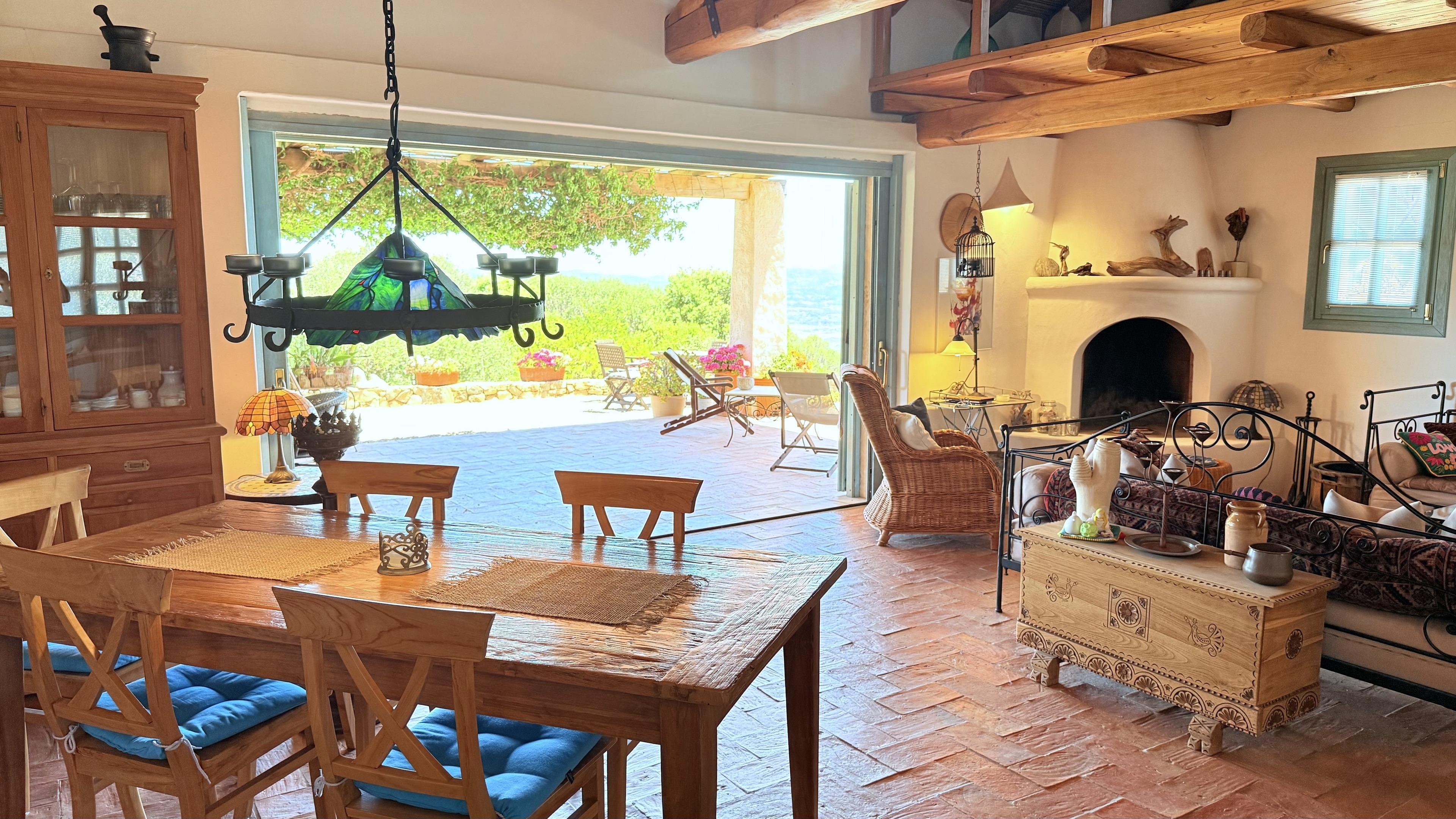 Villa Stazzu La Sarra | Cannigione (Arzachena) | für 6 Gäste, 3 Schlafzimmer + 3 Bäder. 5 Min. Fahrt zum Strand. Außergewöhnliches Sardisches Landhaus (Stazzu), 180m2, mit Appartement Gartenetage, Panorama Pool, Meerblick und spektakulärem rundum Fernblick. 15 km von Porto Cervo, Costa Smeralda.