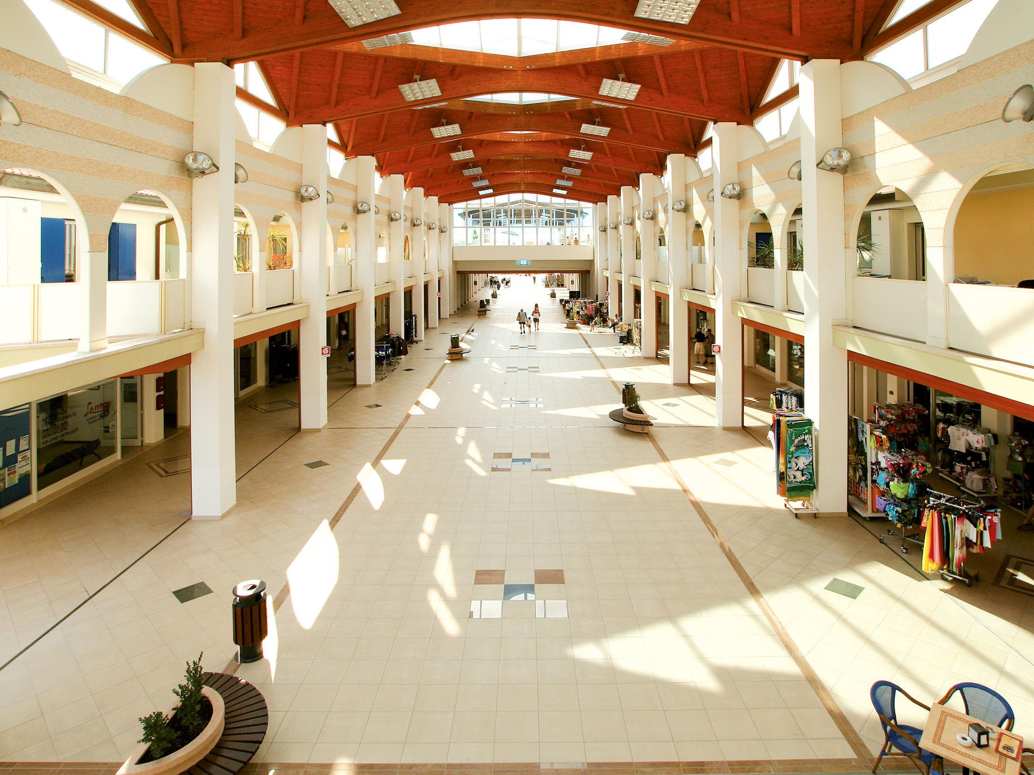 3-room apartment 52 m2, on the upper floor. Practical furnishings: living/sleeping room with 1 double sofabed, dining table and satellite TV. 1 room with 2 beds. 1 room with 1 bed and 1 double bed. Kitchenette (4 gas rings, microwave, freezer, electric coffee machine). Shower/bidet/WC. Air-conditioning, forced-air heating. Balcony. Balcony furniture. Facilities: safe, baby cot for up to 2 year olds (extra). Parking (1 car). The balcony faces the covered shopping gallery. IT027005C24ADW5IIR