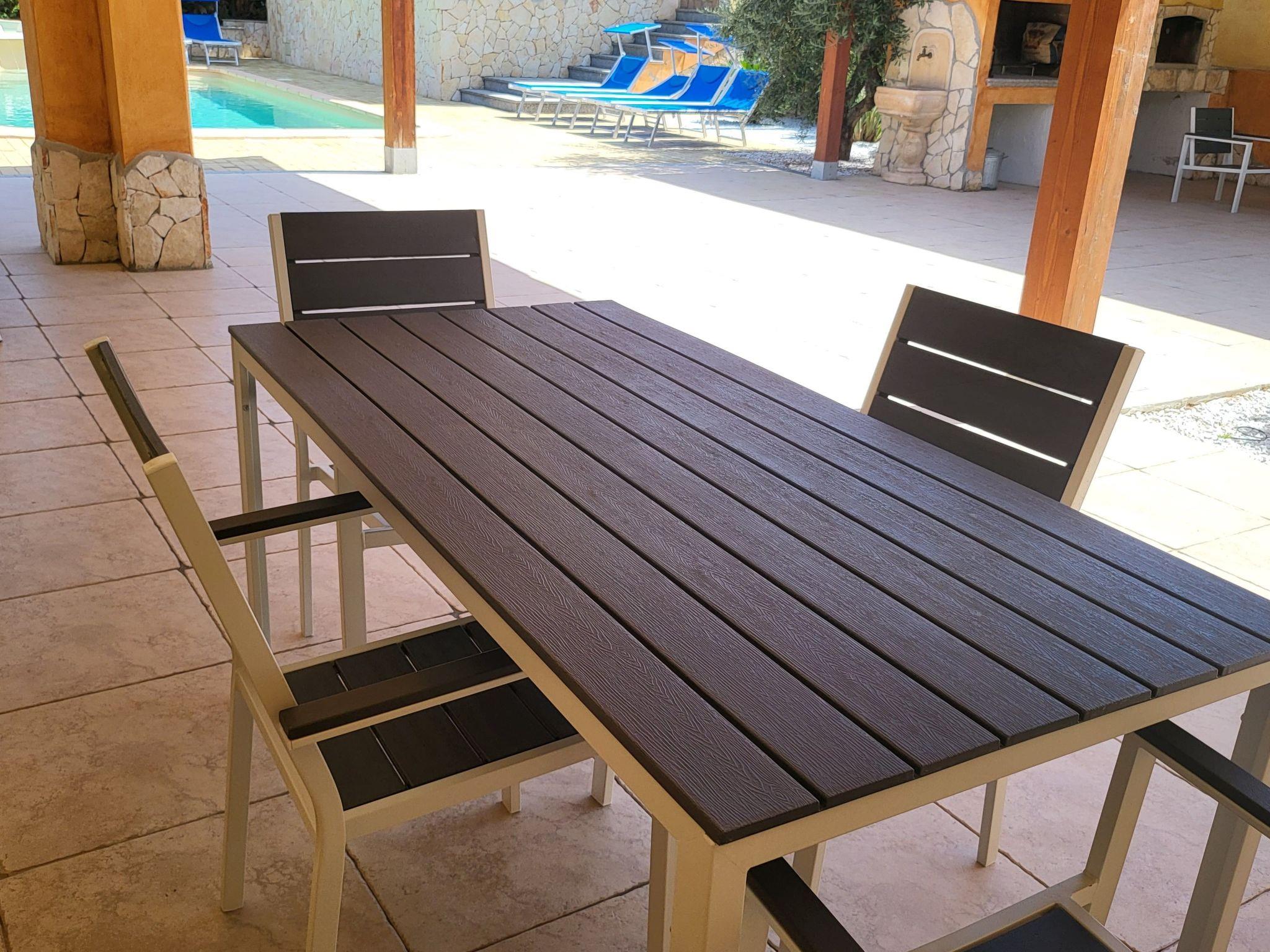 Exclusive villa, ideal for pleasant moments in the company of friends and family, enjoying the comforts and maximum privacy only 5 minutes from the sea. Equipped with 3 bedrooms (2 doubles and one with 2 cots), 2 bathrooms, living room with kitchen, veranda, wooden gazebo, private garden with lawn, sunbathing solarium, swimming pool, Jacuzzi, internal parking. Amenities: - Air conditioning in all rooms - Private Outdoor Space with tables and chairs - Parking - Internet access - Household linen - Washing machine - Ironing board and iron - Hair dryer - Barbecue - Automatic gate - TV - Microwave - Dishwasher - Fridge with Freezer - Toaster - Oven - 5 burner cooker - outdoor sun loungers, outdoor shower and swimming pool. Amenities: Bed linen - Household linen - Towels - Dishwasher - Washing machine - Wifi - TV - Air conditioning - Oven - Outdoor barbecue, etc..