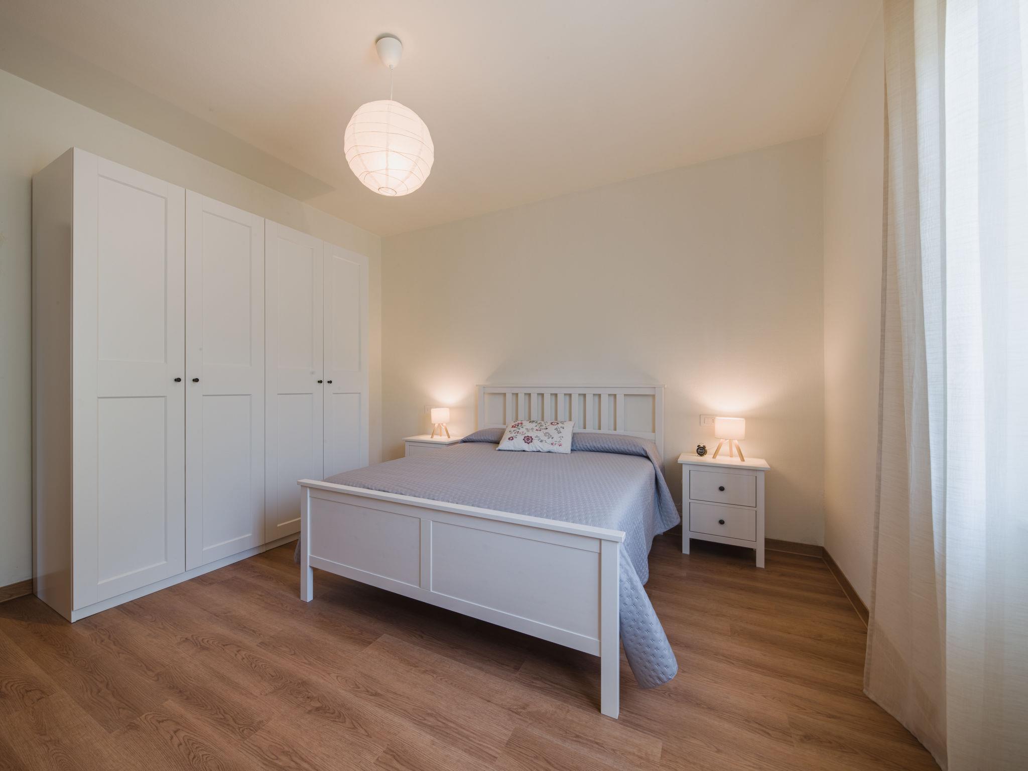 4-room apartment 100 m2 on 2nd floor. Renovated in 2025, practical and cosy furnishings: entrance hall with air conditioning. Living room with TV. 2 double bedrooms. 1 room with 2 beds (length 180 cm). Kitchen (dishwasher, 4 induction hot plates, kettle, microwave, electric coffee machine) with dining table. Shower/bidet/WC, sep. WC. Gas heating. Heating available only from 01.11. to 15.04. Balcony, terrace 10 m2. Terrace furniture. Facilities: washing machine, hair dryer. Internet (WiFi, free). Parking (roofed, 1 car) at 50 m, height 175 cm, width 240 cm. Please note: private entrance, fire extinguisher, no lift. The swimming pool and garden are located 50m from the house (road to cross). IT010011C2D4EWH3ID
