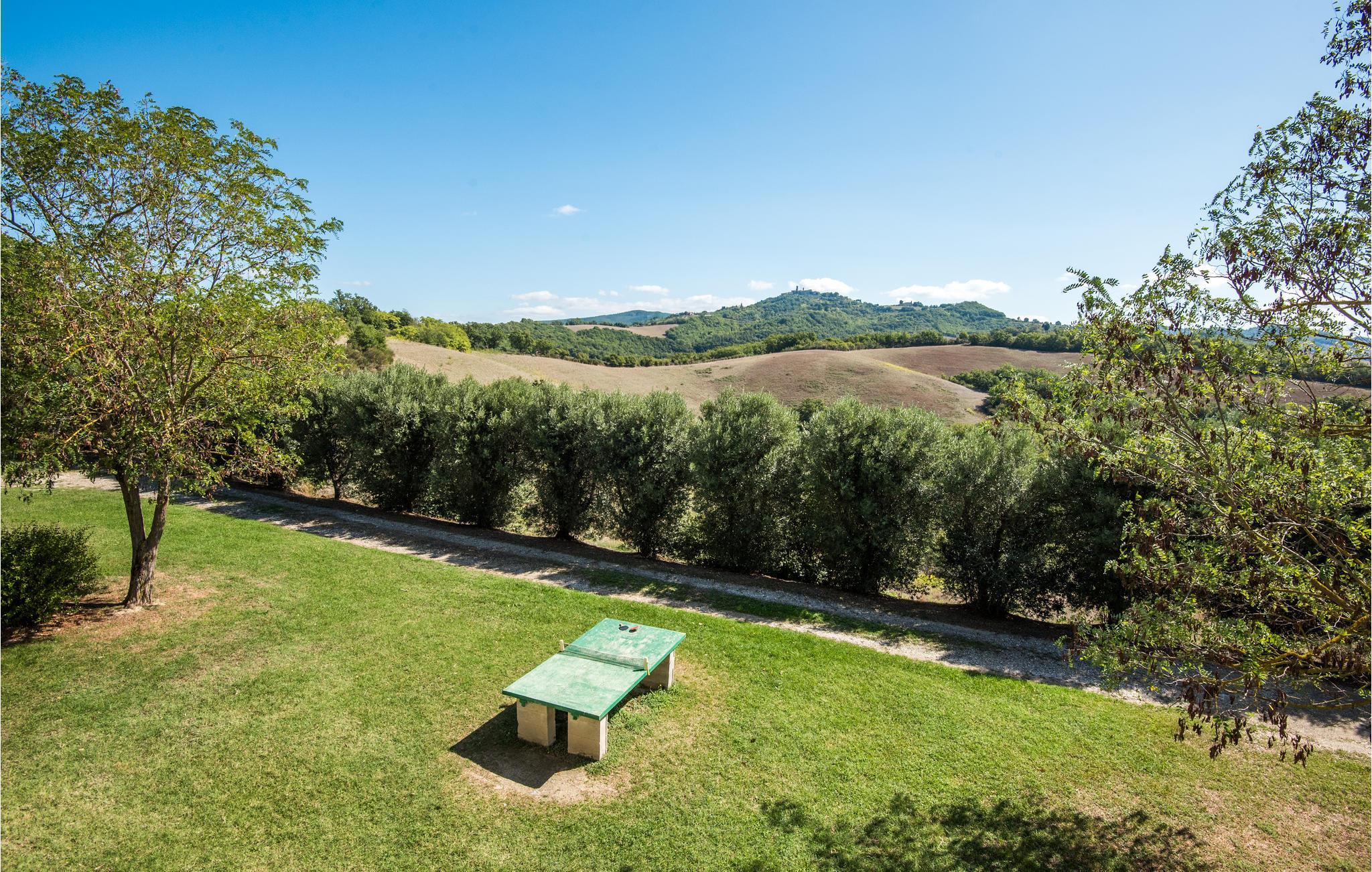 Etwa 5 km von der kleinen Ortschaft Monteguidi entfernt, zwischen Siena, Volterra und San Gimignano, liegt dieses Ferienhaus in dominanter Hügellage, mit privatem Pool und weitem Blick in die malerische Landschaft. Es handelt sich um ein typisches ehemaliges Bauernhaus, mit Wohnbereich im 1. Stock und einer zentralen Wohnküche mit offenem Kamin. (Erdg.: geschlossene Räume). Die Einrichtung ist einfach, aber funktional im ländlichen Stil. Rund um das Haus erstreckt sich das weitläufige Naturgrundstück mit gepflegtem Poolbereich und Panorama-Terrasse, Sitzgruppe mit Barbecue; Tischtennis. - Dieses Haus liegt für sich allein, etwa 2 km von den Ferienwohnungen ITS161,162,163 entfernt (von der gleichen Vermieterin); Die Zufahrtsstrasse (Schotterweg, 4 km) ist für tief liegende Autos oder Sportwagen nicht geeignet. Empfehlenswerte Ausflugsziele: Siena, San Gimignano und Volterra jeweils etwa 35 km; Casole d'Elsa 13km; ein Badetag an den Stränden bei Cecina (65km).