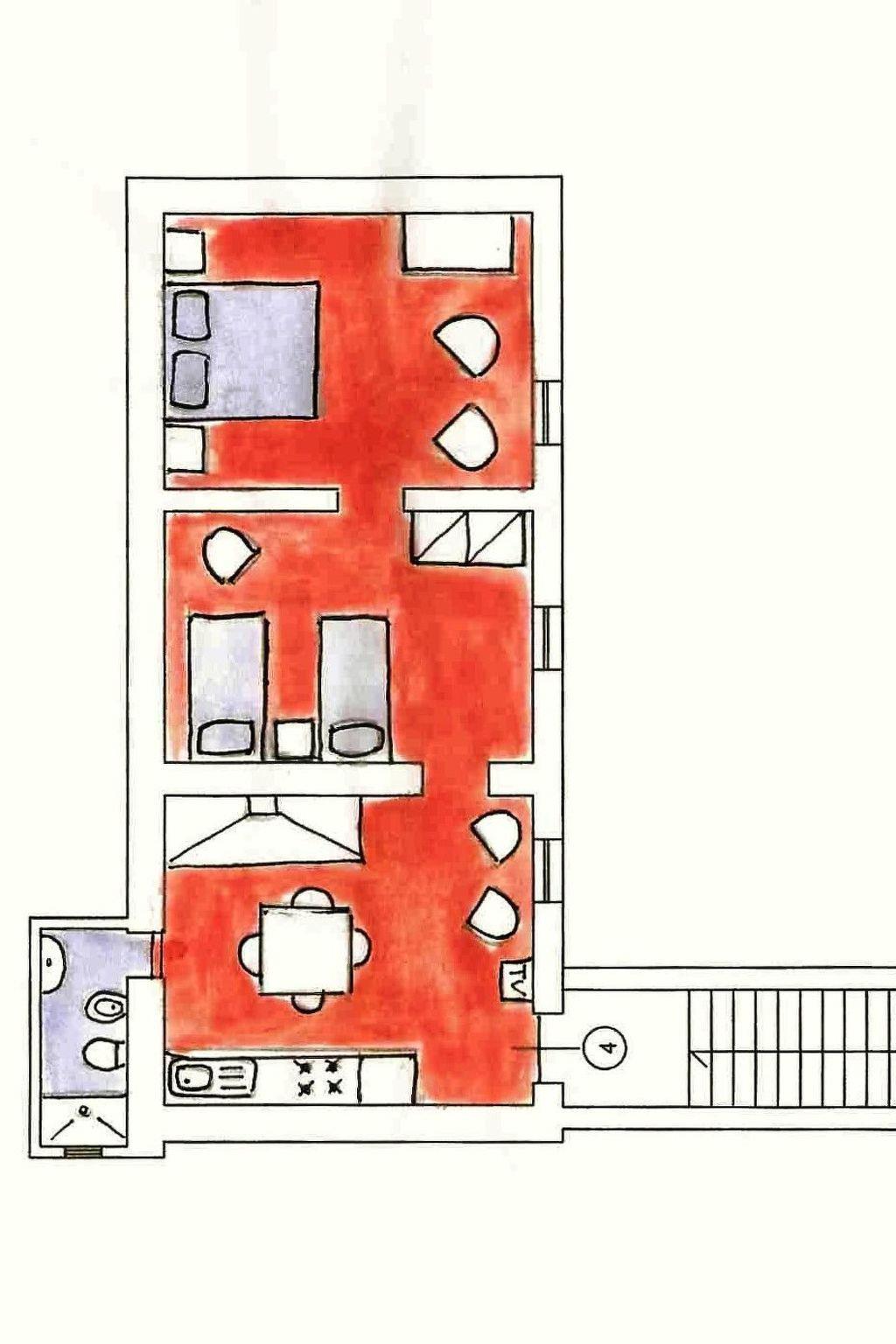 The house houses four flats and a swimming pool (9x5 m, open from June to September, with shower area).