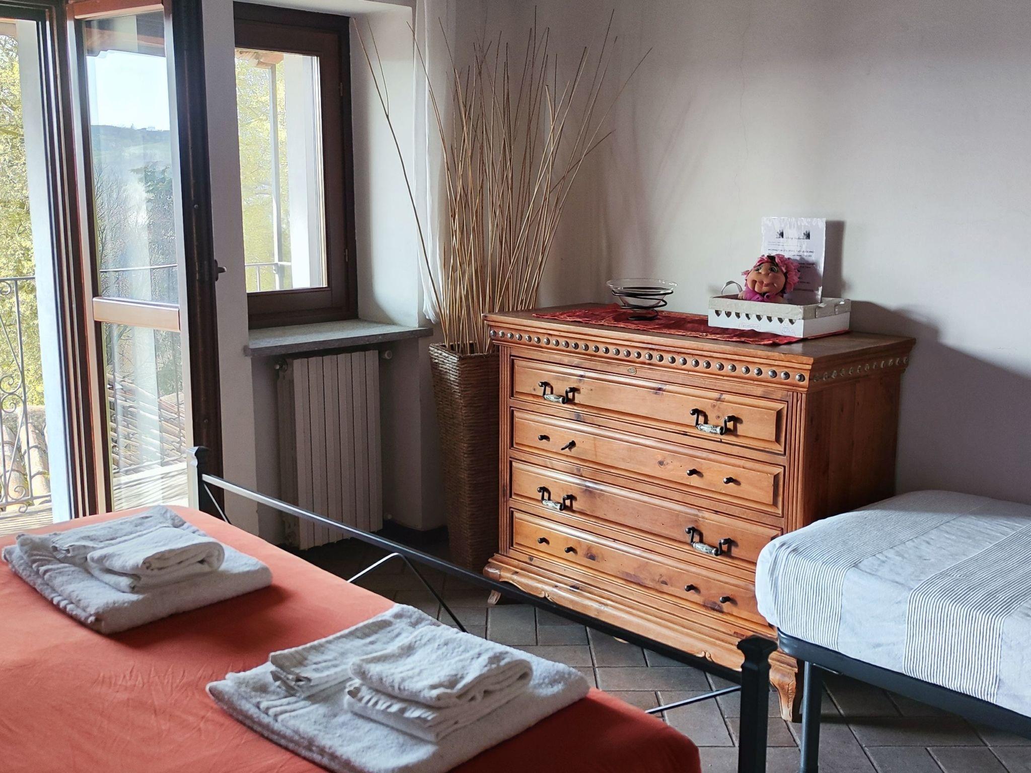 The top floor accommodation with high ceilings, wood has long bolcone with wonderful views of our hills.. Comprising double bedroom, large living room with equipped kitchen and sofa bed for 2 persons, large bathroom with shower. The apartment is equipped with satellite television, at the request decoder or DVD player. The furnishings are worth, windows with screens.