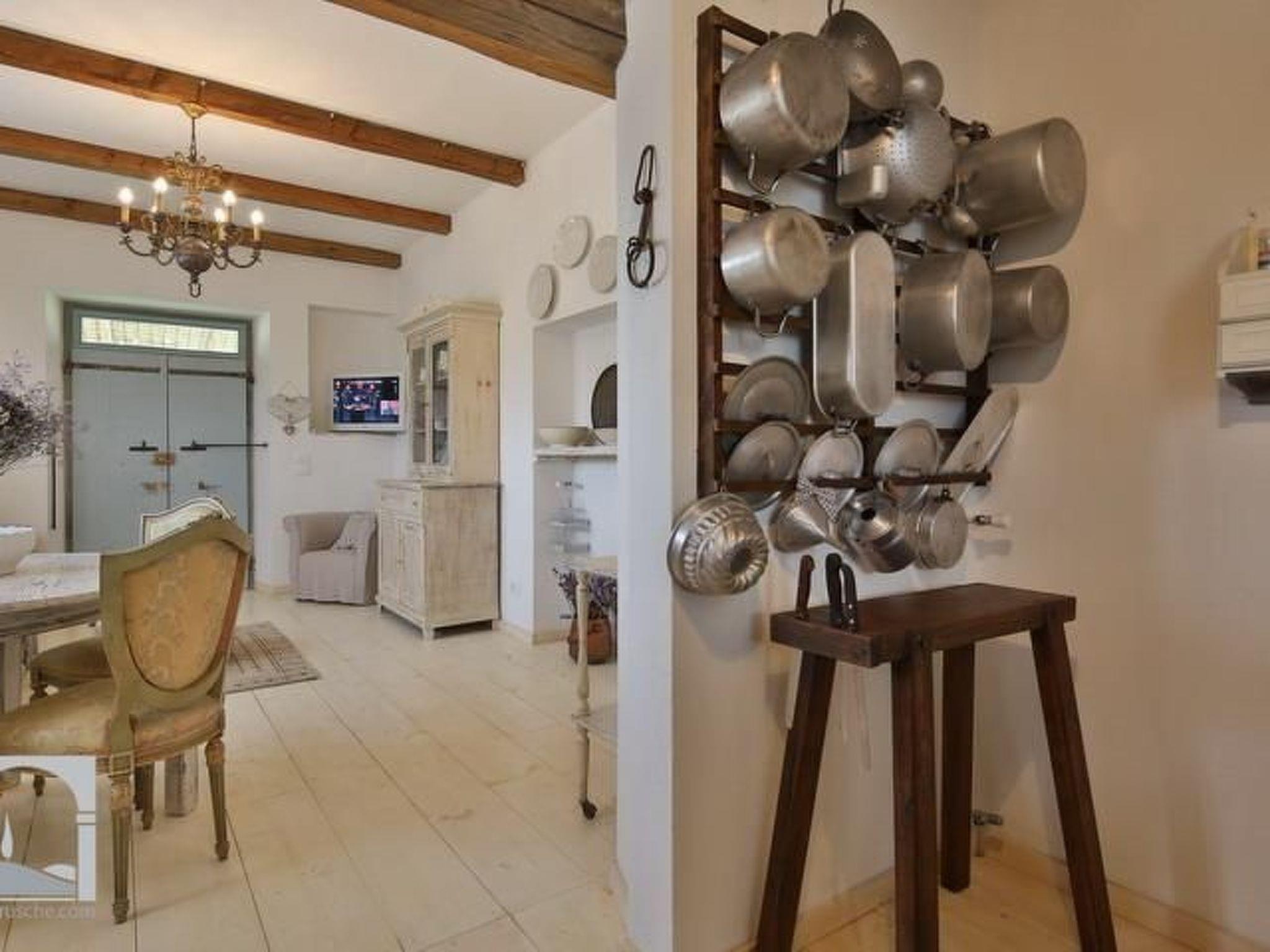 Immersed in the colours of the gentle Tuscan countryside, just 8 km from the town of Cortona, Il Nido is a beautiful cottage recently renovated and furnished in a refined, contemporary country-chic style. The skilful juxtaposition of neutral hues and the refined reference to poor art and country-house furnishings give the house a very special atmosphere: fresh, relaxing and familiar. The villa, which is all on the ground floor, consists of a large living area with dining table and relaxation area; a fully equipped kitchenette; a double bedroom with en suite bathroom with shower; a twin bedroom and a second bathroom with shower. The same attention to detail and comfort can be found outside, where the covered area is ideal for relaxing and eating comfortably outdoors while enjoying the characteristic profile of Cortona perched on the hill and the intense sunsets that this corner of Tuscany can offer. From the fully equipped swimming pool, your gaze sweeps freely to the horizon or lingers on the typical silhouette of old Tuscan farmhouses that bring back memories of the rhythms and flavours of times gone by. Just a few minutes from Camucia, Il Nido is ideally located for reaching the major centres of historical and cultural interest in Tuscany and Umbria.