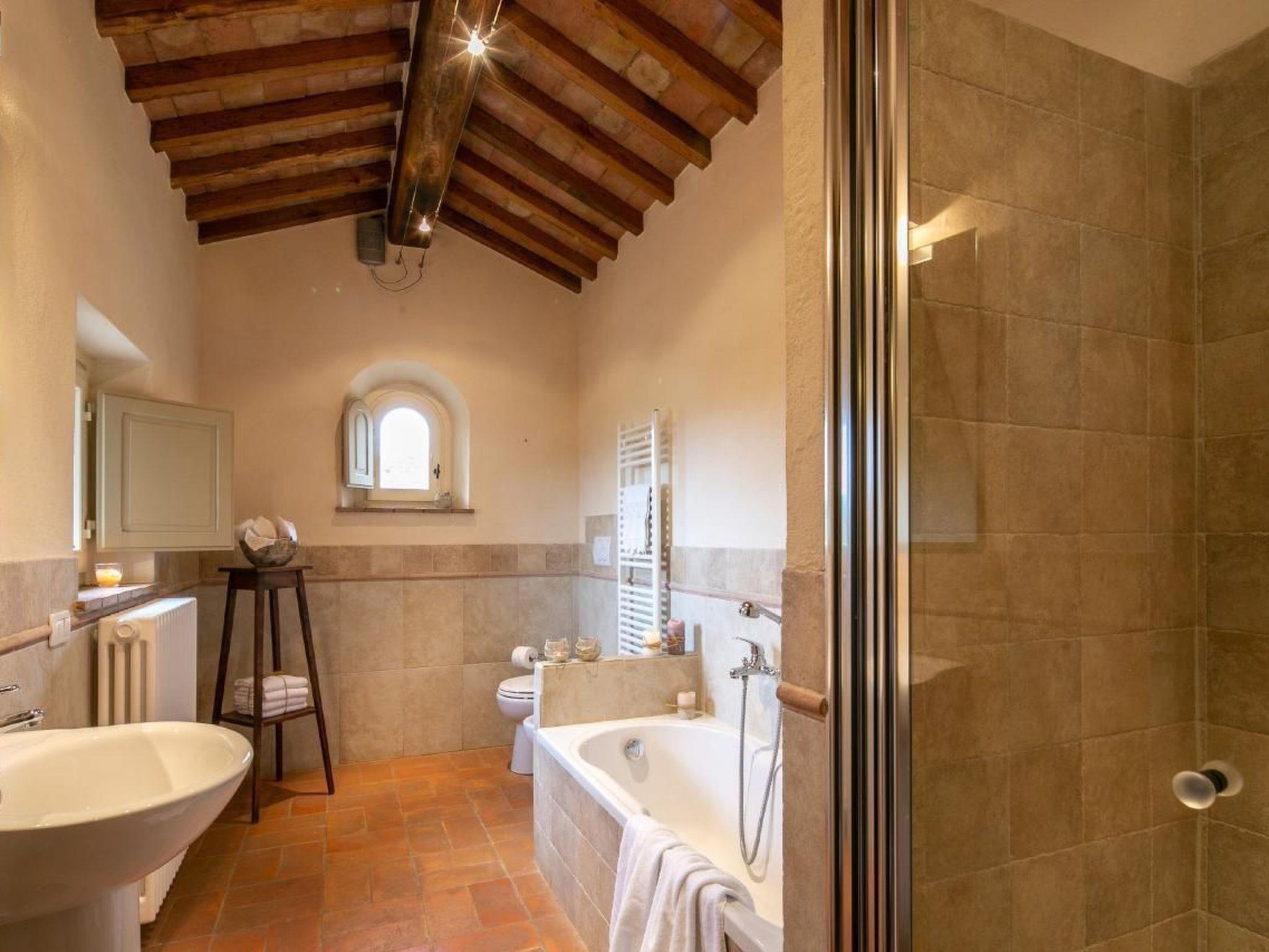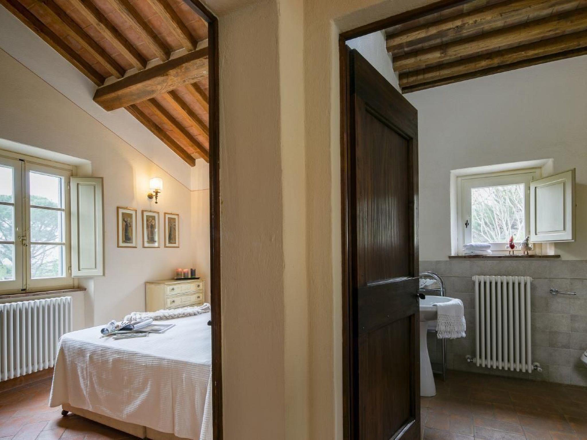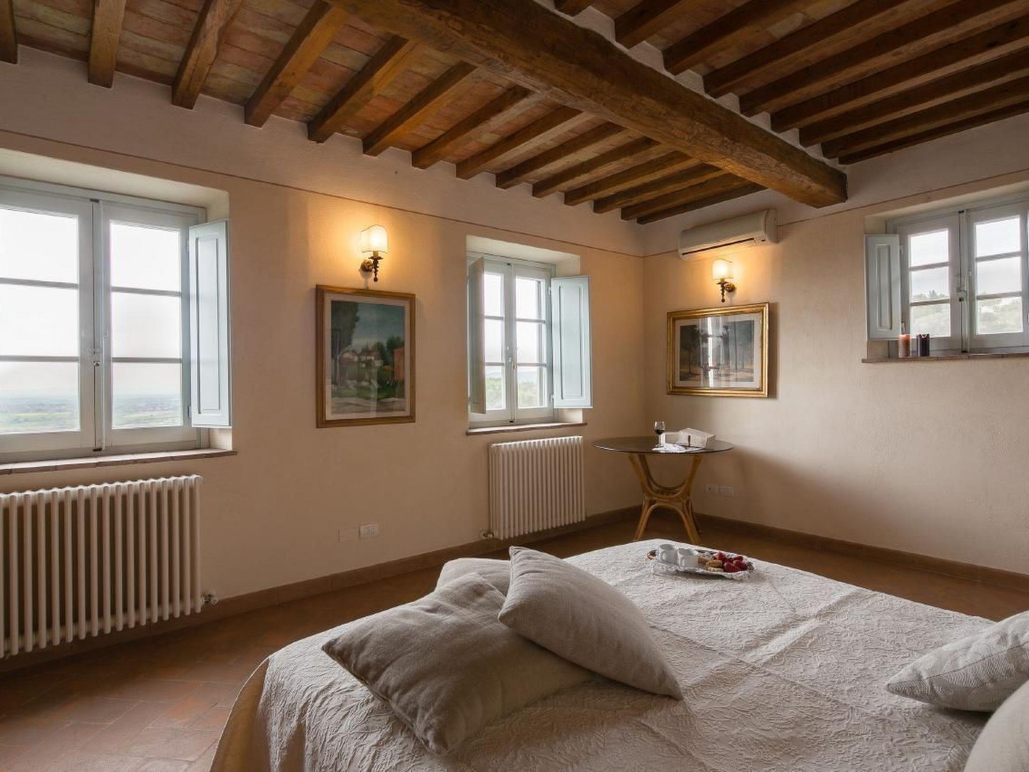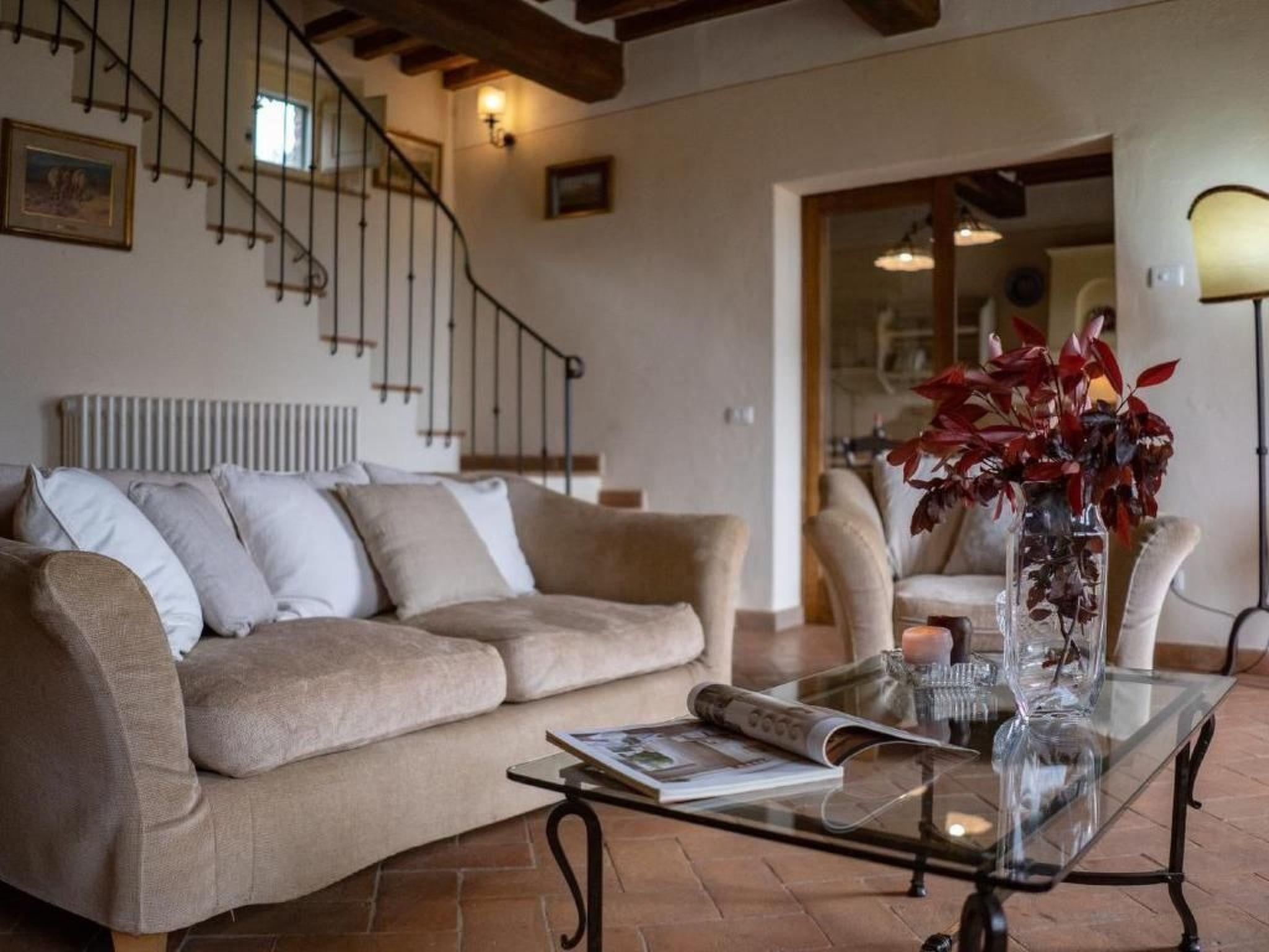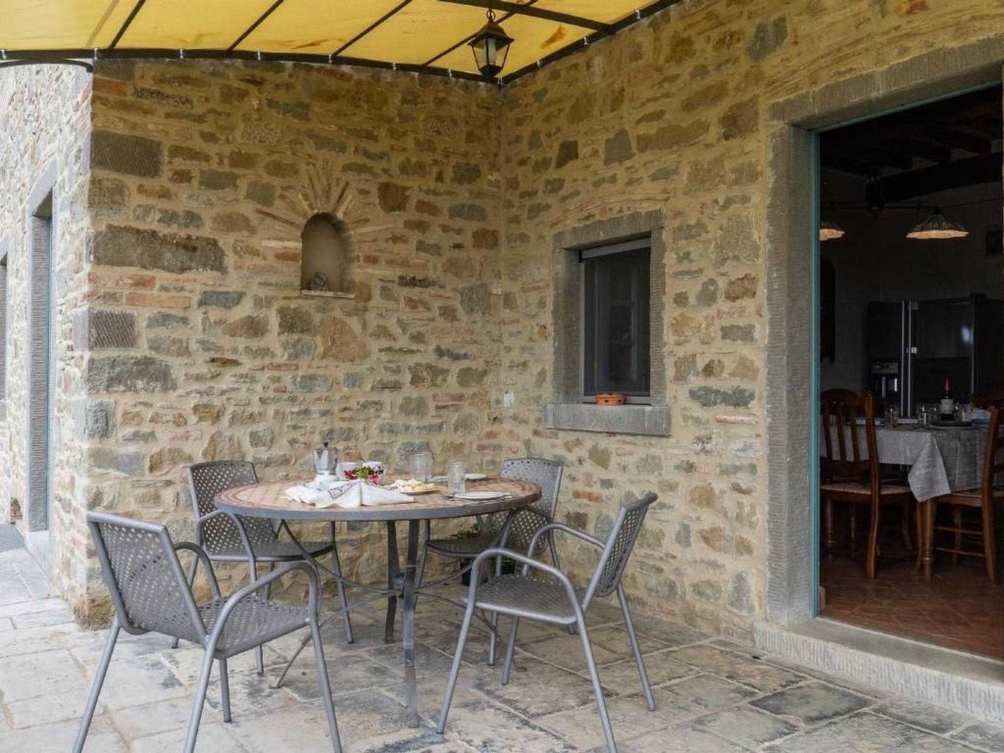 Villa La Pergola is a real stone house in Tuscany, very close to the Etruscan city of Cortona.La Pergola is located in a cosy village consisting of two other villas each with its own pool. The terrace, furnished with elegant garden furniture, offers a wonderful view of the well-kept garden with pool and private parking.From the parking lot you enter the large and bright living room with comfortable sofas and fully equipped and modern kitchen. On the ground floor there is also a bedroom with a double bed and private bathroom. A beautiful staircase with wrought iron handrail leads to the first floor, where 2 double rooms, all with ensuite bathrooms, are available for guests.The attic has a large bedroom with private bathroom. All windows offer spectacular views of the Chiana Valley. All windows are equipped with mosquito nets and all rooms have air conditioning.From the living room, through an internal staircase, you enter the tavern. Up to 2 beds can be added on request, ideal for children. The tavern has its own bathroom and a small kitchenette.Outside there is a wood stove, barbecue and private pool for guests to use. A beautiful wrought iron pergola, covered with fragrant jasmine, is the backdrop for this beautiful country house. Cortona is only 5 km away and only 2 km from the villa are the large supermarkets and other basic shops. Ideal for families or couples.Short description 1Number of kitchens : 1SurroundingNearby sports facilities : Bike tours, Hunting facilities, Mountainbiking, Riding possibilities, Sailing, TennisRental Facilities : Bicycle rental serviceGarden and outdoorGarden facilities : Garden furniture provided, GrillOn-site leisure facilities : Outdoor swimming pool exclusive use, Swimming pool