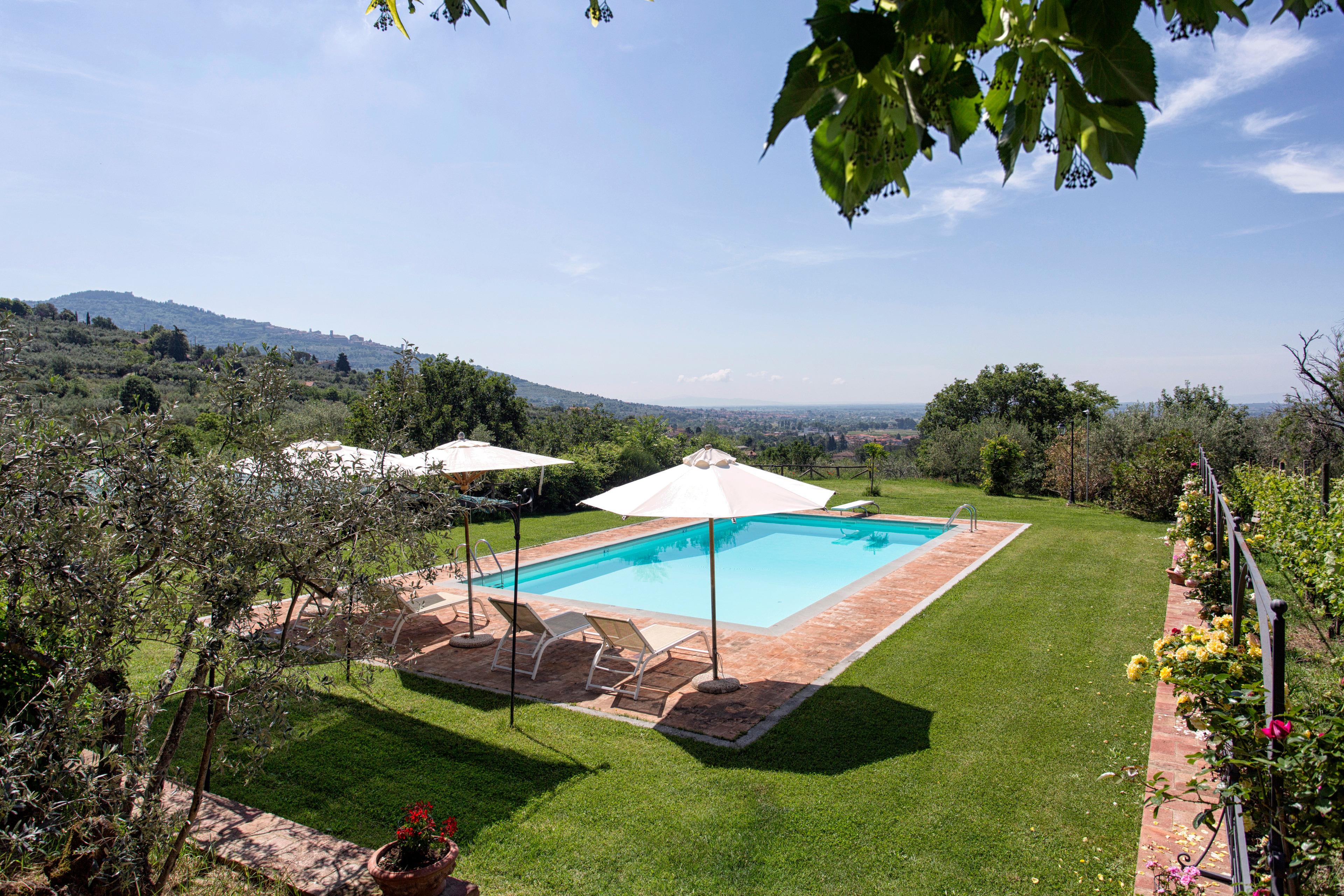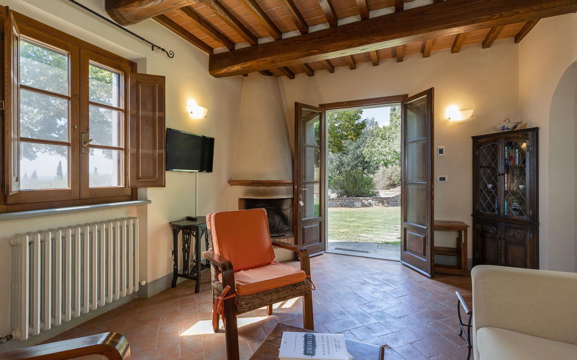 Vor der Hauptvilla befindet sich das Landhaus mit der dritten Wohnung, die ebenfalls im typisch toskanischen Stil eingerichtet ist und über einen eigenen Eingang und Garten verfügt.