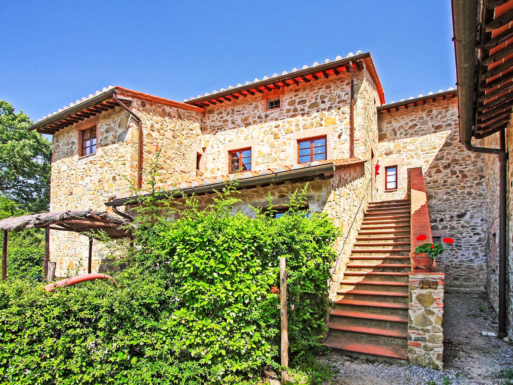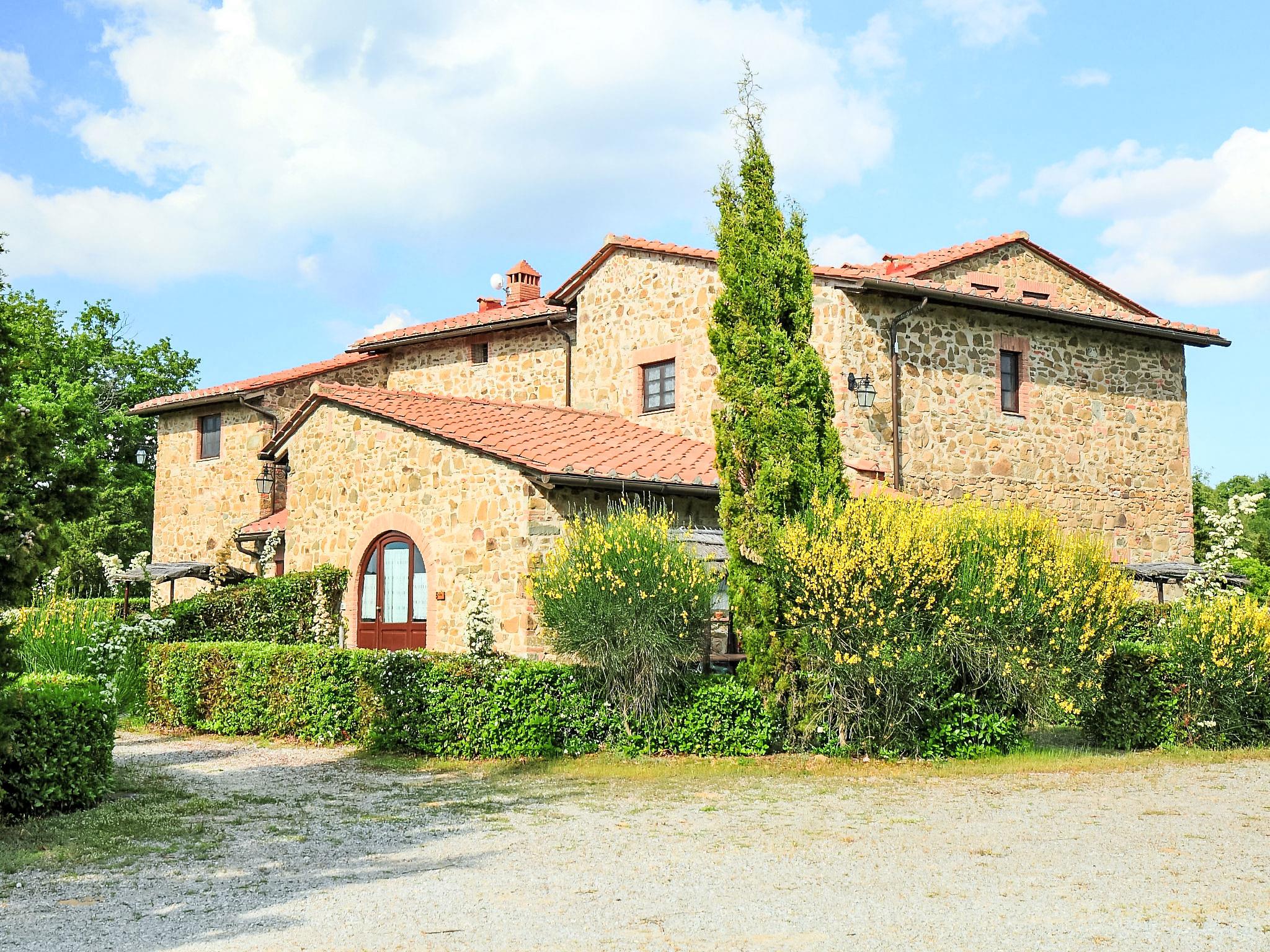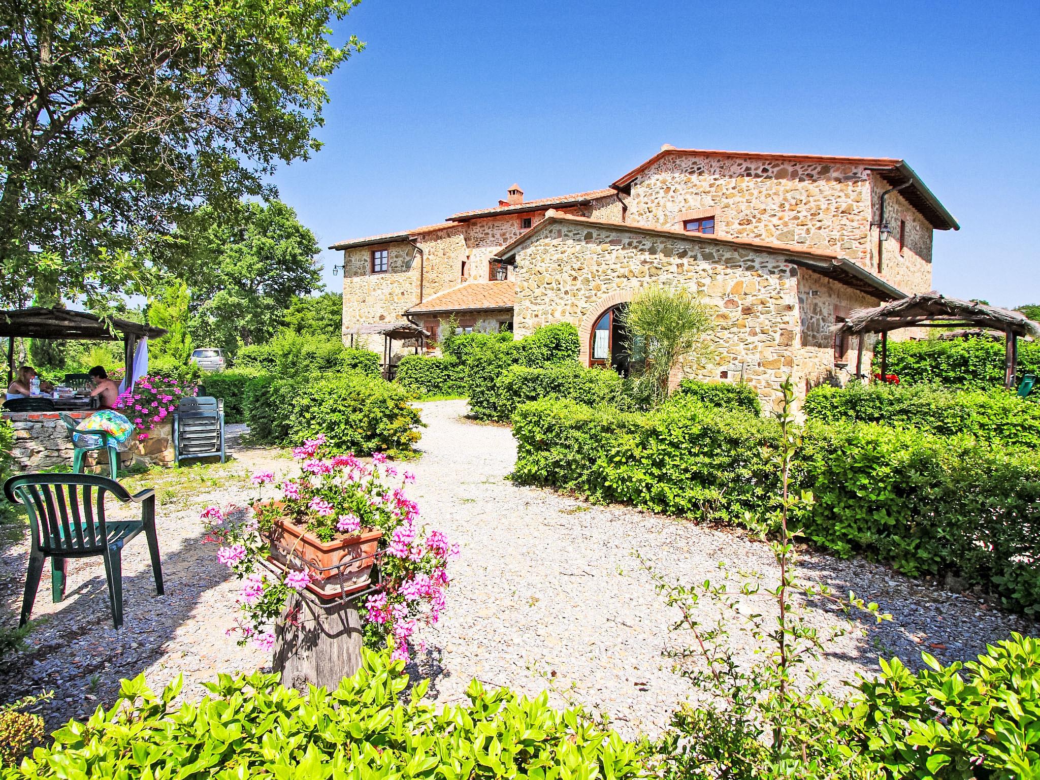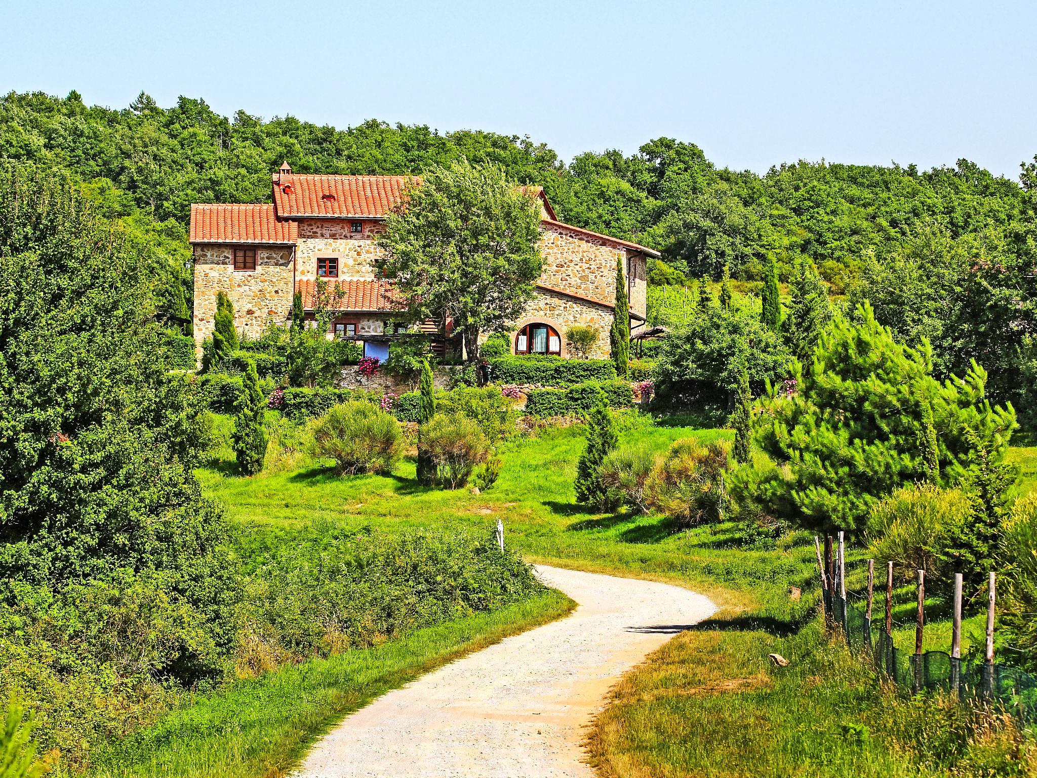 Carefully renovated "Podere La Massa" consists of a detached house and 8 apartments. It is surrounded by olive groves, fields and it enjoys a wonderful view over the Chianti hills. It is a very quiet position, ideal for nature lovers to enjoy walks or bicycle runs in the surroundings area. Each apartment has its private outdoor area fenced by hedges. A few kilometres away there are the Castello di Brolio (18 km), Meleto (14 km), Vertine (12 km) and Badia a Coltibuono and Spaltenna. Volley ball court and mini-football pitch. Children playground. Rustic, simple large working farm "La Massa". 10 km from the centre of Gaiole in Chianti, 13.5 km from the centre of Radda in Chianti, 43 km from the centre of Siena, in a secluded, quiet, elevated position, in the countryside. For shared use: natural garden 2 ha, swimming pool (14 x 7 m, depth 100 - 250 cm, seasonal availability: 03.May. - 27.Sep.). Outdoor shower, volleyball court, garden furniture, children's playground (slide). In the complex: WiFi, central heating system, washing machine (for shared use), heating to be paid on the spot, heating available only from 01.Nov. - 07.Apr.. Bread roll service on request. Motor access to the house (4 km via unmade road). Parking at the house. Shop 5 km, restaurant 5 km, bus stop 7.5 km, railway station "Montevarchi" 10 km, thermal baths "Rapolano Terme" 45 km. Nearby attractions: Castelnuovo Berardenga 19 km, Castellina in Chianti 24 km, Greve in Chianti, San Donato 30 km, Badia a Passignano 34 km, San Gimignano 52 km, Firenze 65 km. Please note: car recommended. Local sale of farm products.