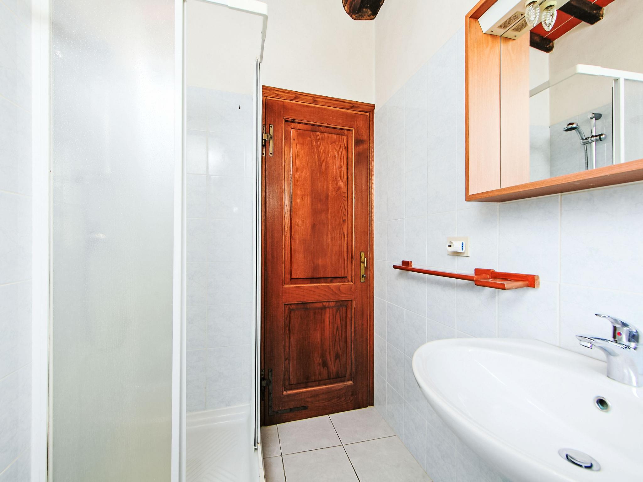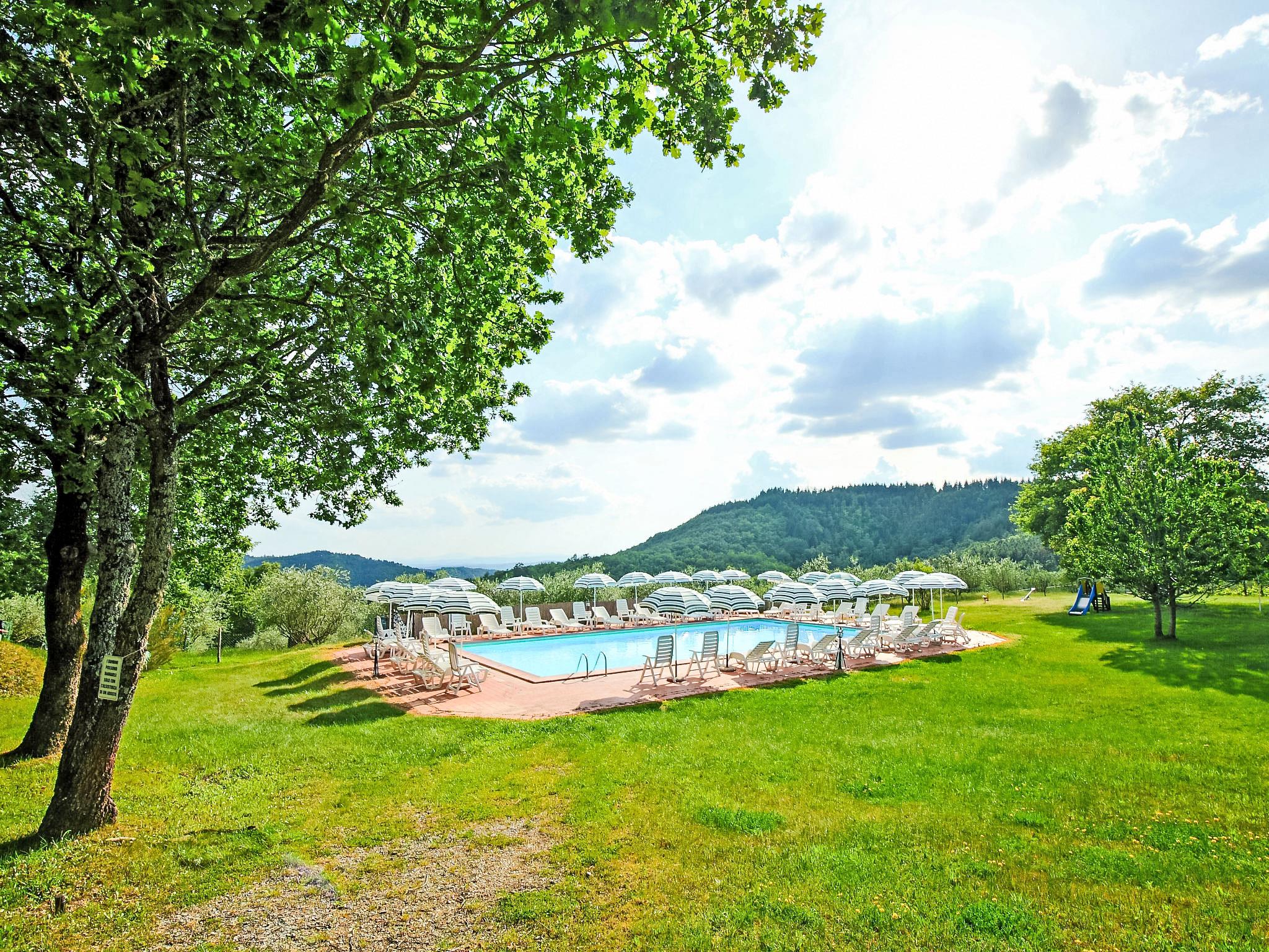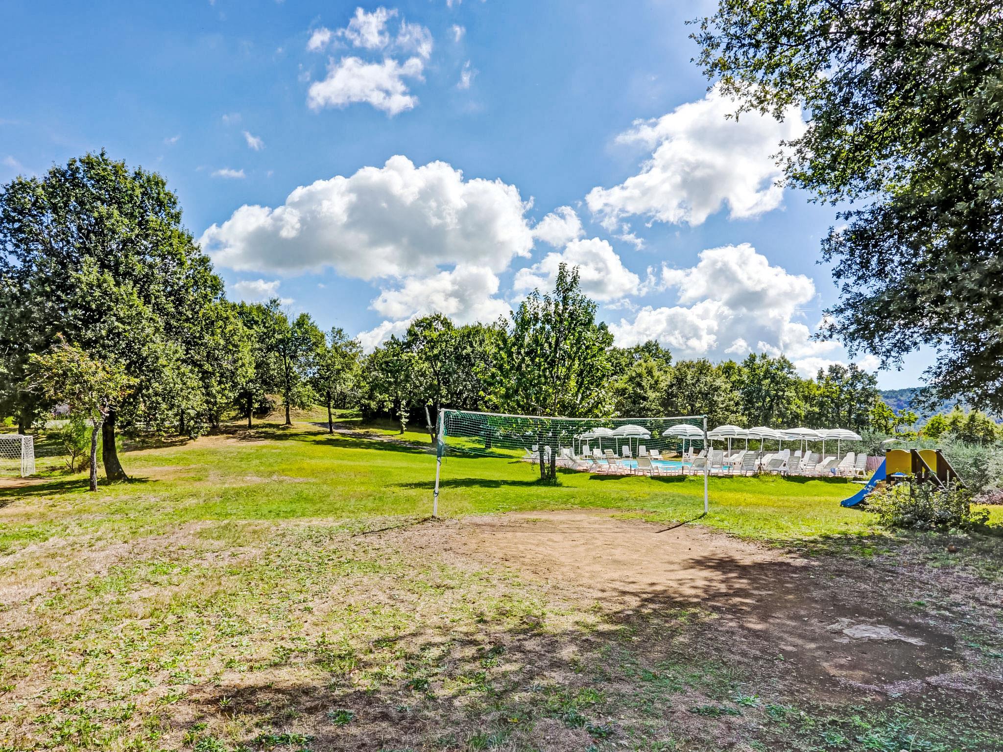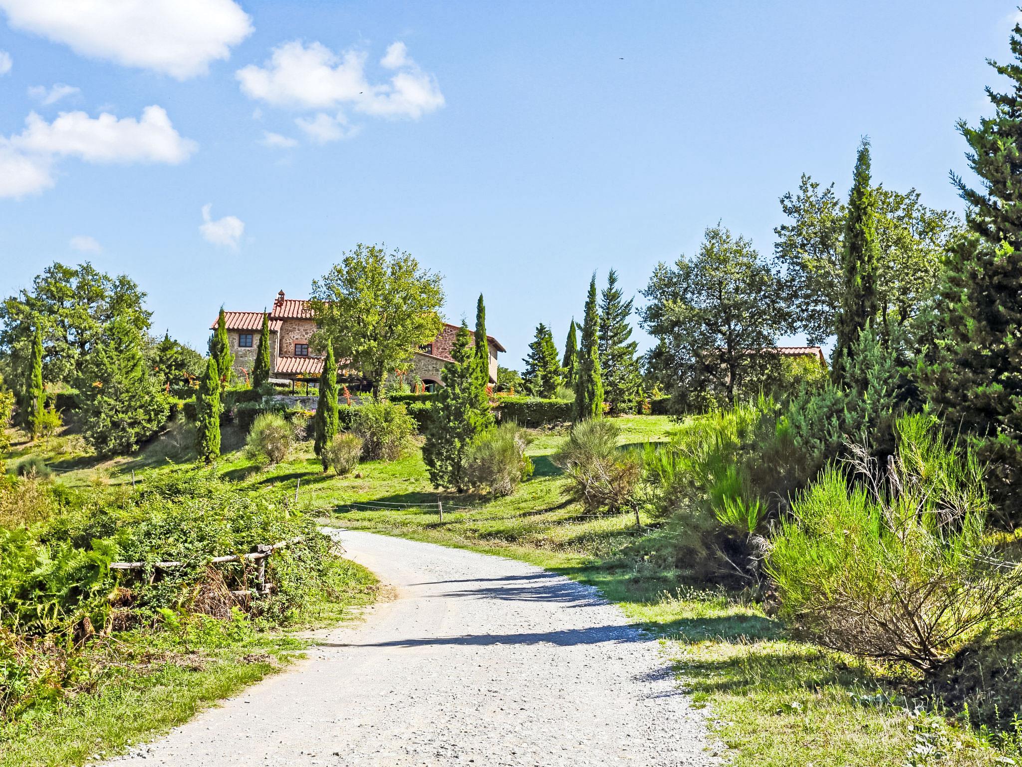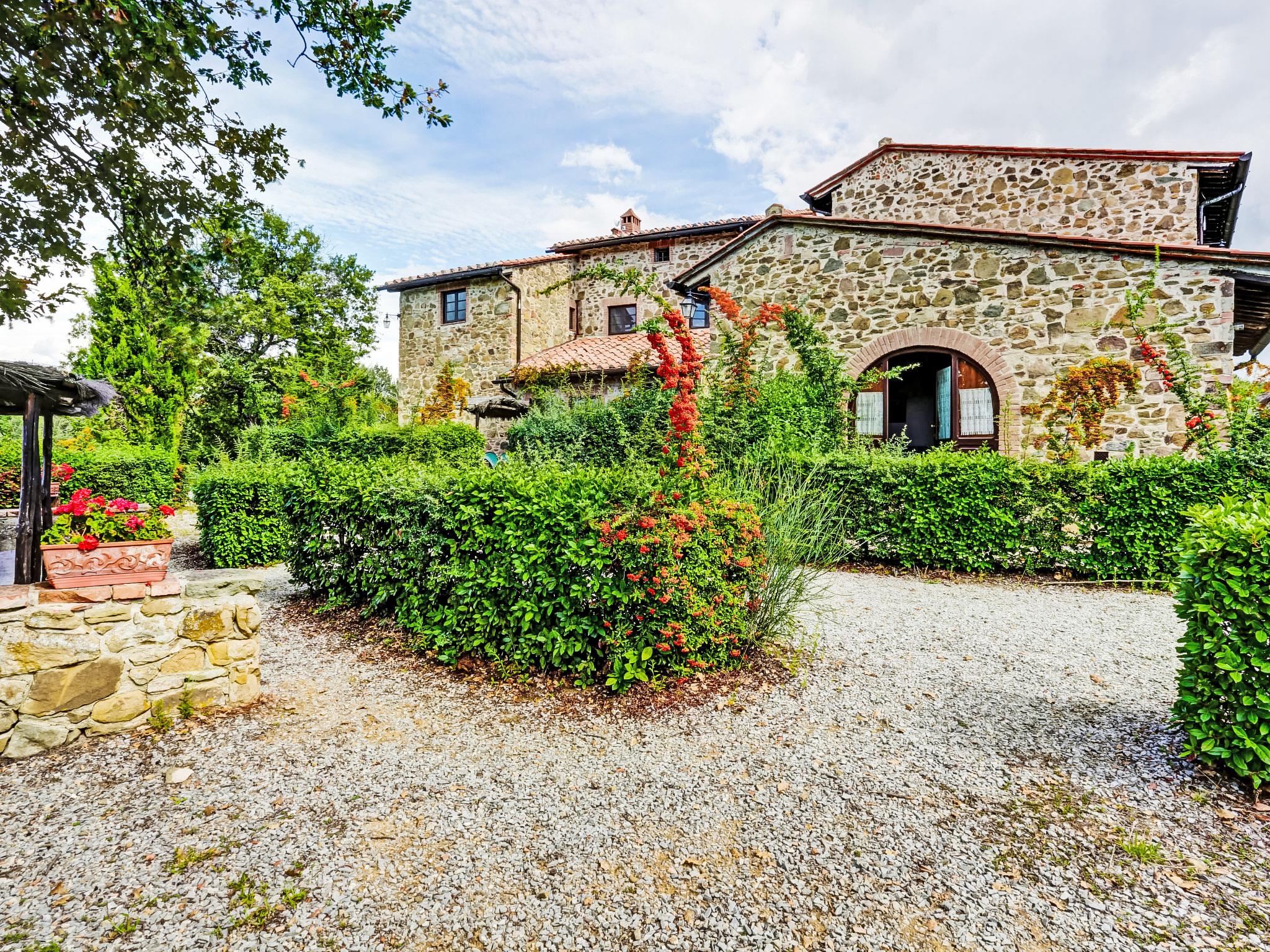 Carefully renovated "Podere La Massa" consists of a detached house and 8 apartments. It is surrounded by olive groves, fields and it enjoys a wonderful view over the Chianti hills. It is a very quiet position, ideal for nature lovers to enjoy walks or bicycle runs in the surroundings area. Each apartment has its private outdoor area fenced by hedges. A few kilometres away there are the Castello di Brolio (18 km), Meleto (14 km), Vertine (12 km) and Badia a Coltibuono and Spaltenna. Volley ball court and mini-football pitch. Children playground. Rustic, simple large working farm "La Massa". 10 km from the centre of Gaiole in Chianti, 13.5 km from the centre of Radda in Chianti, 43 km from the centre of Siena, in a secluded, quiet, elevated position, in the countryside. For shared use: natural garden 2 ha, swimming pool (14 x 7 m, depth 100 - 250 cm, seasonal availability: 03.May. - 27.Sep.). Outdoor shower, volleyball court, garden furniture, children's playground (slide). In the complex: WiFi, central heating system, washing machine (for shared use), heating to be paid on the spot, heating available only from 01.Nov. - 07.Apr.. Bread roll service on request. Motor access to the house (4 km via unmade road). Parking at the house. Shop 5 km, restaurant 5 km, bus stop 7.5 km, railway station "Montevarchi" 10 km, thermal baths "Rapolano Terme" 45 km. Nearby attractions: Castelnuovo Berardenga 19 km, Castellina in Chianti 24 km, Greve in Chianti, San Donato 30 km, Badia a Passignano 34 km, San Gimignano 52 km, Firenze 65 km. Please note: car recommended. Local sale of farm products.
