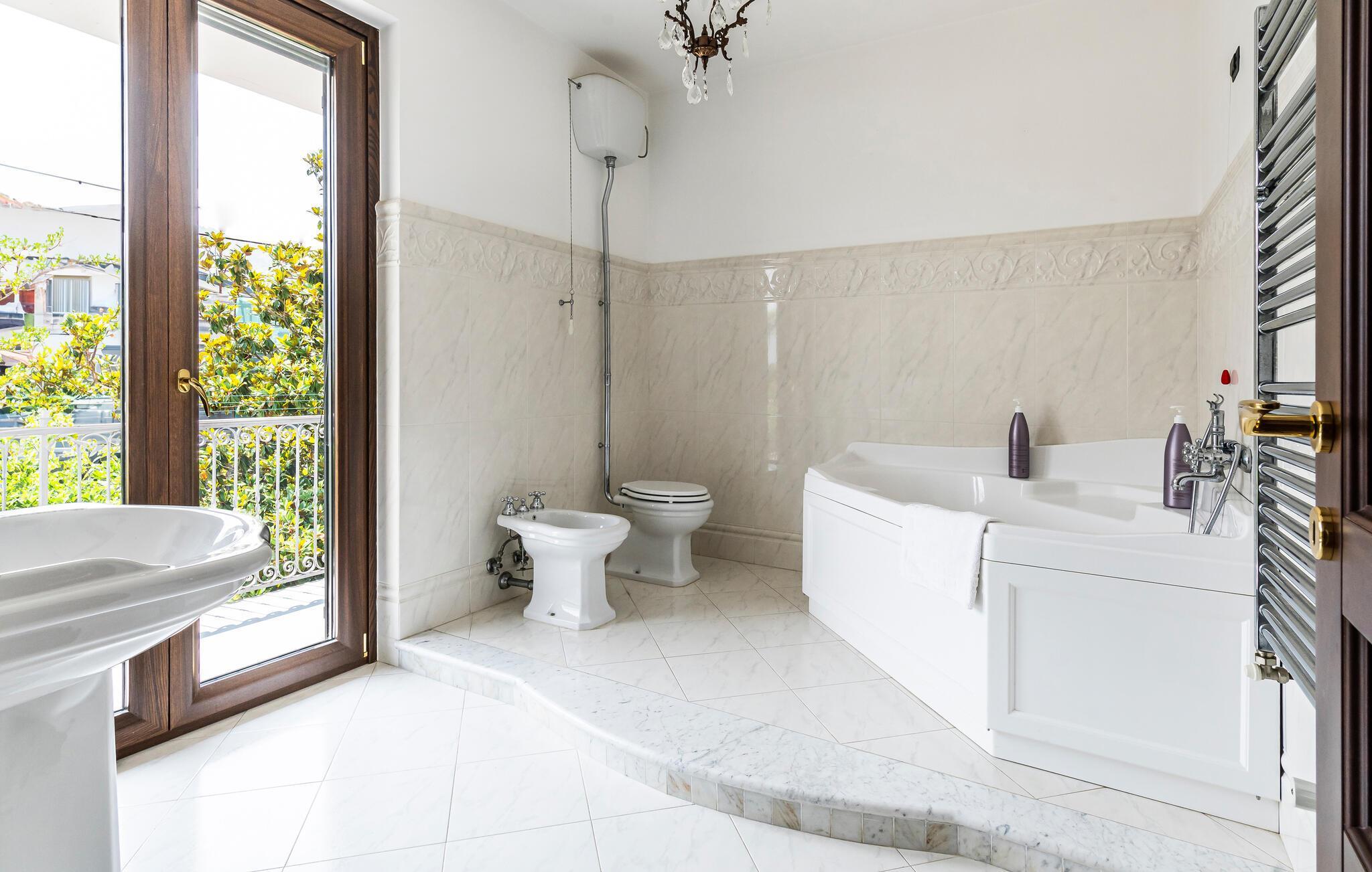 Badezimmer (nr. 4) - WC. Warmes und kaltes Wasser. Badewanne