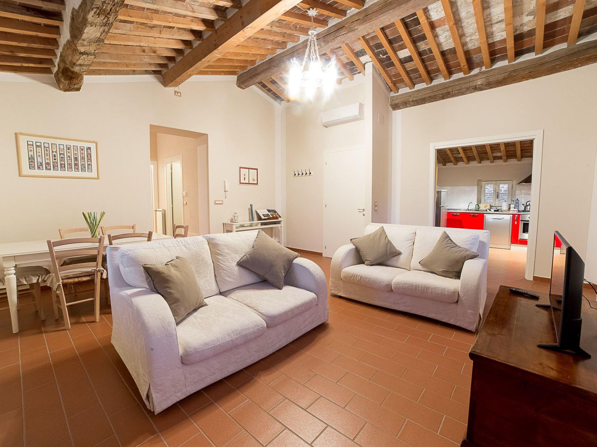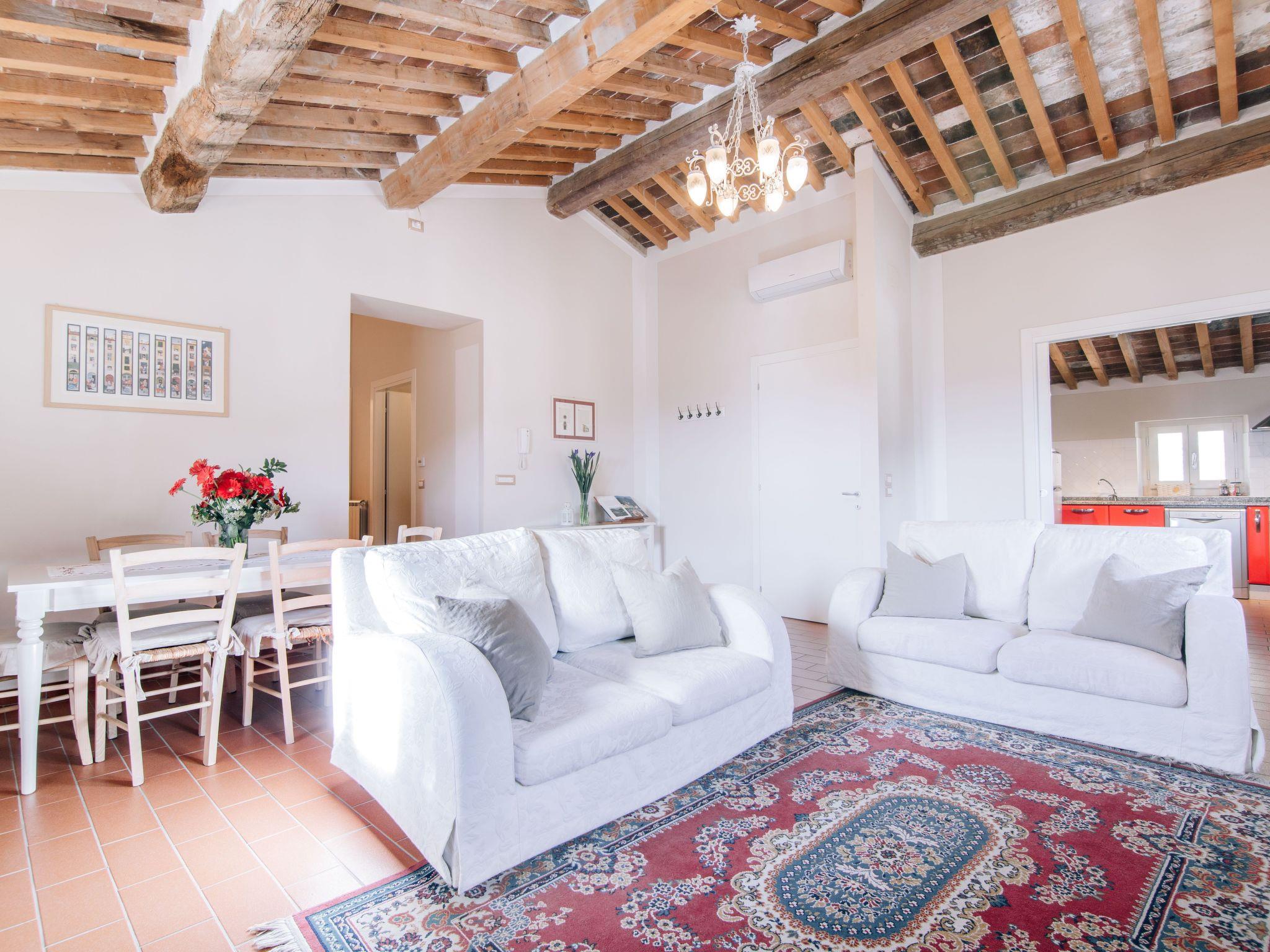 All'interior, you will be greeted by a tastefully furnished living room with two comfortable sofas, a dining table for six and a flat-screen TV with satellite. The kitchen is fully equipped with modern appliances, such as a gas cooker, oven, microwave, electric coffee maker, filter coffee maker, dishwasher and a refrigerator with freezer. Furthermore, for your convenience, the'appartamento dispone di una lavatrice, un lavandino, e un ferro da stiro, garantendo così un soggiorno confortevole.