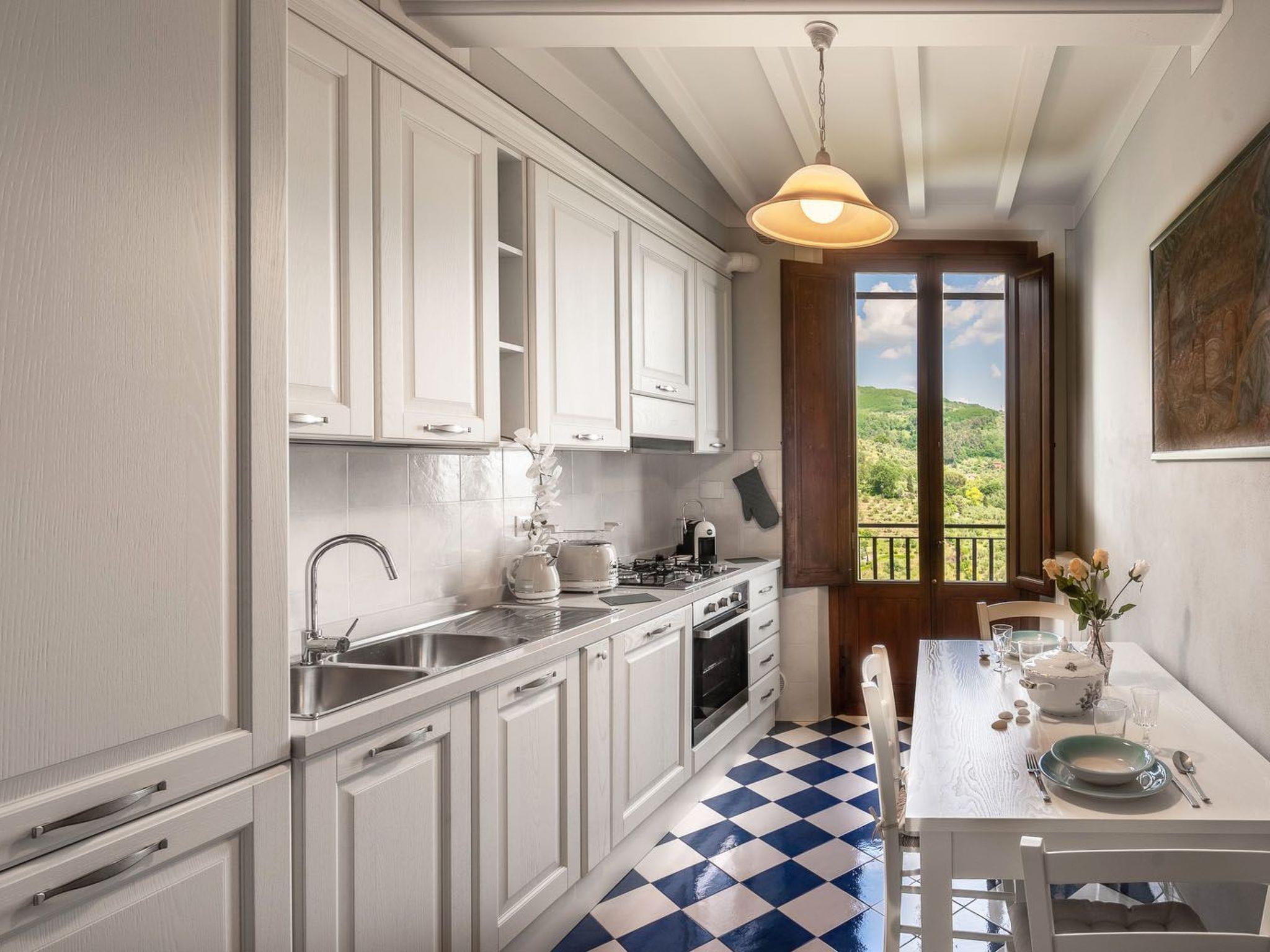 This flat with panoramic views is located in the medieval centre of Massa in the municipality of Massa e Cozzile, 4 km from the spa town of Montecatini. Completely restored in early 2023 La Volata apt can accommodate up to 5 people.