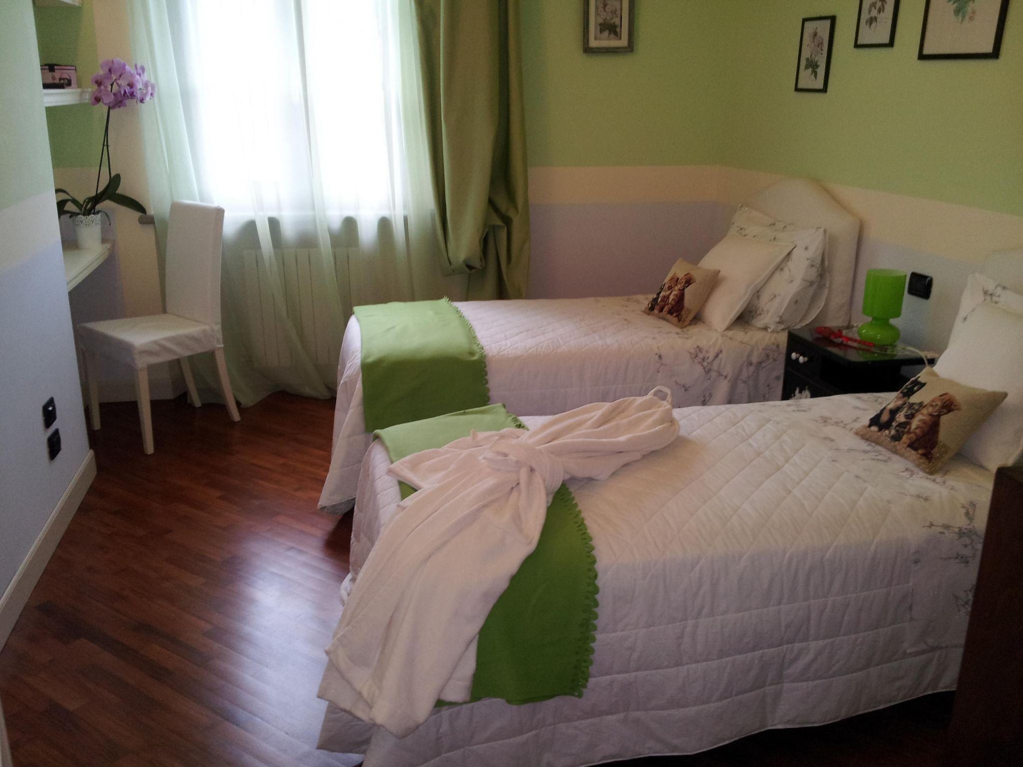 The flat, equipped with colour TV, is composed on the ground floor of a living room-kitchen complete with all accessories, and offers the following electrical appliances: electric oven, hob, fridge with freezer, washing machine. On the first floor there is a bathroom equipped with washbasin and toilet with shower cabin, and two bedrooms, one double and one spacious twin. Wi-Fi Internet access is free of charge. The consumption of electricity for the use of the jacuzzi is given by the reading of the autonomous meter and to be paid on site. During the summer the cost of electricity for the flat's air conditioners is given by the autonomous meter reading payable locally. During winter the gas consumption for heating is quantified by the meter reading payable locally. Bed linen is changed weekly and towels every other day. Presence of carbon monoxide and fire detector.