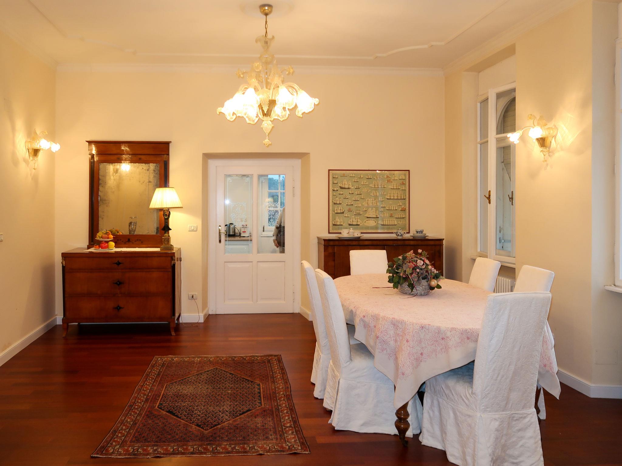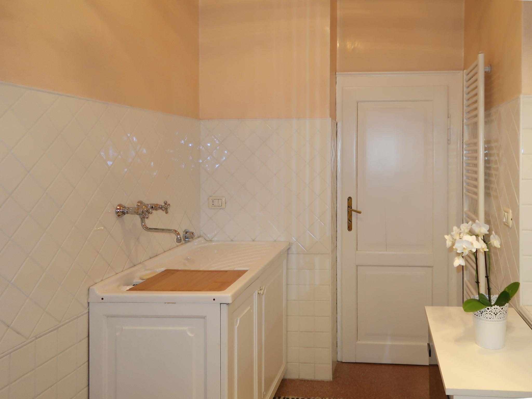 4-room apartment 140 m2 on 2 levels, on the upper ground floor. Bright, tasteful and stylish furnishings: living/dining room with dining table and satellite TV. 1 small room with 1 bed and 1 pull-out bed. 2 double bedrooms. Kitchen (oven, dishwasher, Gas stove, 4 gas rings, toaster, kettle, freezer, electric coffee machine) with dining table. Bath/bidet/WC, shower/bidet/WC. Oil heating. Top floor: living room with panoramic window. Parquet floors, natural stone floors. Barbecue (portable), deck chairs (6). Facilities: washing machine, iron, children's high chair, baby cot for up to 2 year olds (extra). Internet (WiFi, free). Please note: non-smokers only. No mandatory extra charges to be paid on-site except for local tax. Bedlinen, towels, final cleaning and all energy costs are included. IT022139B4R3UD2JR8