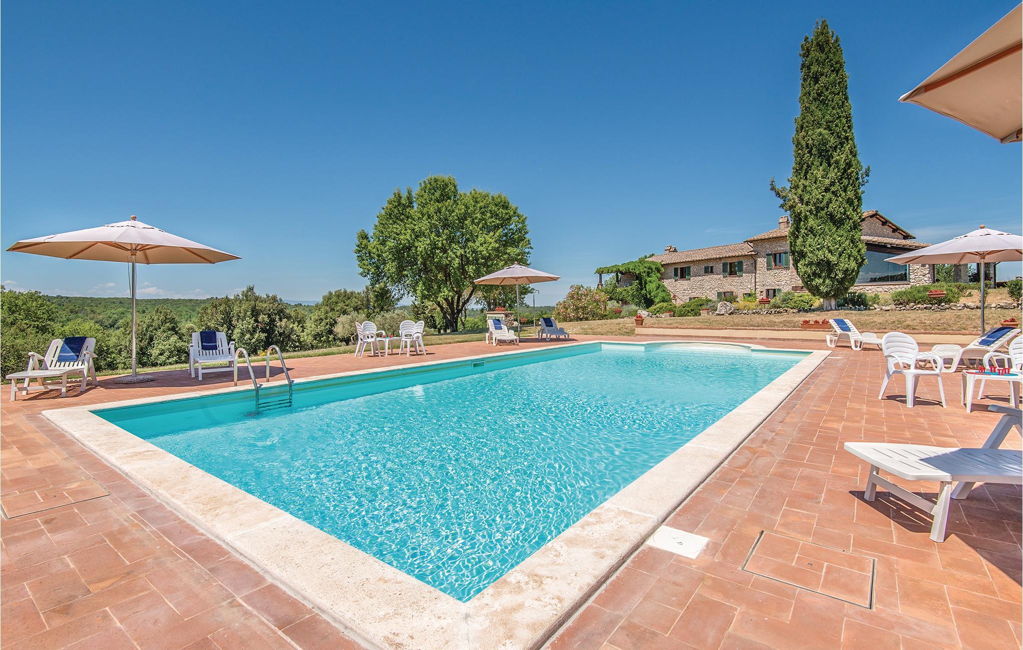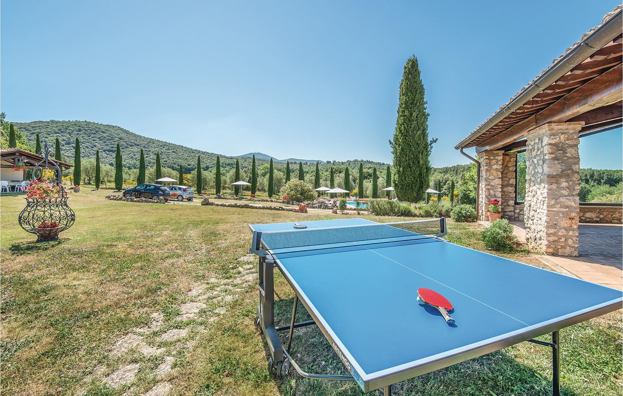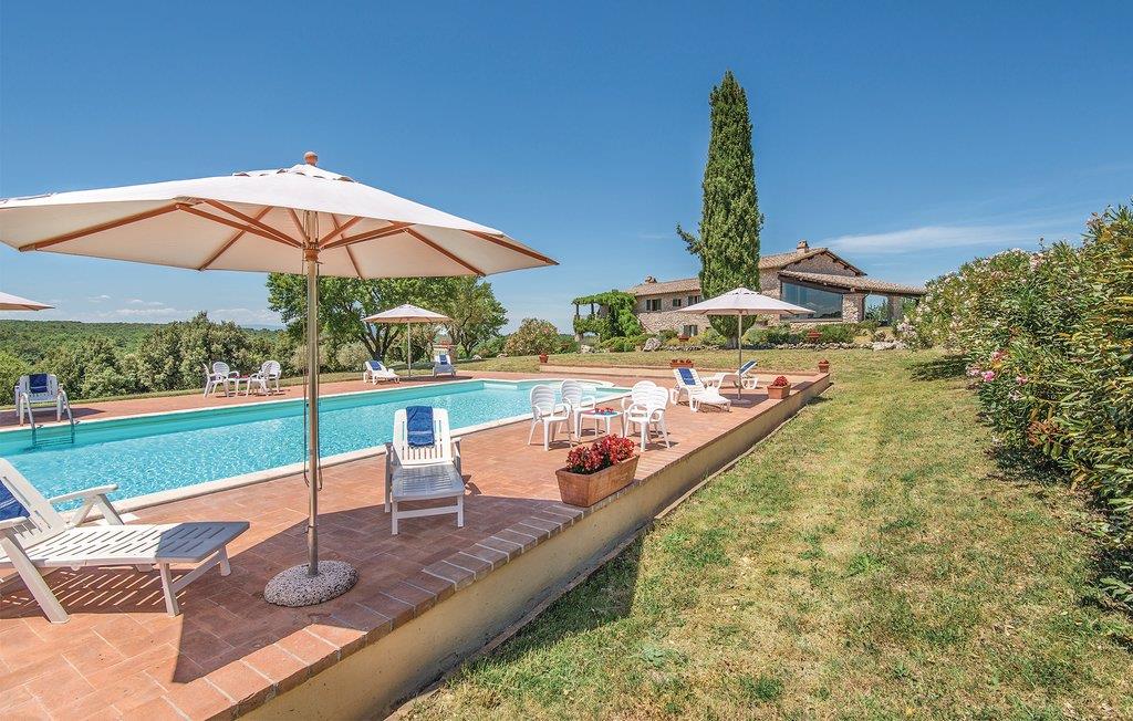 Dieses wunderschöne Ferienhaus mit Swimmingpool, aufgeteilt in vier Apartments mit separaten Eingängen, liegt wenige Kilometer von der antiken römischen Stadt Narni (8 km) entfernt, in einer Landschaft von besonderer Schönheit und in einem Kontext von Ruhe und Privatsphäre. Speisen können Sie im Freien und dabei die große Veranda neben dem Grillbereich und dem Backsteinofen nutzen, oder im großen Raum mit Wohnecke mit SMART-TV und Essbereich neben der Küche, die mit professionellen Geräten ausgestattet ist, ideal für die Zubereitung von kulinarischen Spezialitäten auch für große Gruppen. Der Pool und der Park rund um das Haus sind der Pluspunkt dieses faszinierenden Hauses. Dank seiner Dimensionen ist dieses Haus der ideale Ort, um z.B. einen Jahrestag in der Familie zu feiern oder einfach nur einen Urlaub in totaler Entspannung zu genießen. Zu Ihrer Verfügung ein Fußballplatz, Tischtennis, eine wunderbar gepflegte Rasenfläche rund um das Haus und unbegrenztes Wi-Fi im Gemeinschaftsraum. Auf Anfrage können auf den Doppelsofas in den Wohnzimmern zusätzlich 8 Betten zur Verfügung gestellt werdenIn unmittelbarer Nähe des Hauses gibt es Wege für ruhige Spaziergänge oder Mountainbike-Touren. Im Umkreis von 5 km finden Sie Tennisplätze und einen Reitstall. Nur 17 km entfernt erwartet Sie der berühmte Marmore-Wasserfall. Ausflugsziele: Rom (70 km) ist in 40 Minuten mit dem Zug zu erreichen. Des weiteren einen Besuch wert: Spoleto 40 km, Todi 50 km, der Lago di Bolsena 65 km, Assisi 70 km und Perugia 90 km. Pool- und Gartenpflege durch den Hausmeister, Tage und Uhrzeiten mit den Gästen bei Ankunft zu vereinbaren. Nicht asphaltierte Zufahrtsstraße (1 km).