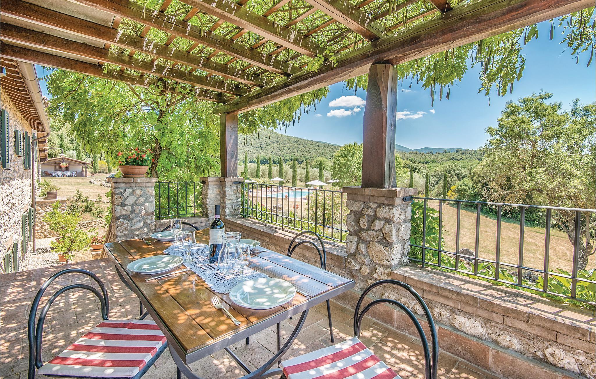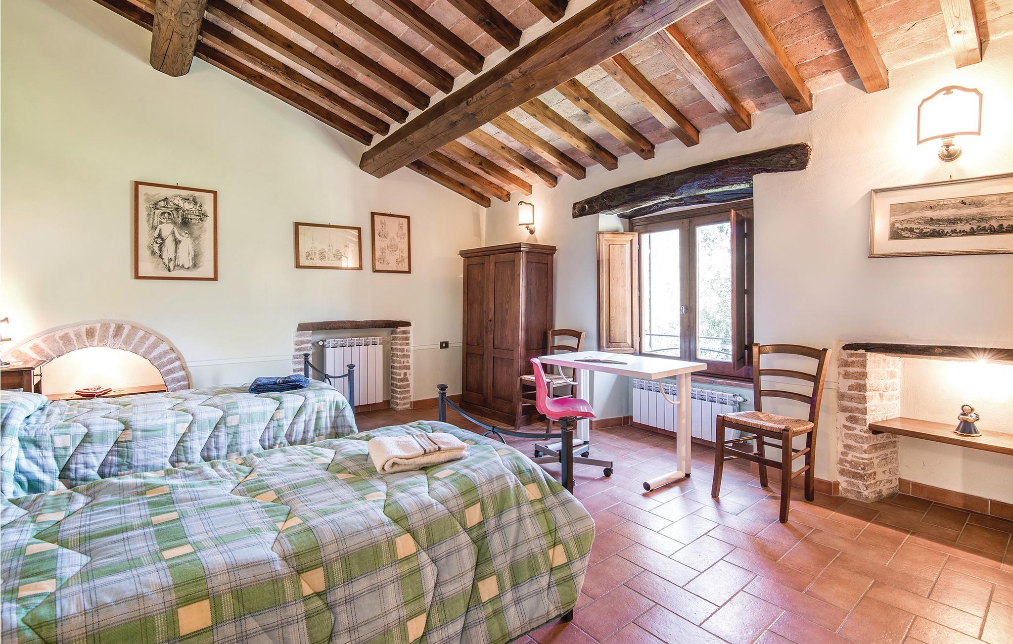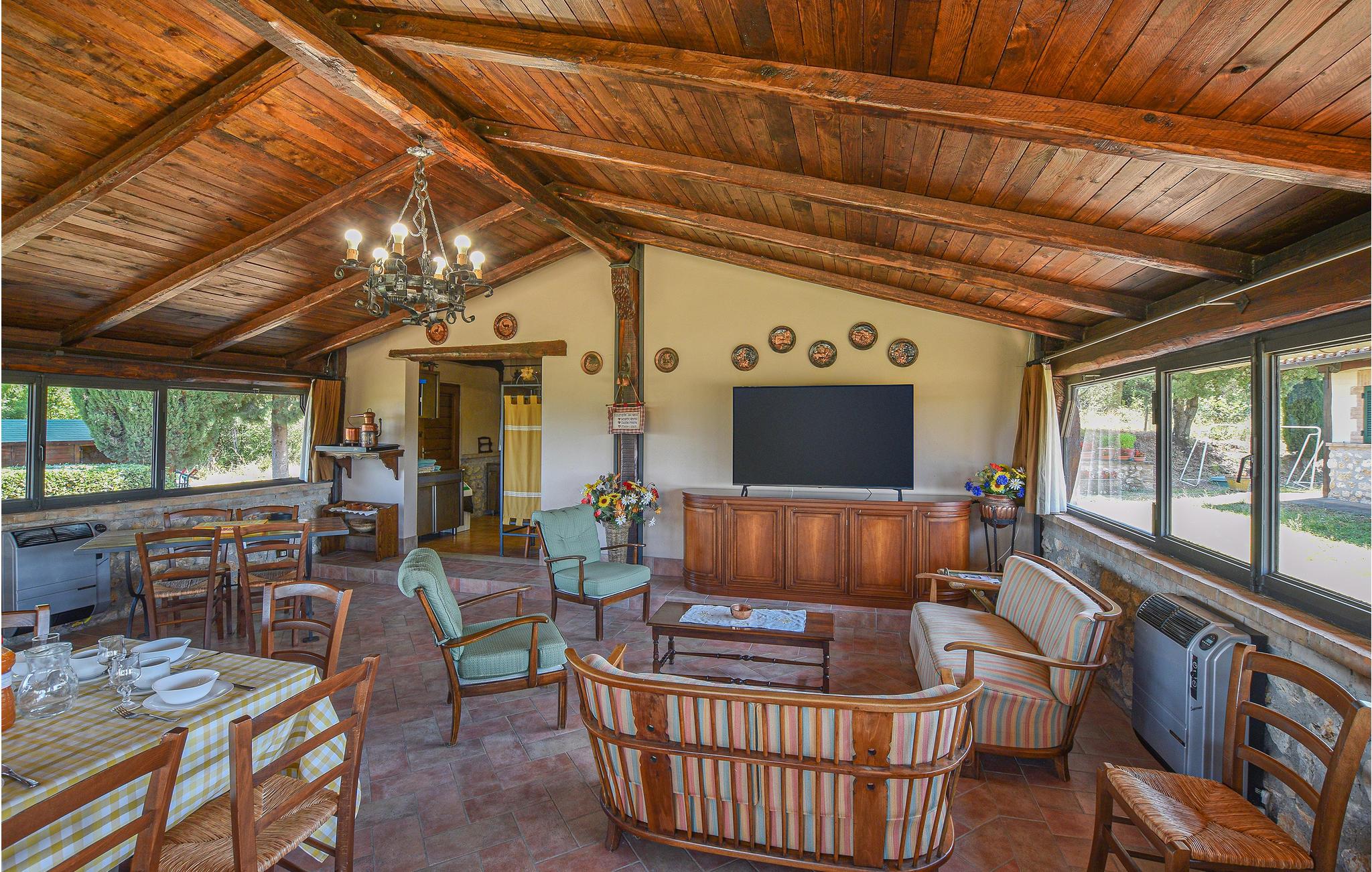 Dieses wunderschöne Ferienhaus mit Swimmingpool, aufgeteilt in vier Apartments mit separaten Eingängen, liegt wenige Kilometer von der antiken römischen Stadt Narni (8 km) entfernt, in einer Landschaft von besonderer Schönheit und in einem Kontext von Ruhe und Privatsphäre. Speisen können Sie im Freien und dabei die große Veranda neben dem Grillbereich und dem Backsteinofen nutzen, oder im großen Raum mit Wohnecke mit SMART-TV und Essbereich neben der Küche, die mit professionellen Geräten ausgestattet ist, ideal für die Zubereitung von kulinarischen Spezialitäten auch für große Gruppen. Der Pool und der Park rund um das Haus sind der Pluspunkt dieses faszinierenden Hauses. Dank seiner Dimensionen ist dieses Haus der ideale Ort, um z.B. einen Jahrestag in der Familie zu feiern oder einfach nur einen Urlaub in totaler Entspannung zu genießen. Zu Ihrer Verfügung ein Fußballplatz, Tischtennis, eine wunderbar gepflegte Rasenfläche rund um das Haus und unbegrenztes Wi-Fi im Gemeinschaftsraum. Auf Anfrage können auf den Doppelsofas in den Wohnzimmern zusätzlich 8 Betten zur Verfügung gestellt werdenIn unmittelbarer Nähe des Hauses gibt es Wege für ruhige Spaziergänge oder Mountainbike-Touren. Im Umkreis von 5 km finden Sie Tennisplätze und einen Reitstall. Nur 17 km entfernt erwartet Sie der berühmte Marmore-Wasserfall. Ausflugsziele: Rom (70 km) ist in 40 Minuten mit dem Zug zu erreichen. Des weiteren einen Besuch wert: Spoleto 40 km, Todi 50 km, der Lago di Bolsena 65 km, Assisi 70 km und Perugia 90 km. Pool- und Gartenpflege durch den Hausmeister, Tage und Uhrzeiten mit den Gästen bei Ankunft zu vereinbaren. Nicht asphaltierte Zufahrtsstraße (1 km).