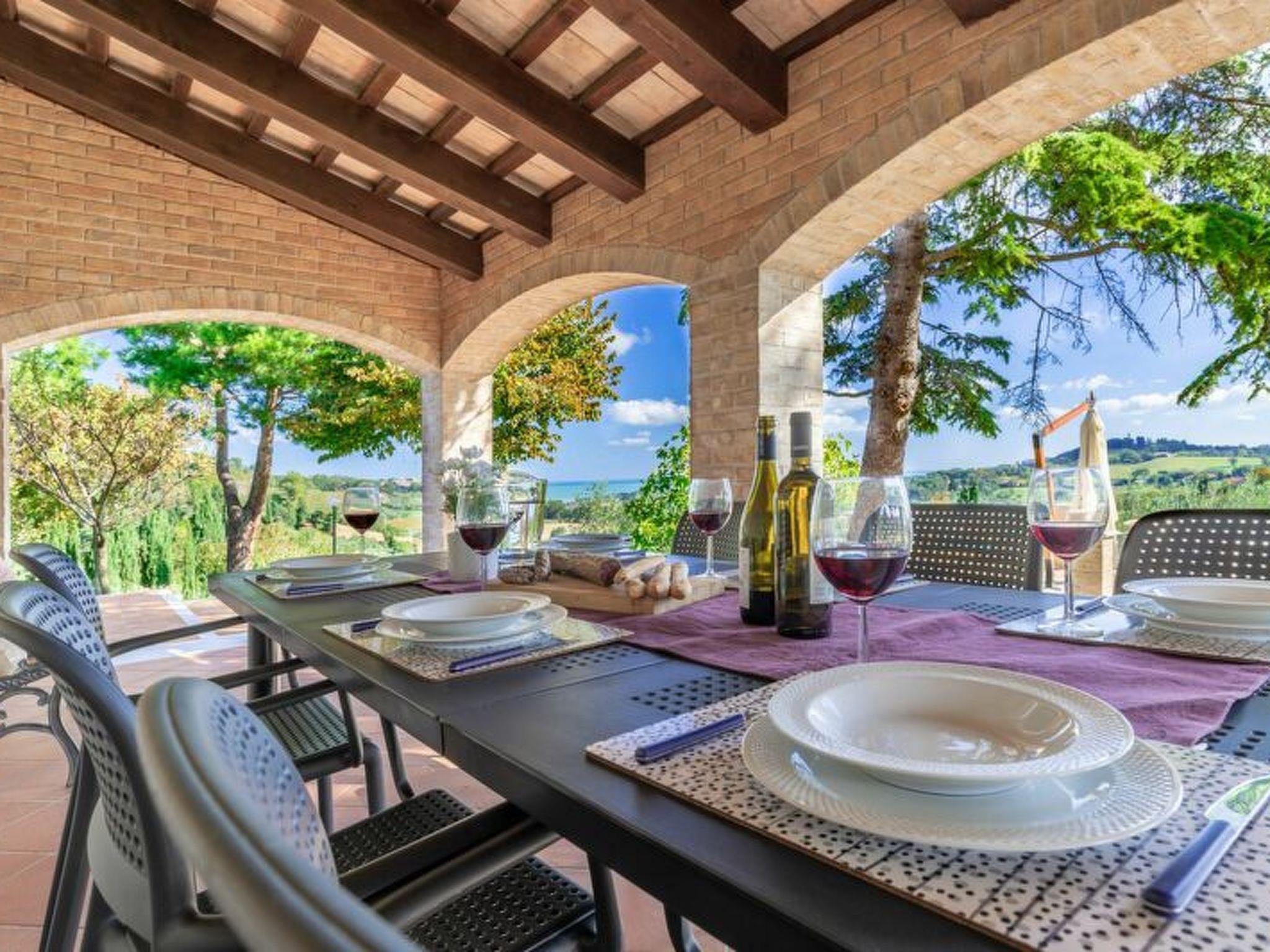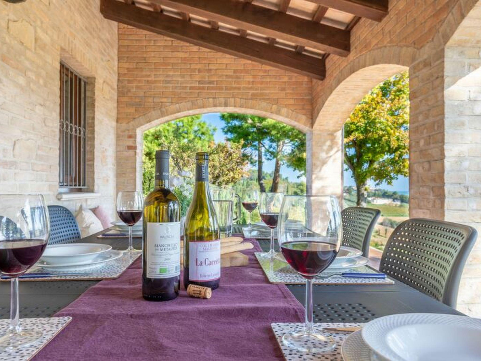 Villa Vagnini is a carefully restored country cottage equipped with every comfort with a spectacular sea view over the bay of Pesaro that offers 10 total beds divided into 4 bedrooms plus 2 extra beds and a private garden for exclusive use.The country-style and elegant furniture creates a rural and at the same time refined environment, transmitting a familiar and welcoming atmosphere to guests, ideal for those who want to spend a relaxing and regenerative holiday away from the chaos and nightlife of the seaside areas but still in a convenient position for reach the main points of interest in 10-15 minutes by carThe house is composed as followsGround floorlarge entranceliving room with antique fireplace, dining table for 12 people, double sofa bed and French window with access to the porchsecond living room adjacent to the kitchen with a breakfast corner with dining table for 10 peoplelarge eat-in kitchen with fridge and freezer, electric oven, dishwasher, antique stove, utensilsService bathroom with sink, toilet and closetFirst floor2 double bedrooms (160 x 190 cm) with chest of drawers, wardrobes, bedside tables and desk2 bedrooms with two single beds (90x190 cm) with chest of drawers, wardrobes and desks2 complete bathrooms with window with sink, toilet, shower and bidetWELCOME COURTESY KIT PROVIDED3 towels per person (1 shower towel, 1 face towel, 1 bidet towel)2 sheets per bed2 pillow casesBATH:1 shower mat for each bathroom1 liquid hand soap with disposable dispenser for each bathroom1 liquid shampoo shower with disposable dispenser for each bathroom2 rolls of wrapped toilet paper for each bathroomKITCHEN1 disposable dish sponge1 kitchen sponge cloth1 liquid hand dish detergent format 500 ml3 tabs dishwasher1 roll of paper towels1 disposable hand sanitizer gel of 500 ml2 kitchen tea towels2 kitchen tableclothsCLEANING AND SANITIZATIONProfessional cleaning and sanitizing are carried out at the beginning and end of the stayINTERNETWi-Fi available free of charge throughout the hotelAIR CONDITIONING AND HEATINGThe villa is not equipped with air conditioning but you can enjoy the coolness given by the sea breeze typical of our areaIn summer, fans are also provided in case of needCHILDRENChildren are welcome and we can provide cots and high chairs on requestACCESSIBILITY'there are about 20 steps to climb to access the first floor of the villaVIEWThe view is over the bay of Pesaro and the surrounding hillsCITY TAX2 € per person per night. Free for children under the age of 14.Free after 8 nights.NOISETraffic is zero as we are not on a busy road.The doors and windows are of good quality.You will surely sleep well!PARKING AREAprivate uncovered parkingPRIVACY AND SECURITYThere is a fire extinguisher and a first aid kit.2 BIG DINING ROOMS2 DOUBLE BEDROOMS2 TWINN BEDROOMS1 FULLY EQUIPPED KITCHEN2 FULL BATHROOMS1 SERVICE BATHROOM