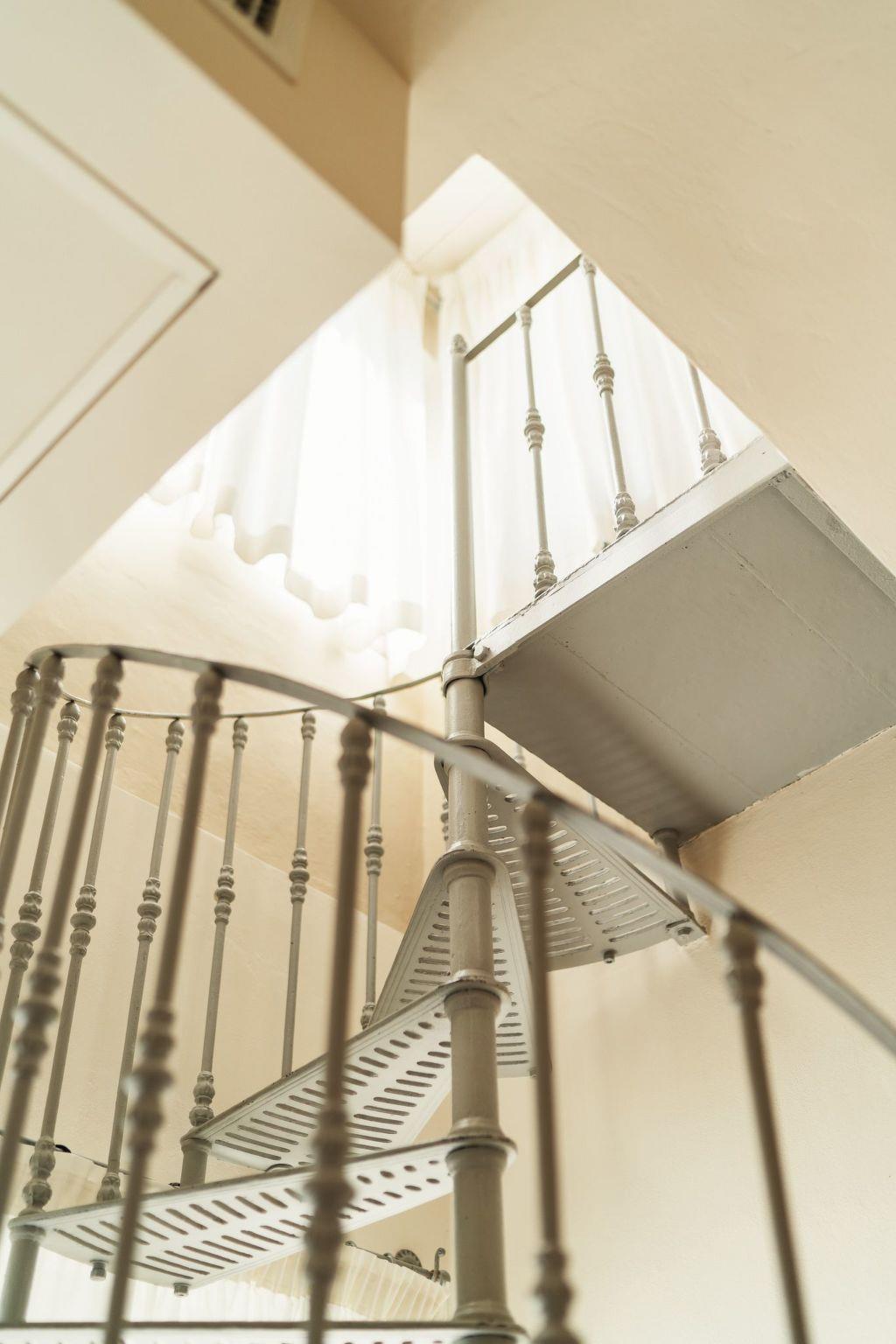 The accommodation, measuring approximately 37 m², is spread over four floors connected by a characteristic cast-iron spiral staircase that leads up to the roof of the tower: a unique detail that makes the experience truly special.