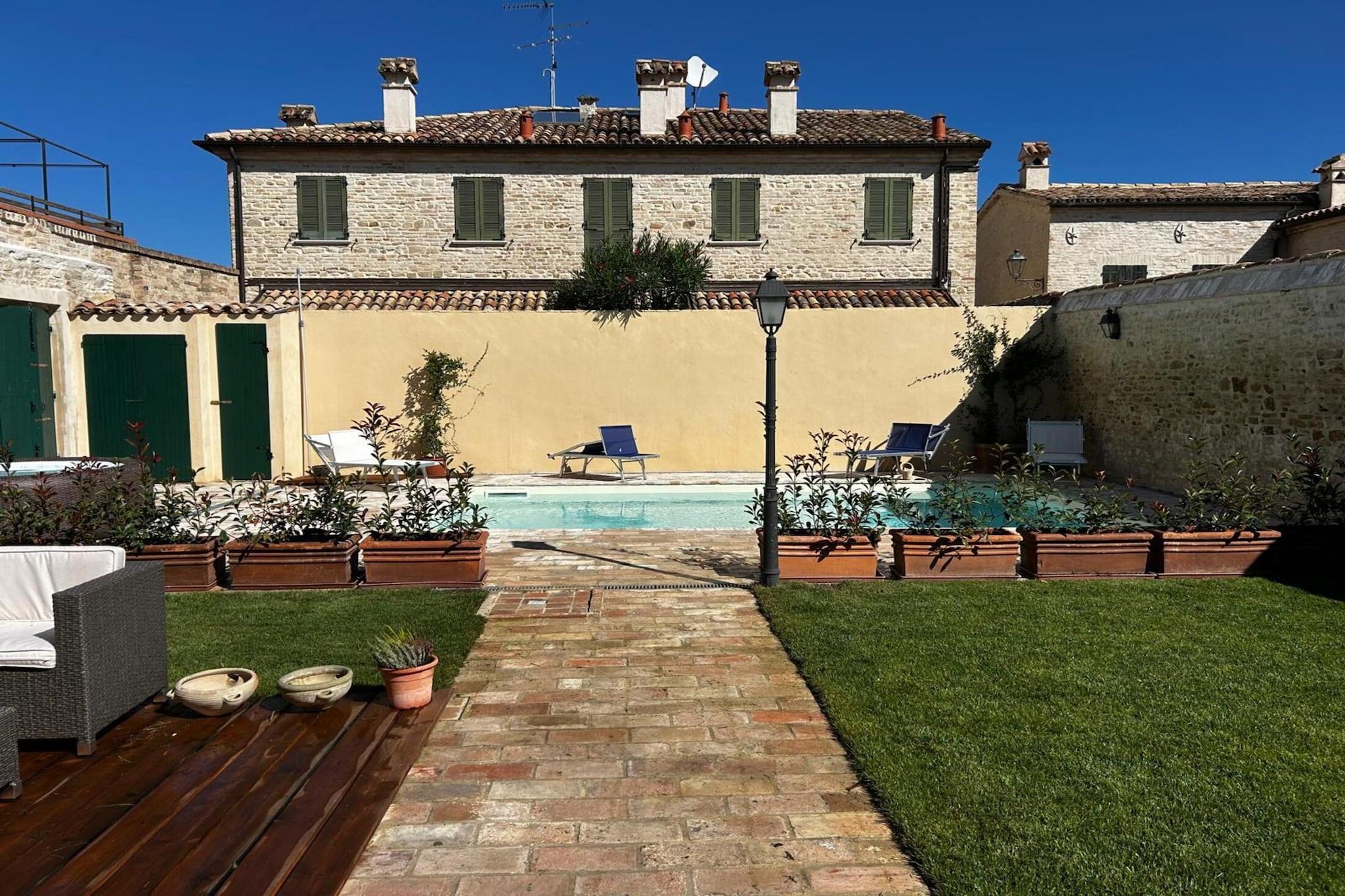 This detached house, located in the heart of the small medieval village of Novilara, welcomes guests in a beautifully renovated historic building. The house is part of a tourist accommodation located in the center of the village, with convenient private parking just a few meters away. At the heart of the property is an internal courtyard with a swimming pool and a relaxation area, where guests can cool off with a dip or relax on the poolside loungers. In addition, the property offers the possibility to use a beach umbrella and sun loungers at a beach establishment located just a few kilometers away. Guests can book this service directly at the property at a cost of EURO15 per day for one umbrella and two sun loungers. The location of these vacation homes is perfect for those seeking the tranquility of the countryside, yet still within walking distance of the village center, where excellent restaurants abound. The sea and the cities of Pesaro, Fano, as well as Urbino, Senigallia, and Riccione, are easily accessible by car. Guests can also explore the beautiful surrounding hills, take walks through small villages, and discover local producers of wine, olive oil, truffles, and much more.