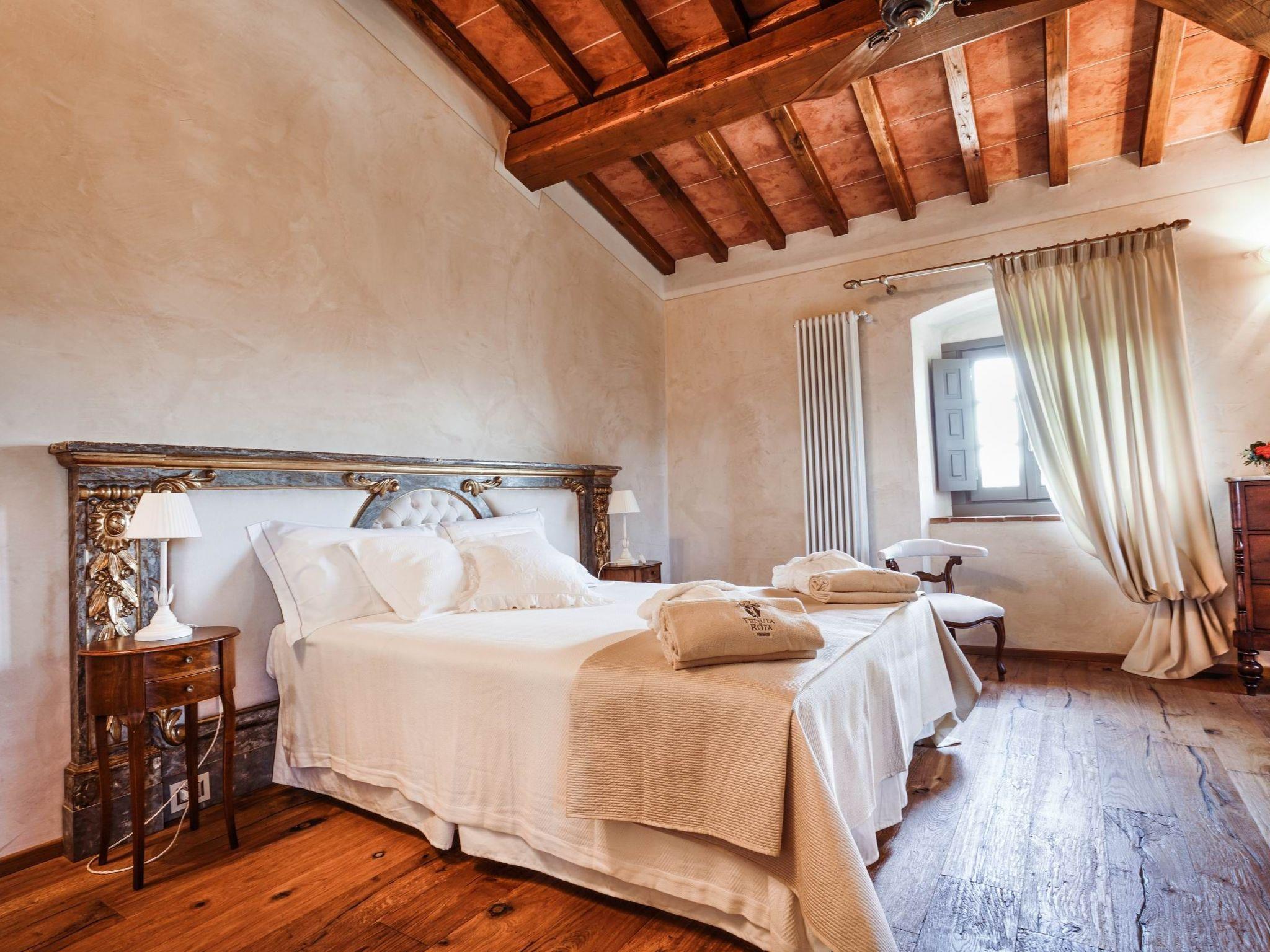 The rooms, all with views of the Tuscan countryside, are equipped with Wi-Fi, safe, minibar, satellite TV and air conditioning.