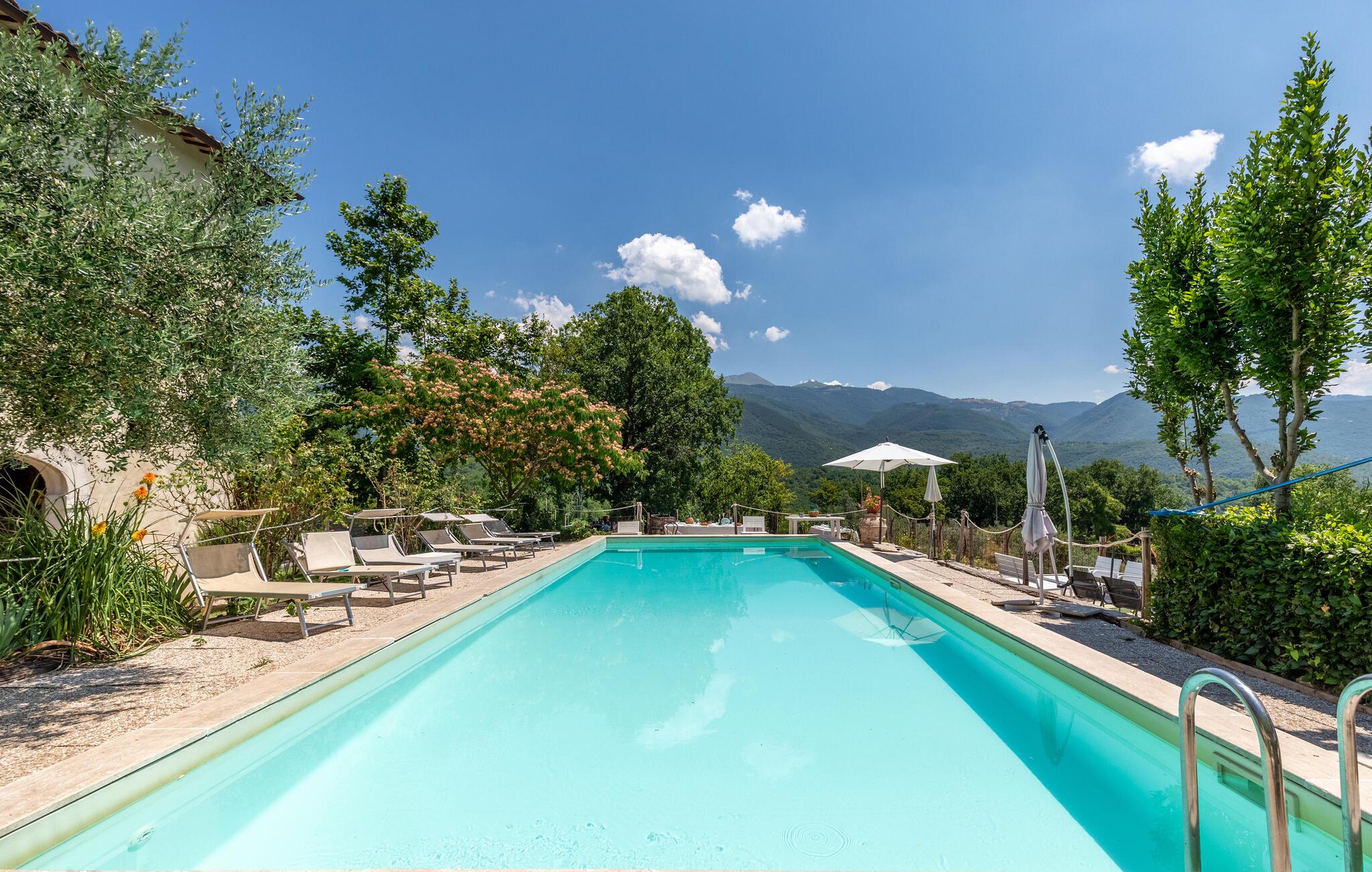 Schöne Villa in Cantalice (Rieti 5 km) in der Region Latium mit toller Aussicht über die Landschaft. Das Haus erstreckt sich über zwei Etagen. Einfache und zweckmäßige Einrichtung. Großer ausgestatteter Außenbereich mit alten Pinienbäumen und Ulmen, mit Grill, ideal zum Entspannen und Essen im Freien, Tischtennis. Schönes Schwimmbad mit Blick aufs Tal. Am Haus entlang verläuft der Pilger-Wanderweg der heiligen Franz von Assisi und Benedikt von Norcia. 5 km Rieti mit Geschäften aller Art. 20 km vom Appenninengebirg Monte Terminillo. 45 km Terni, 60 km L’Aquila, 85 km Todi, 95 km Rom, 100 km Viterbo. In 26 km Entfernung befindet sich der malerische Badesee von Piediluco mit der Möglichkeit, Boote zu mieten und Rafting bis zum Marmore - Wasserfall von Marmore, dem höchsten in Europa.