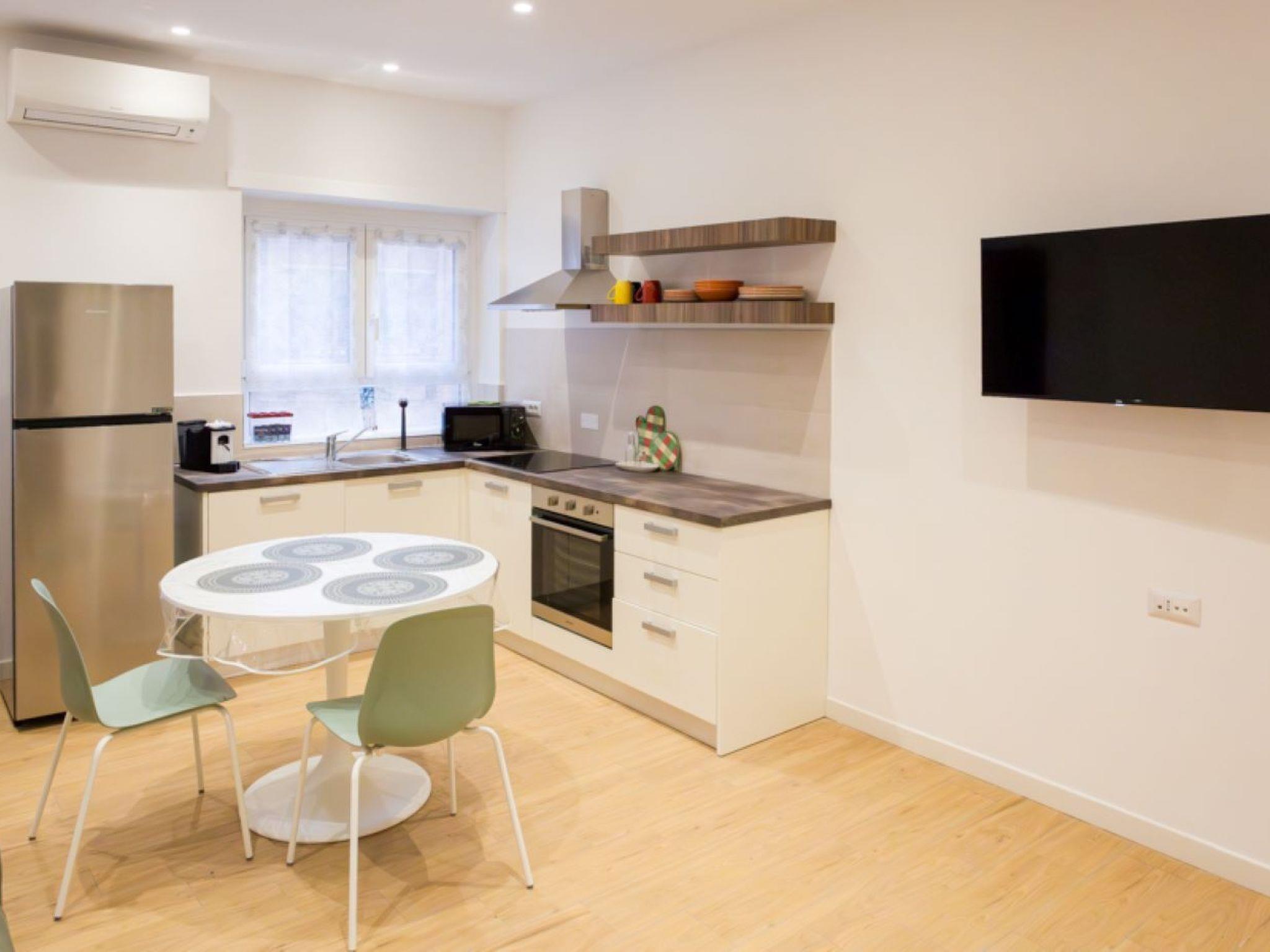 The interior is equipped with every comfort to ensure you have a pleasant and relaxing stay. The flat features a fluid layout of spaces, with air conditioning available in every room to ensure maximum comfort during the hottest or coldest months. The living area includes a well-equipped kitchen with induction cooker, coffee machine with pods, dishwasher and electric kettle, perfect for preparing meals as if you were at home. In addition, a washing machine and tumble dryer are available for your exclusive use, ideal for long stays.