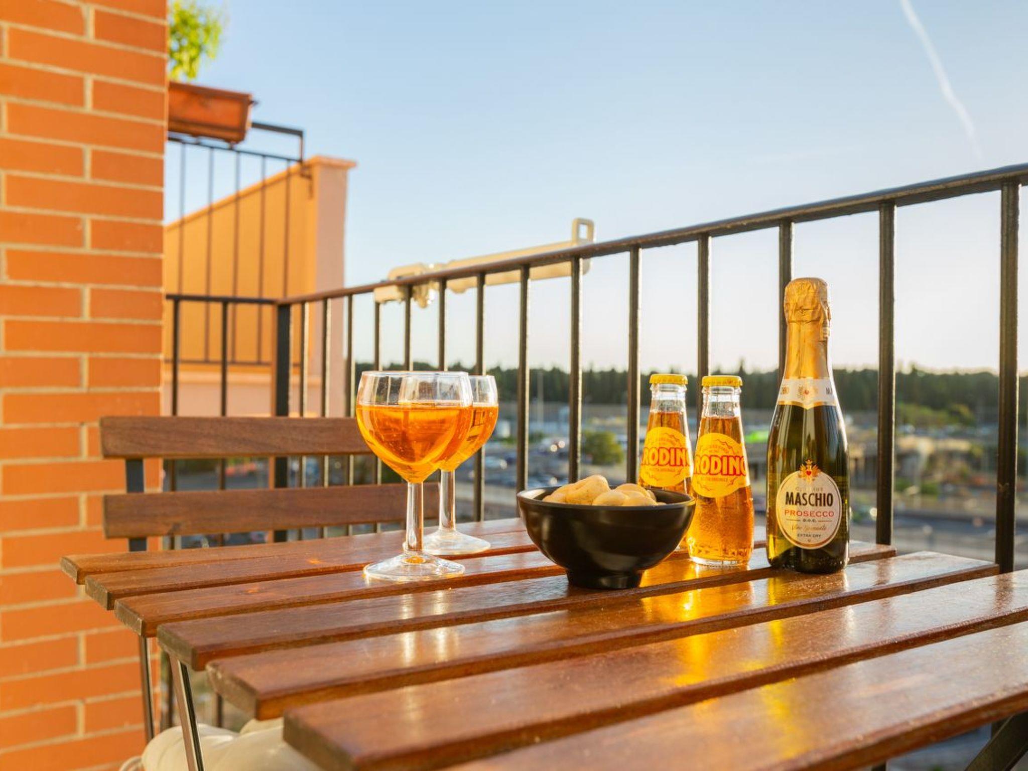 The balcony, accessible from the master bedroom, offers an outdoor space from which to enjoy the view of the city and a table and chairs for relaxing outdoors. Outside the flat, Rome City View gives guests the convenience of exclusive access to the entire flat, ensuring privacy and comfort for the duration of their stay.